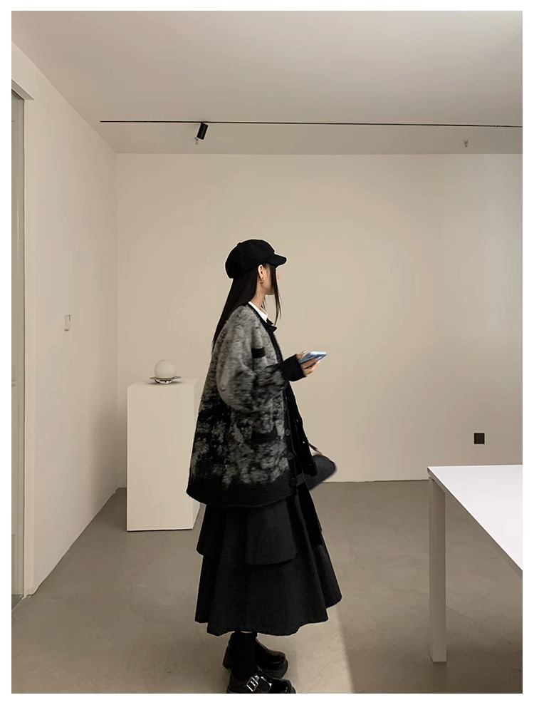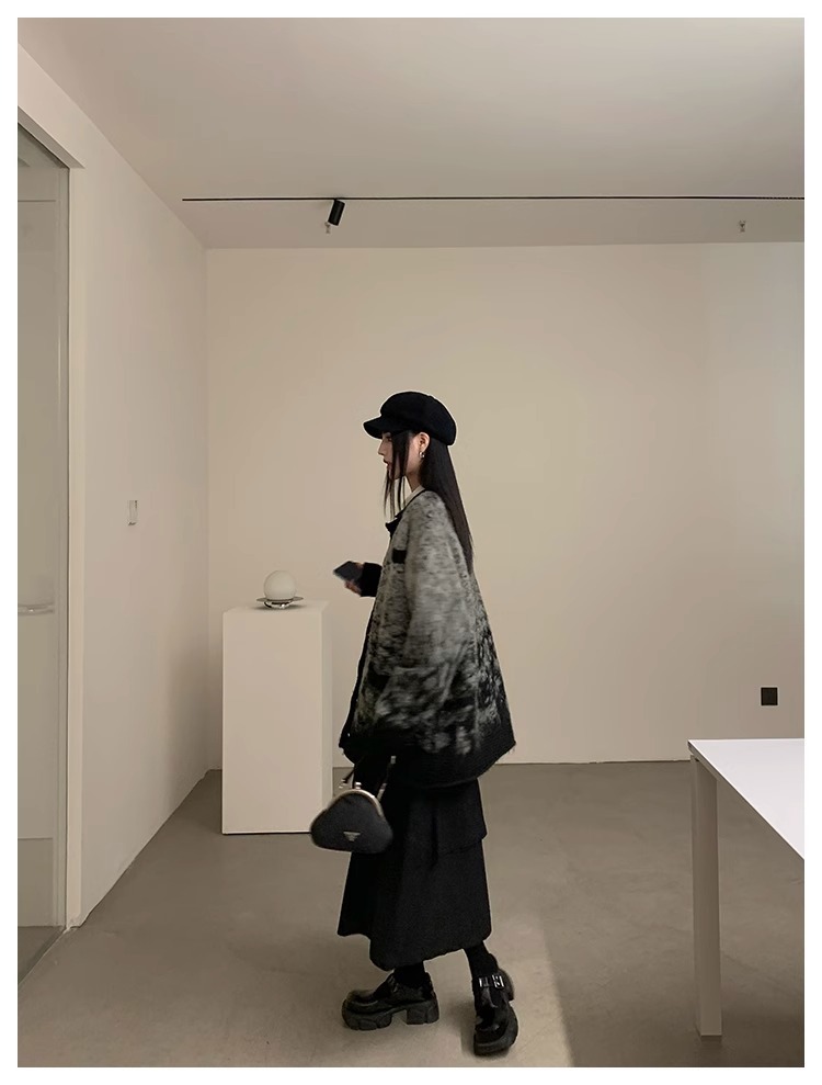 가을과 겨울 2024 새로운 느슨한 슬리밍 잉크 그라디언트 게으른 바람 부드러운 왁스 카디건 스웨터 코트
