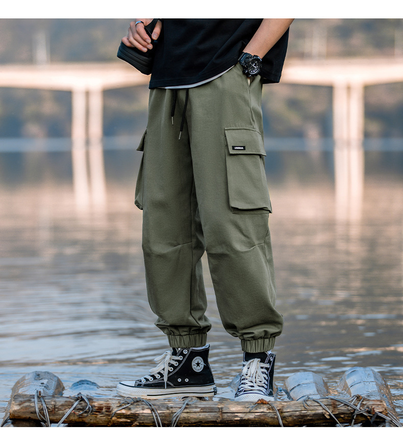 일본식 레트로, 남성 트렌디 브랜드 여름 루즈 스트레이트 캐주얼 대형 포켓 9 점 스포츠 타이 인 하렌 팬츠