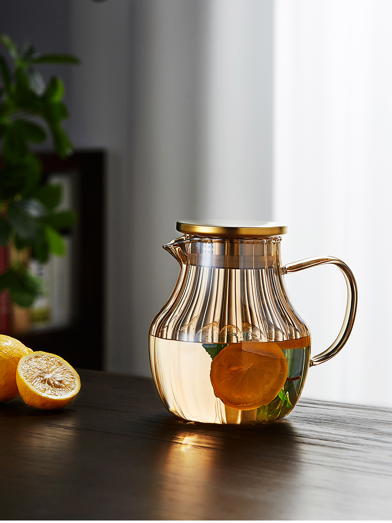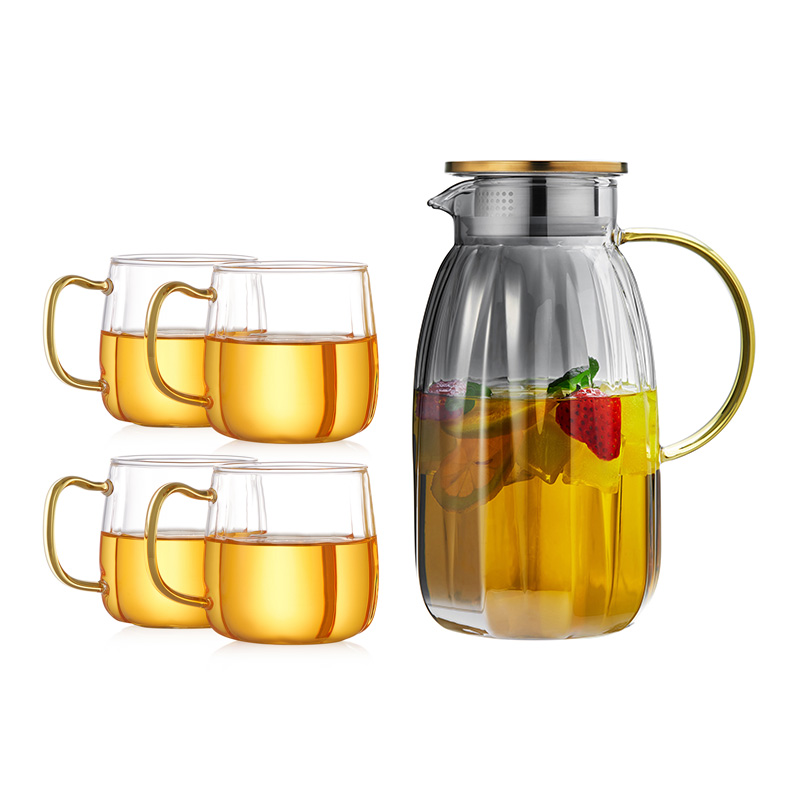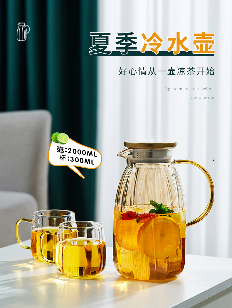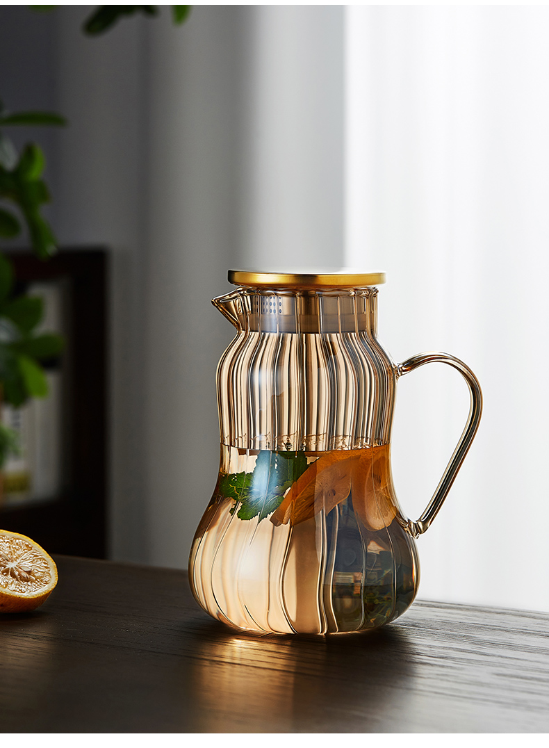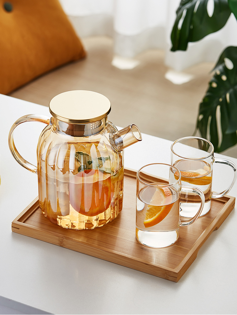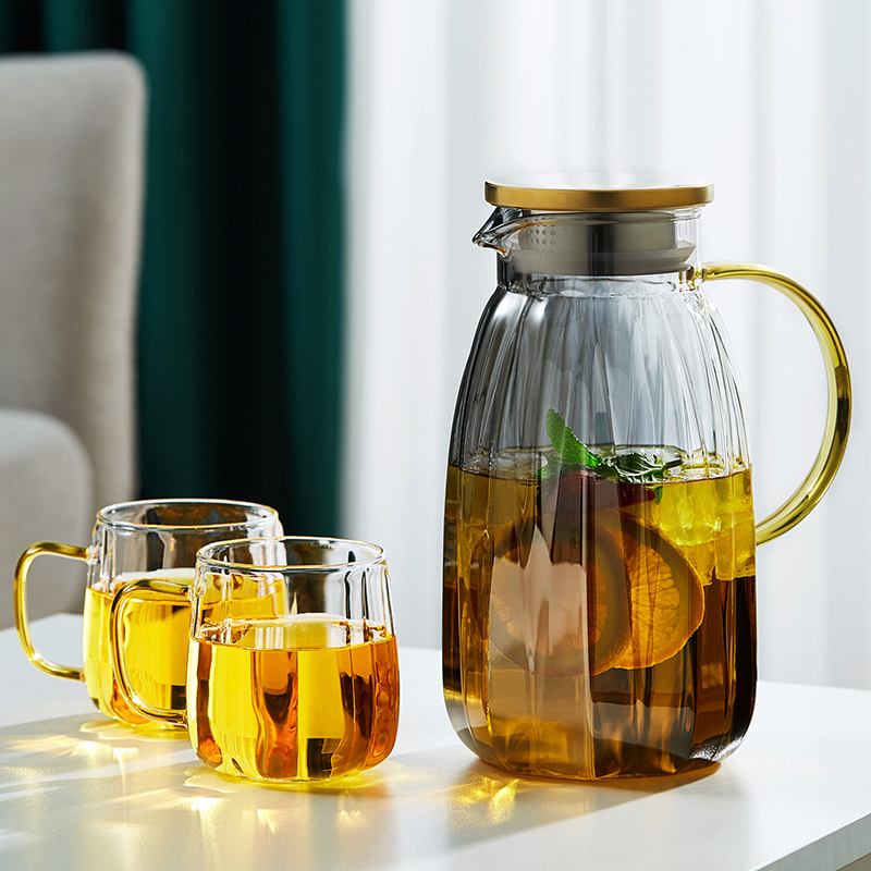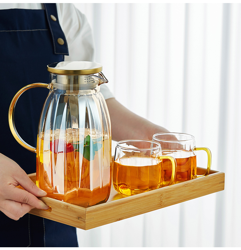 냉수병 유리 고온 방지 가정용 대용량 냉수병 냉수 컵 세트 꽃차 주전자 주스