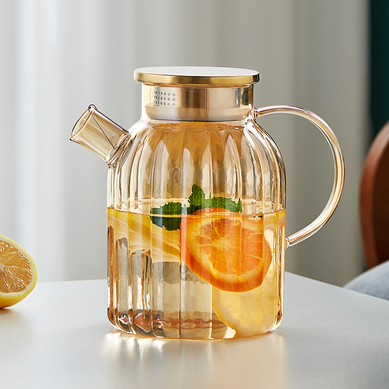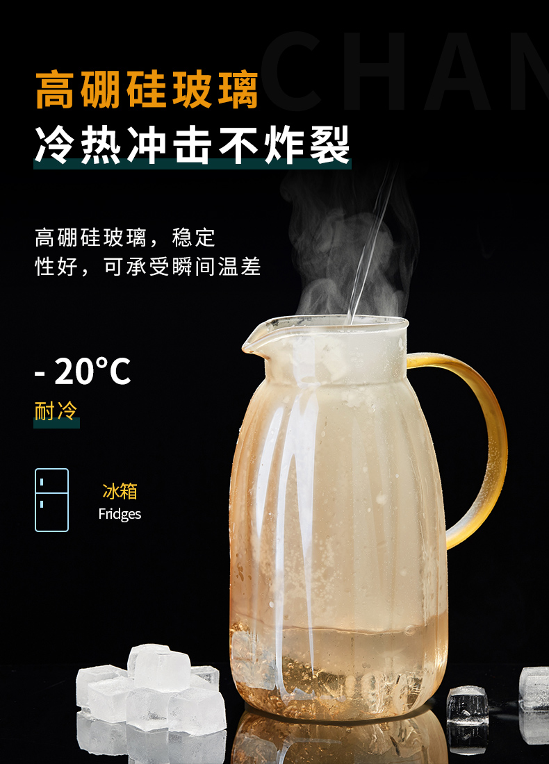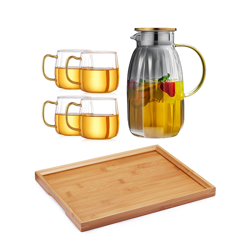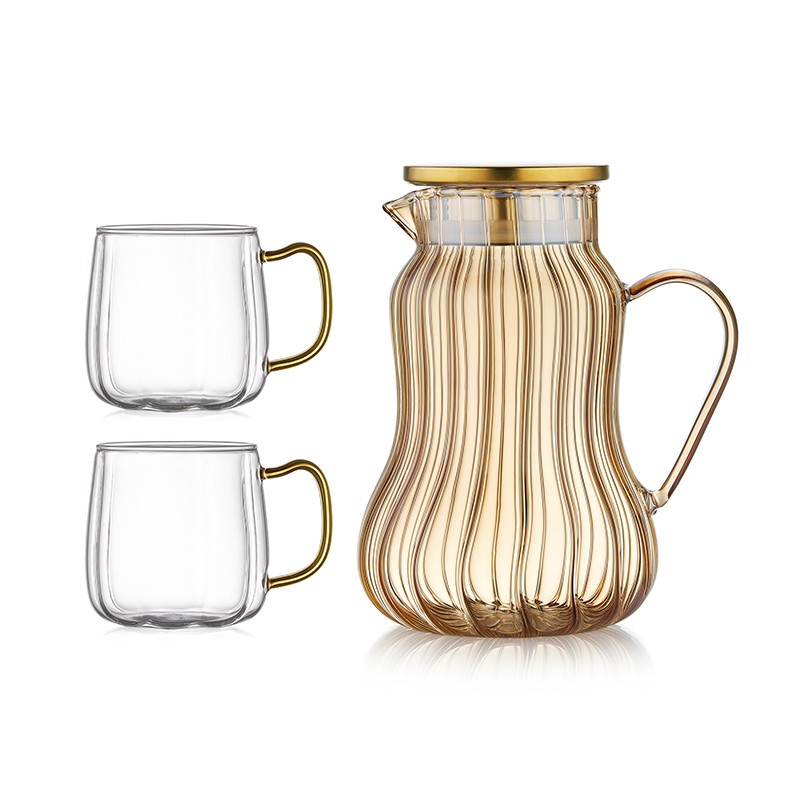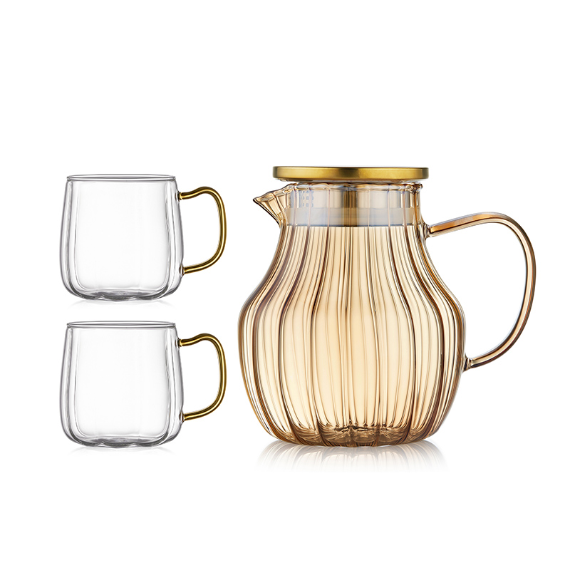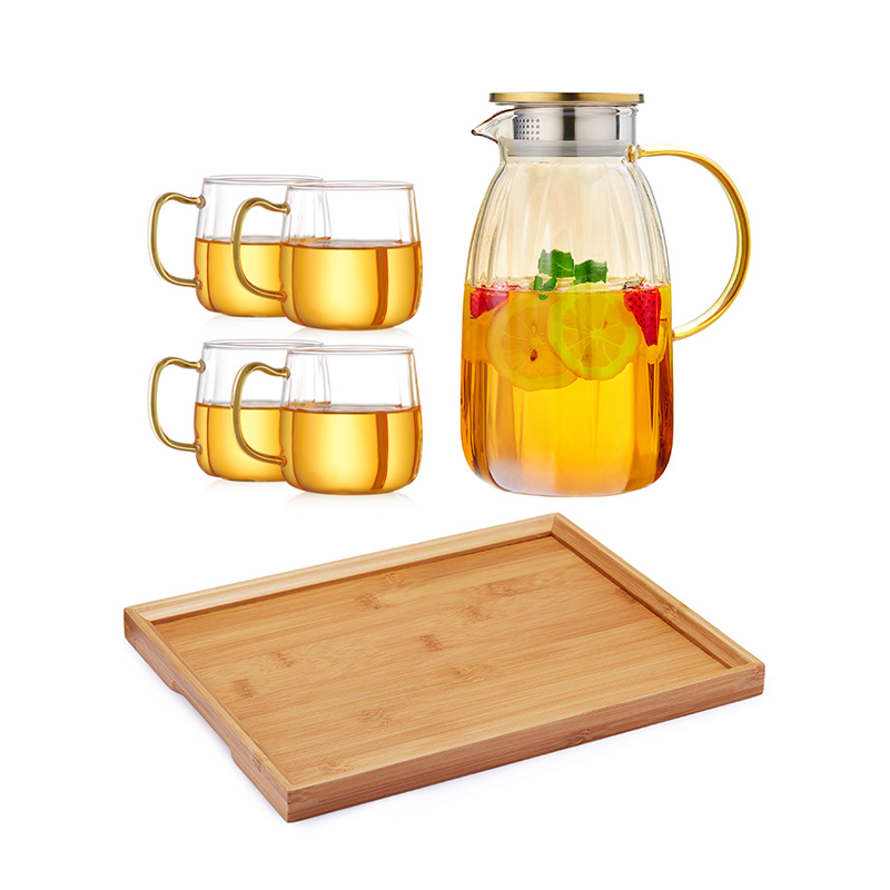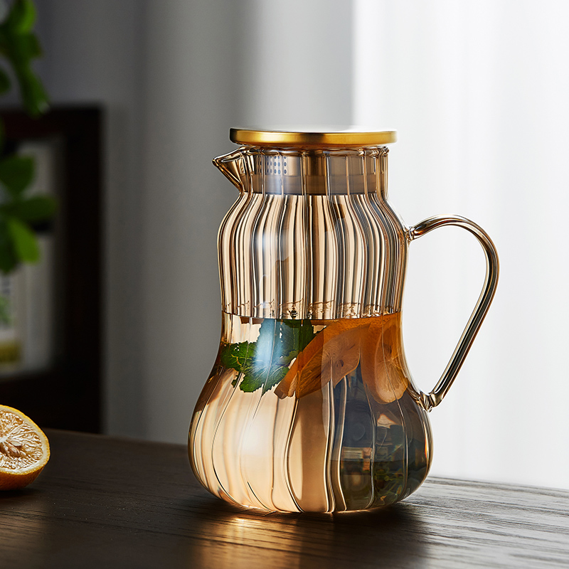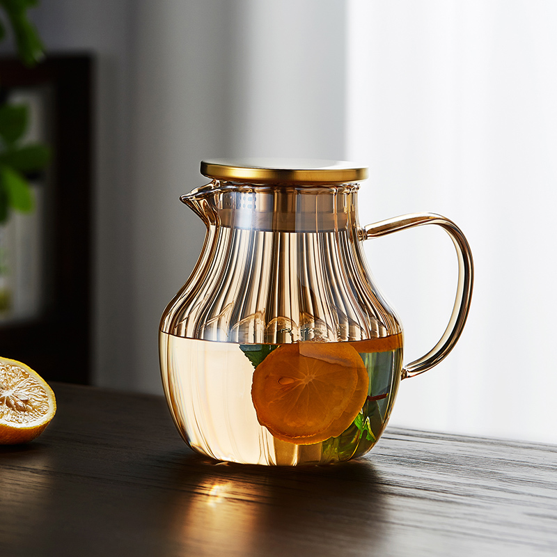 냉수병 유리 고온 방지 가정용 대용량 냉수병 냉수 컵 세트 꽃차 주전자 주스
