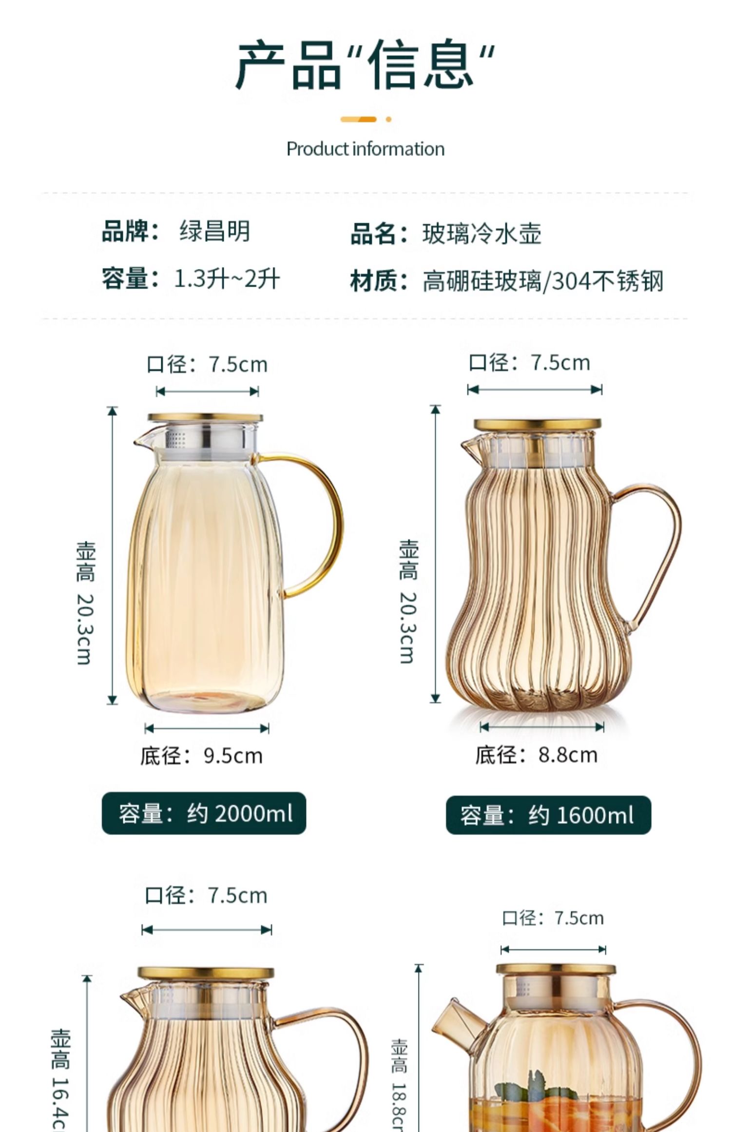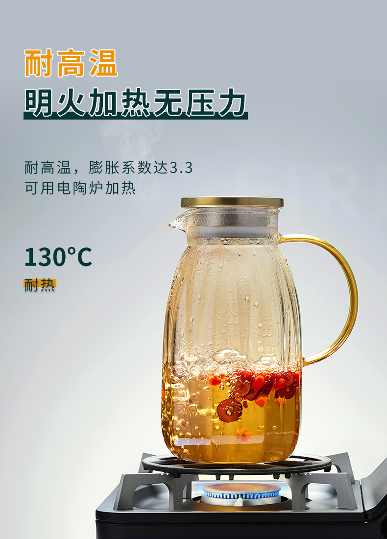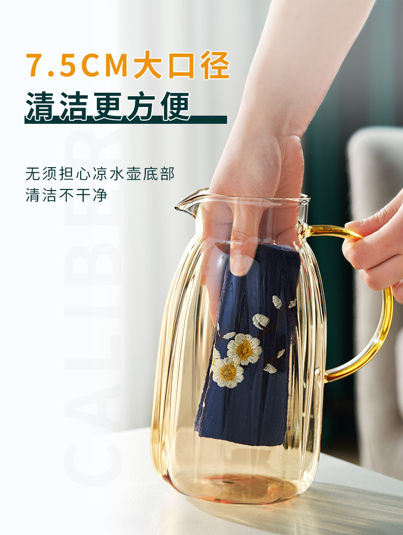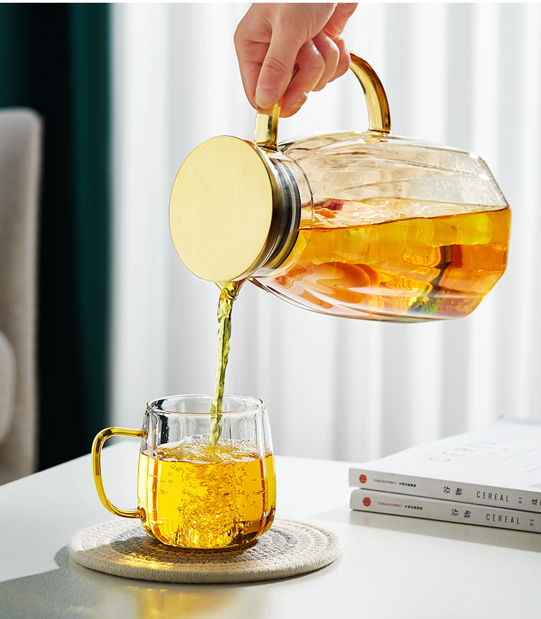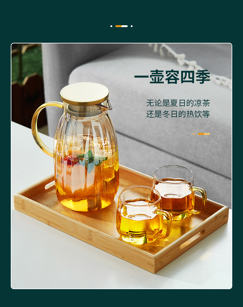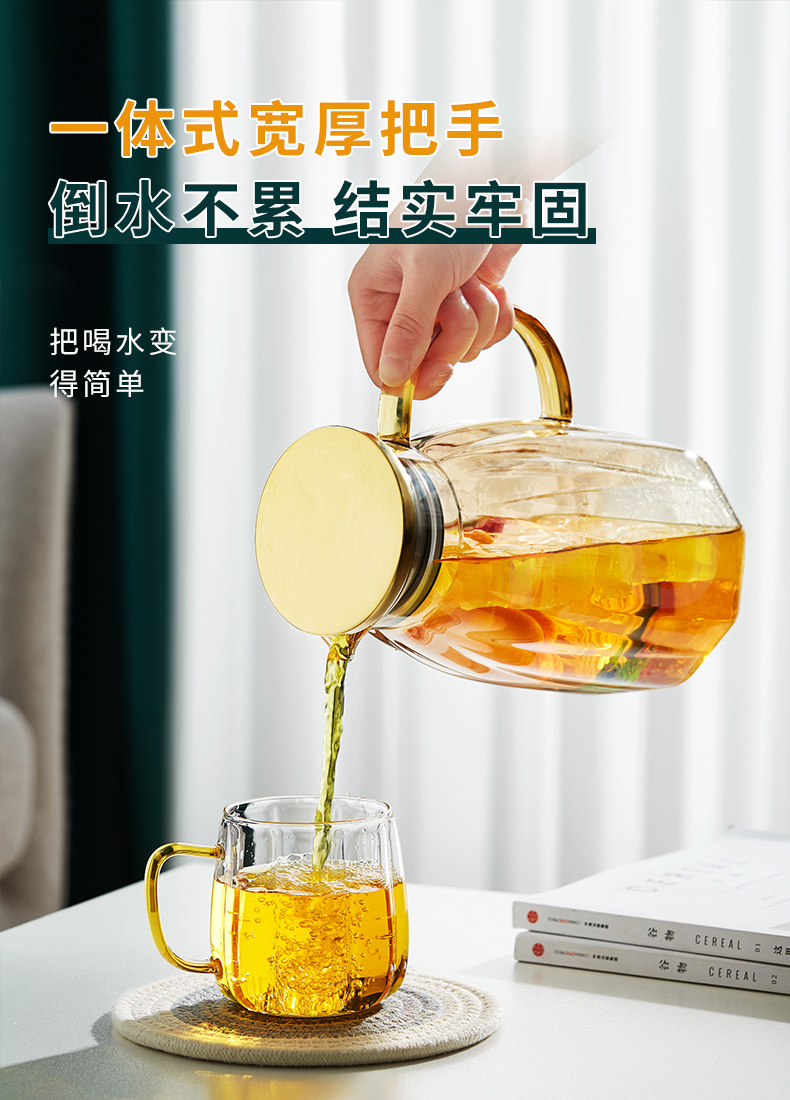 냉수병 유리 고온 방지 가정용 대용량 냉수병 냉수 컵 세트 꽃차 주전자 주스스토어 가기