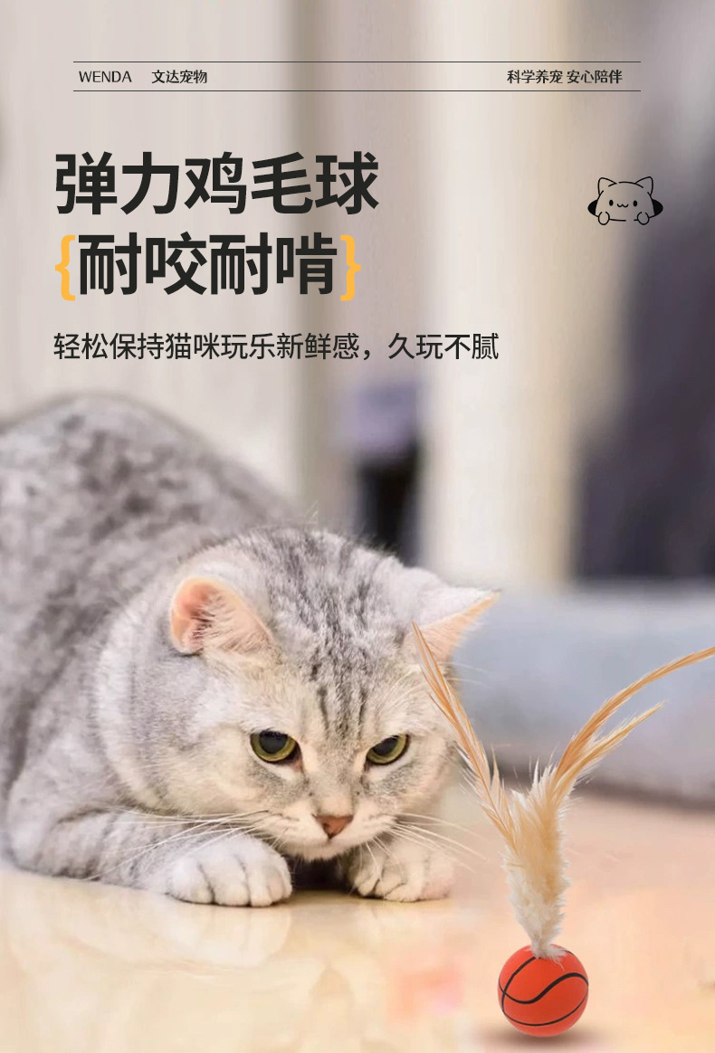 국경 간 고양이 탄성 공 새로운 셀프 하이 답답한 고양이 탄력있는 닭 깃털 깃털 깃털 애완 동물 장난감 용품 도매스토어 가기