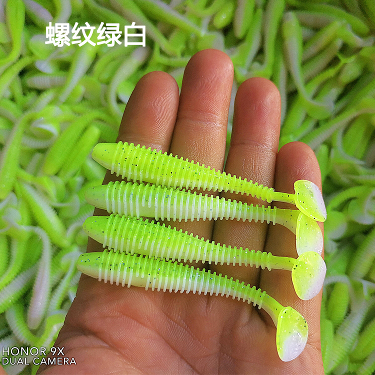 路亚宝贝t尾软饵螺纹t尾1斤加盐加虾味绿色柔软夜光鳜鱼翘嘴满和스토어 가기