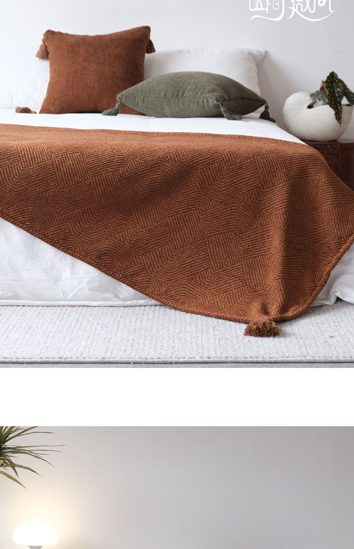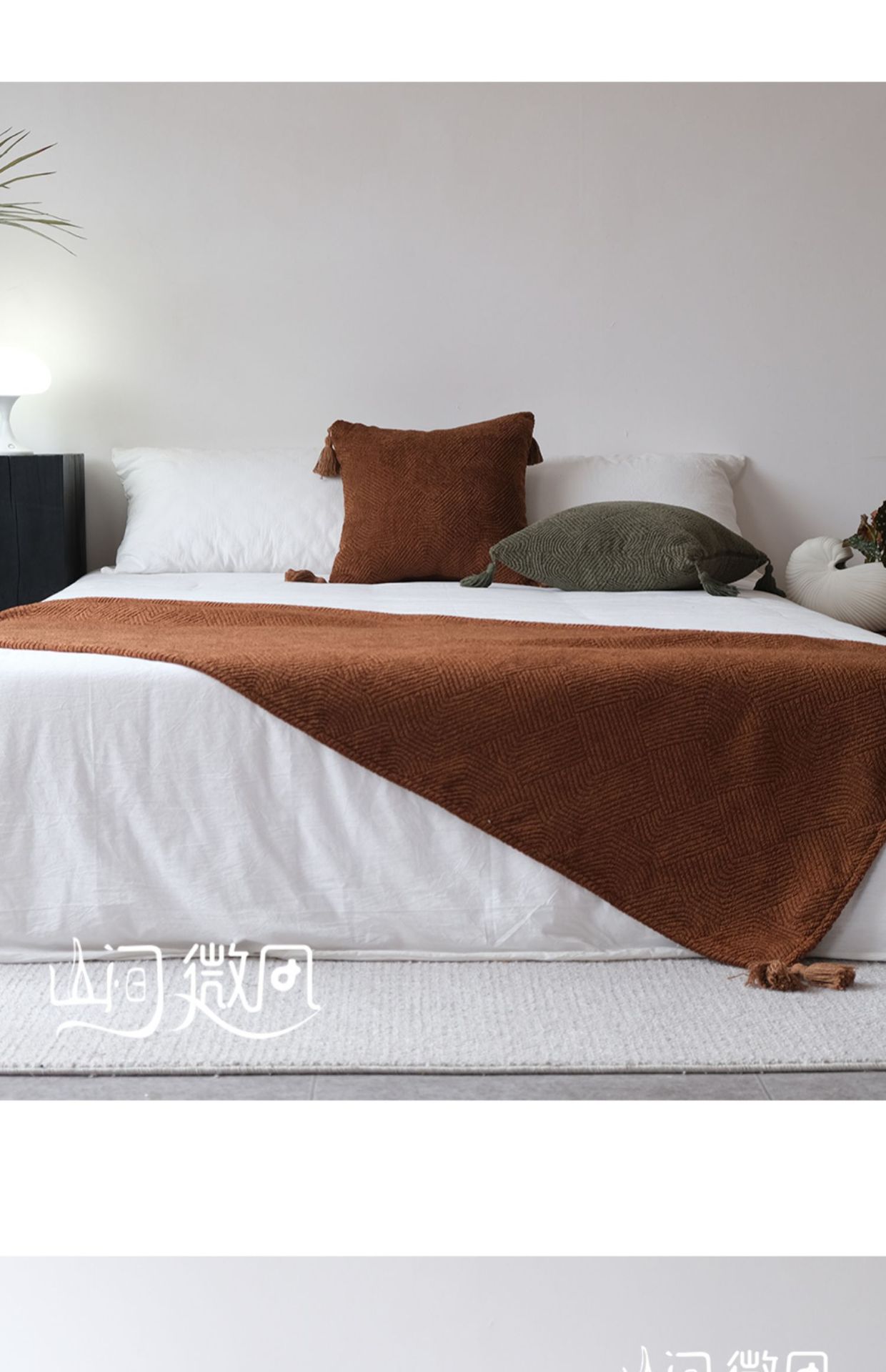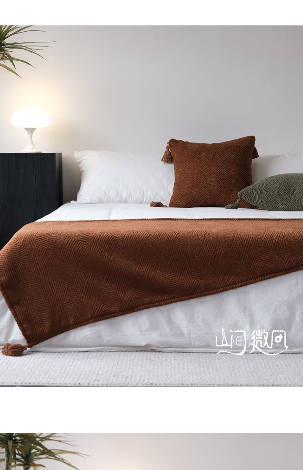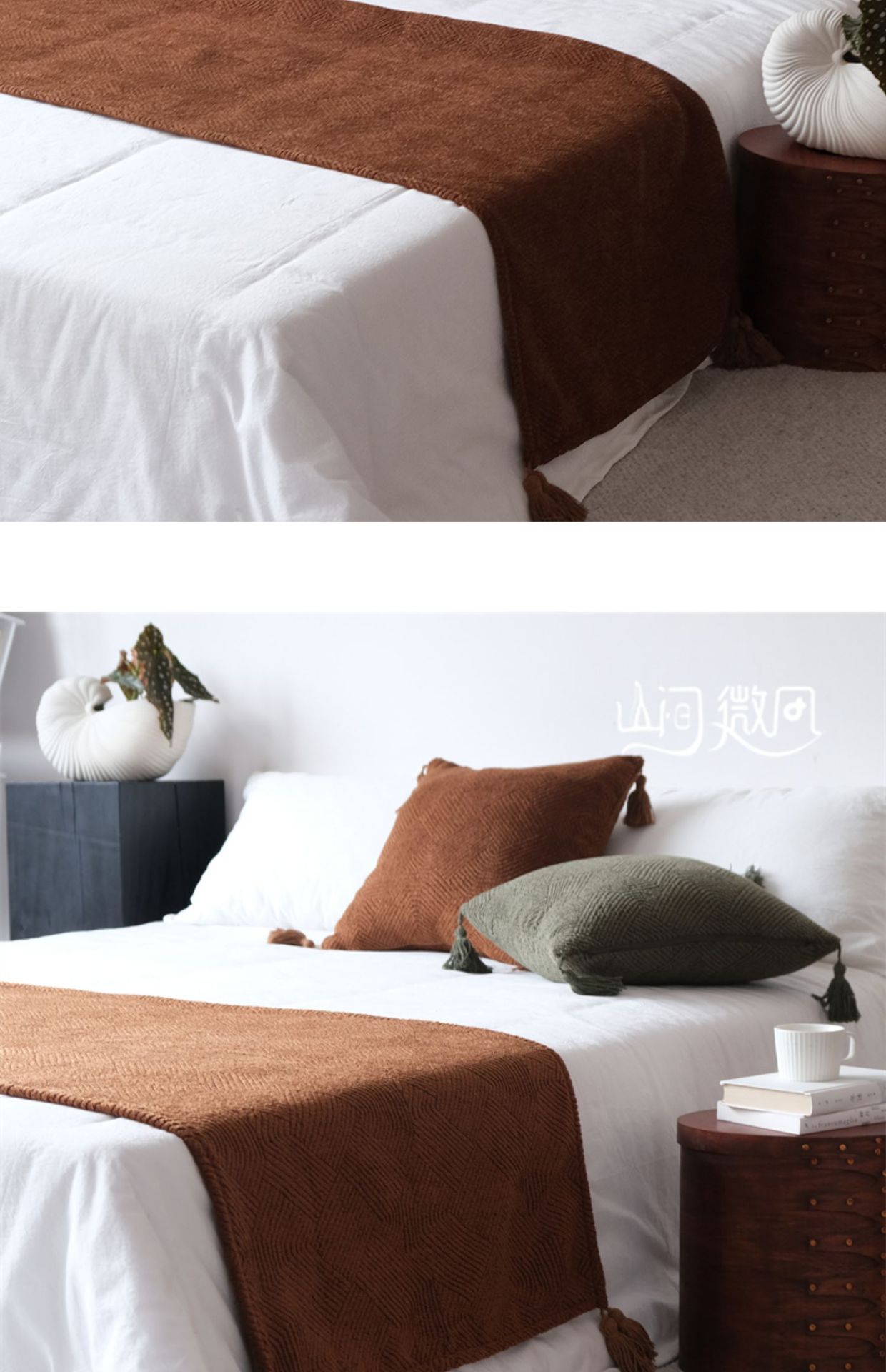 Maillard 컬러 침대 끝 담요 골동품 침대 끝 수건 담요 침대 수건 커버 담요 홈스테이 호텔 침대 깃발 다크 브라운 그린스토어 가기