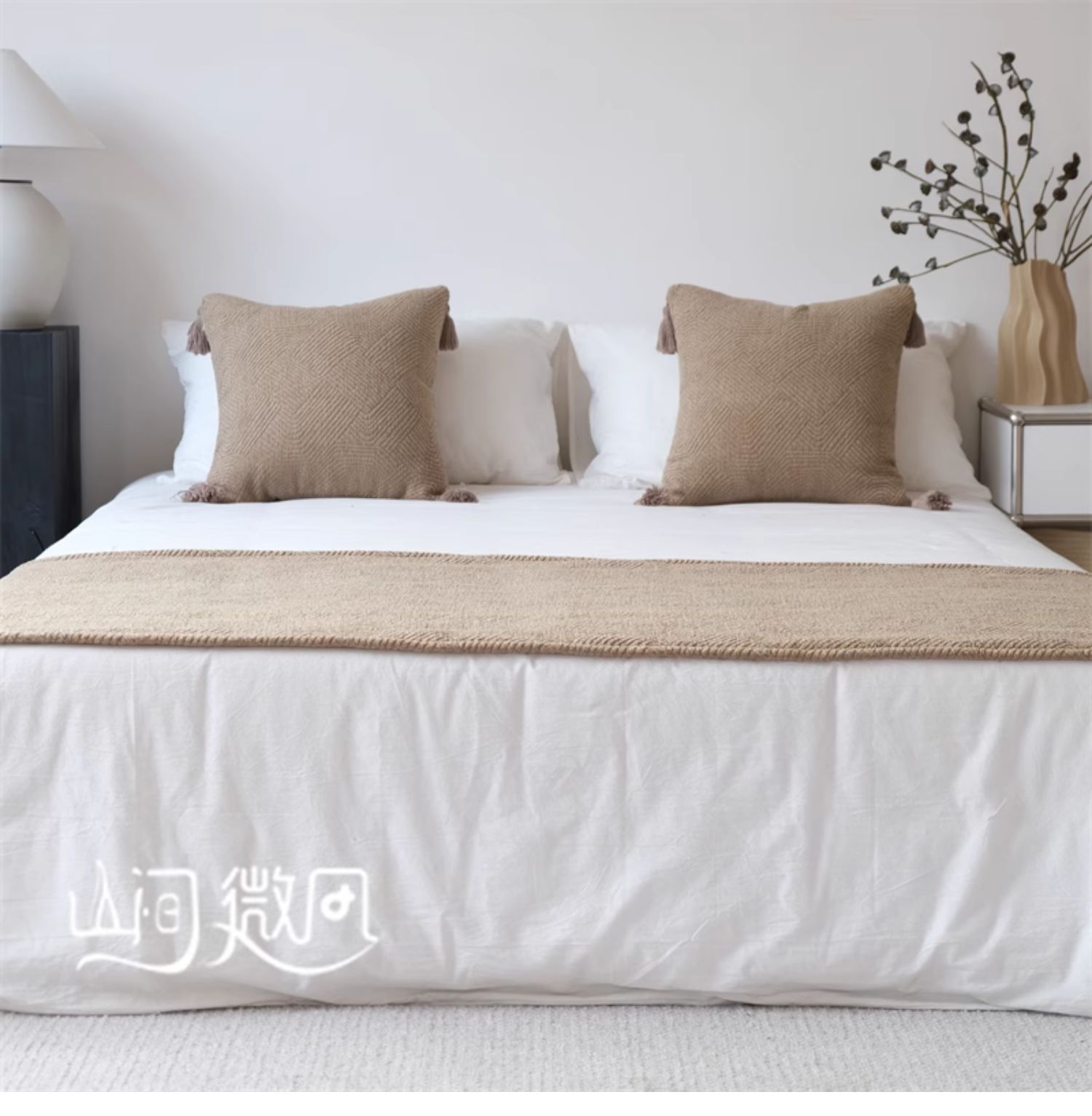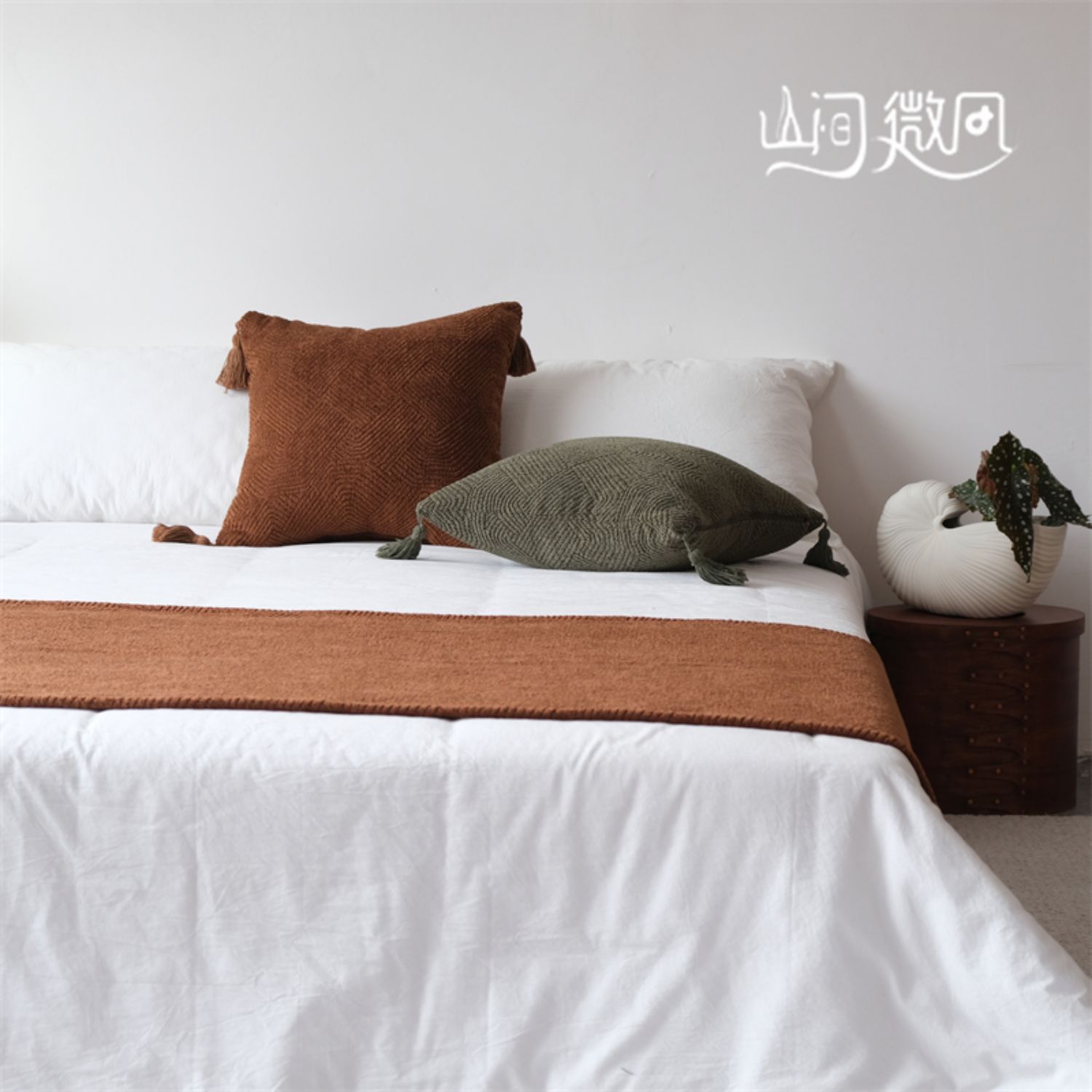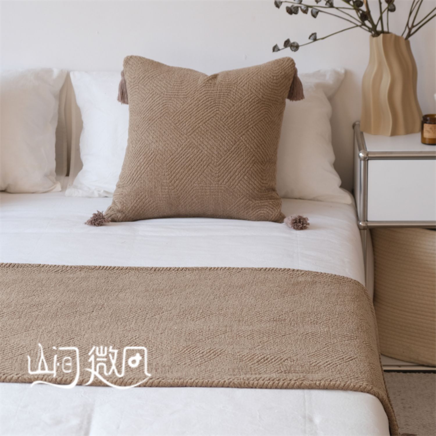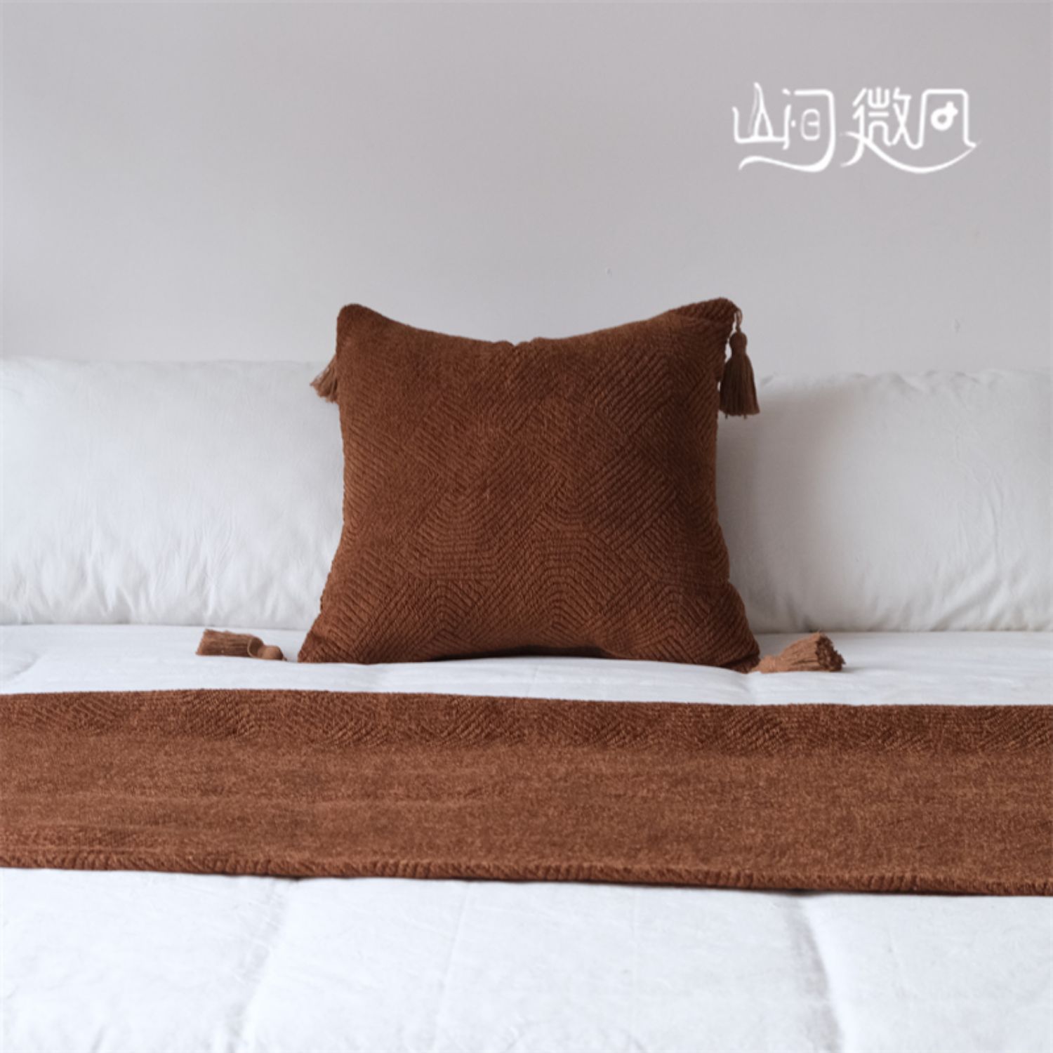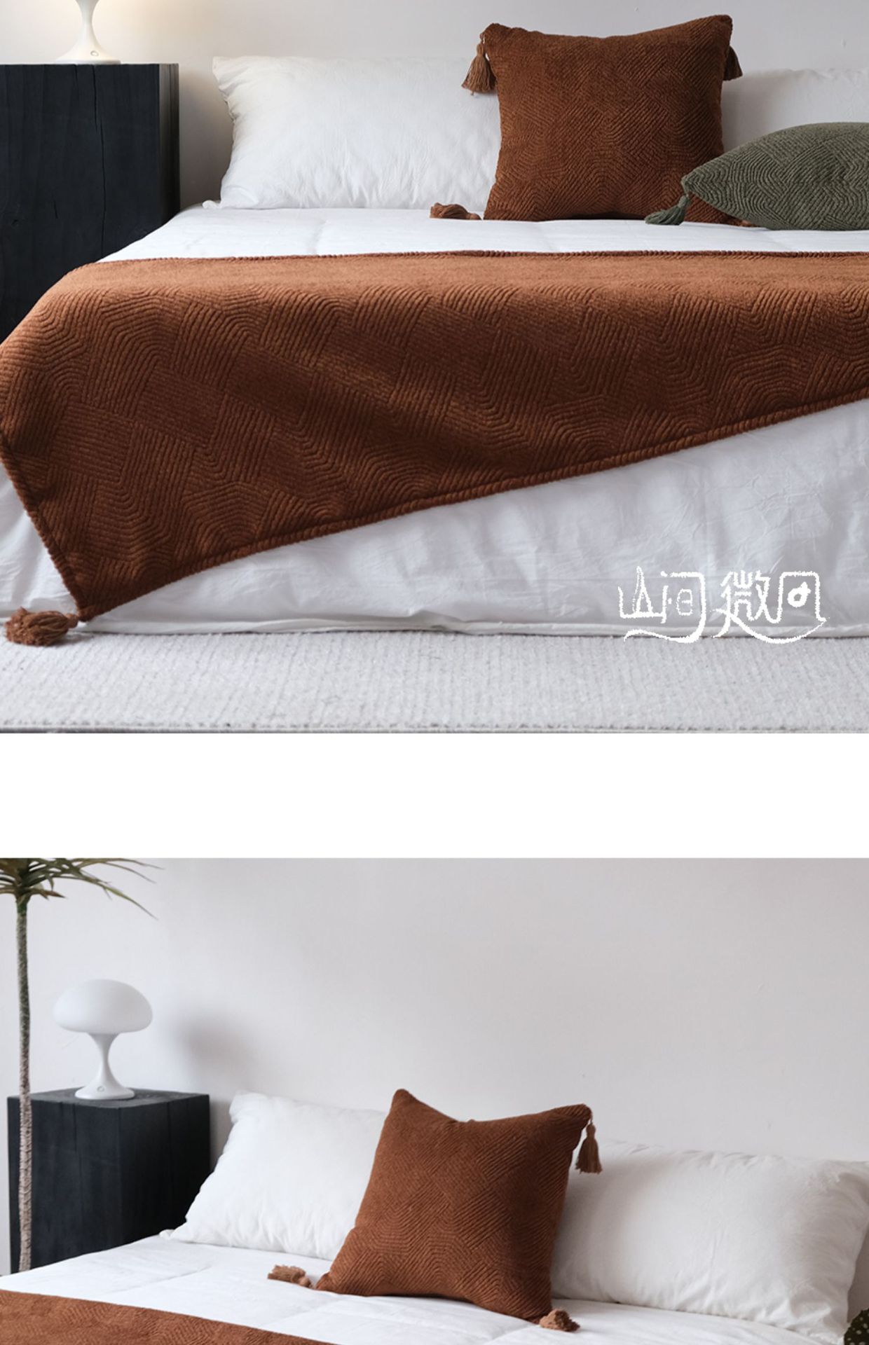 Maillard 컬러 침대 끝 담요 골동품 침대 끝 수건 담요 침대 수건 커버 담요 홈스테이 호텔 침대 깃발 다크 브라운 그린스토어 가기