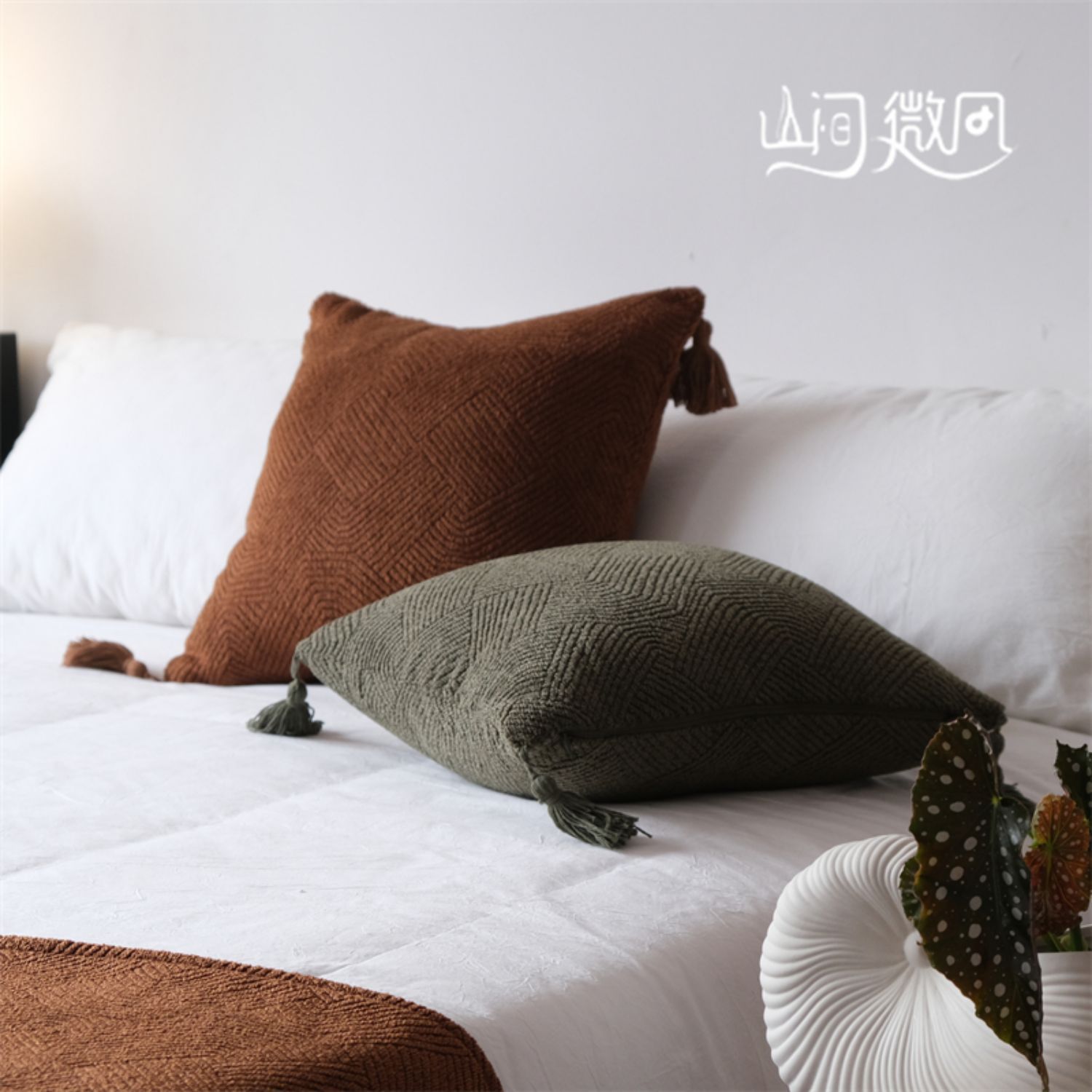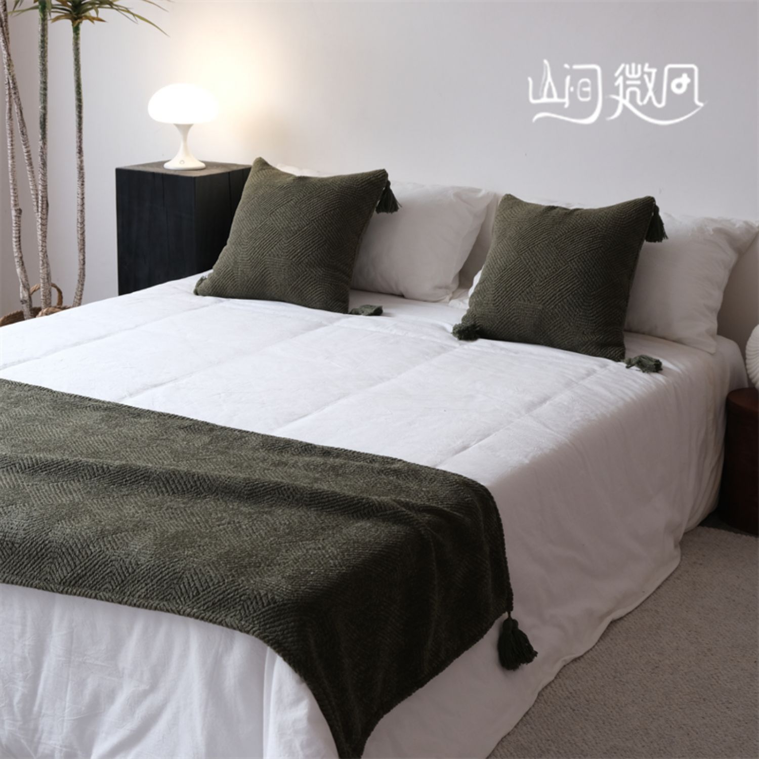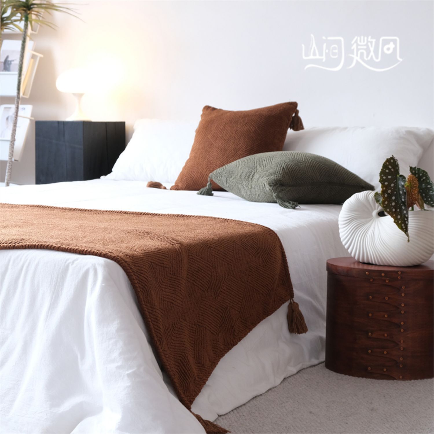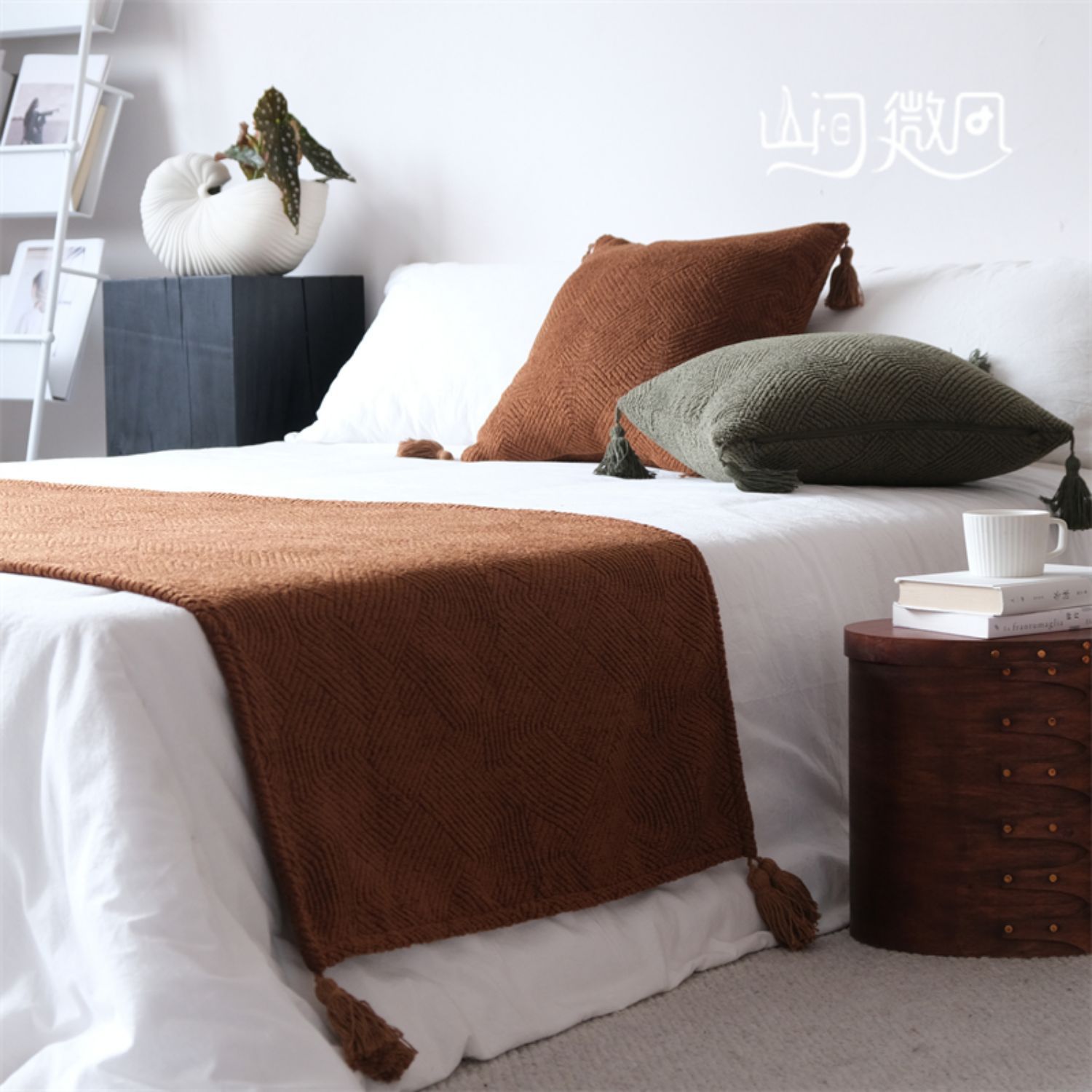 Maillard 컬러 침대 끝 담요 골동품 침대 끝 수건 담요 침대 수건 커버 담요 홈스테이 호텔 침대 깃발 다크 브라운 그린