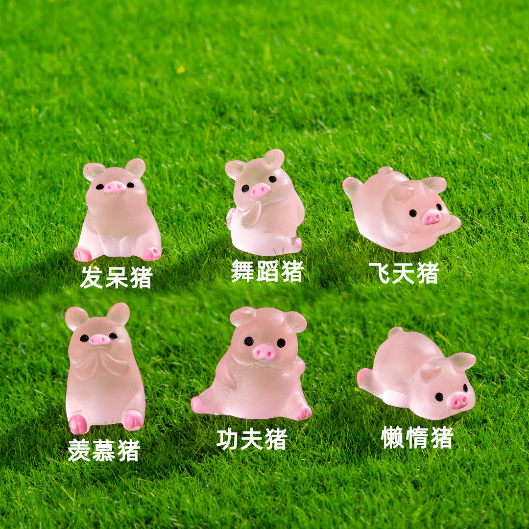 마이크로 랜드스케이프 수지 발광 장식품, 혼합 색상 미니 입체 장식품, 만화 동물 데스크탑 자동차 장식품
