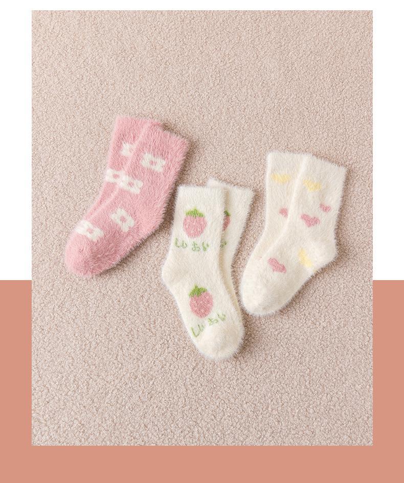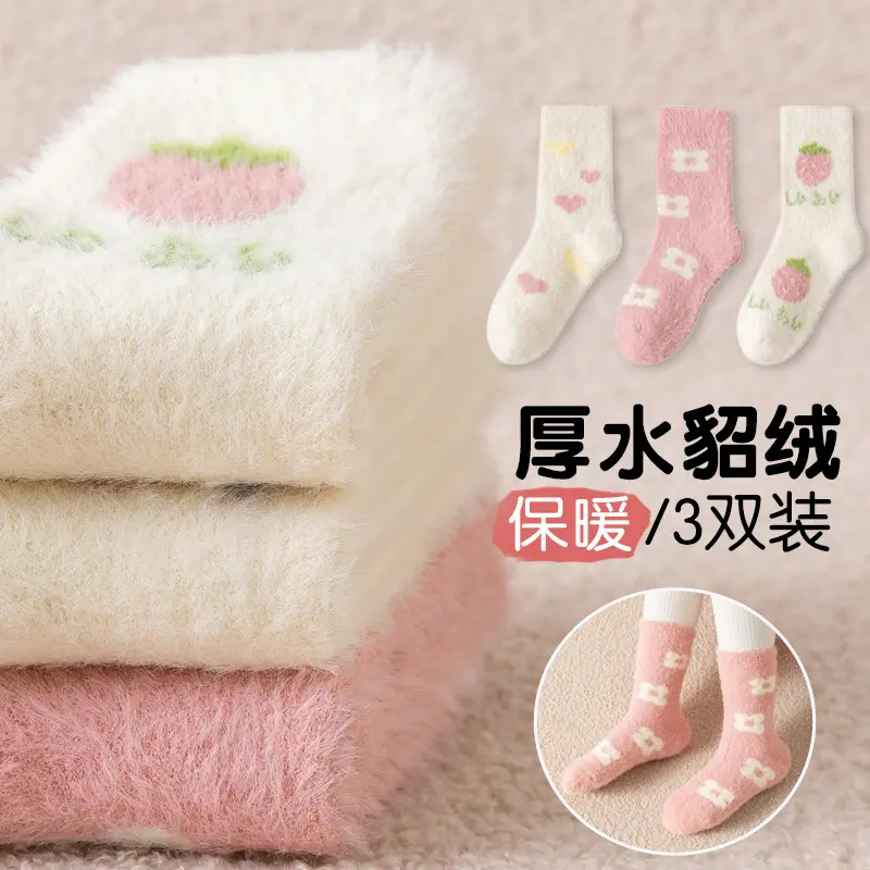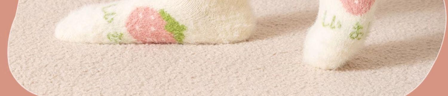 여아용 겨울 양말, 딸기 모양 밍크털 양말, 아동용 보온 양말, 귀엽고 따뜻한 수면 양말