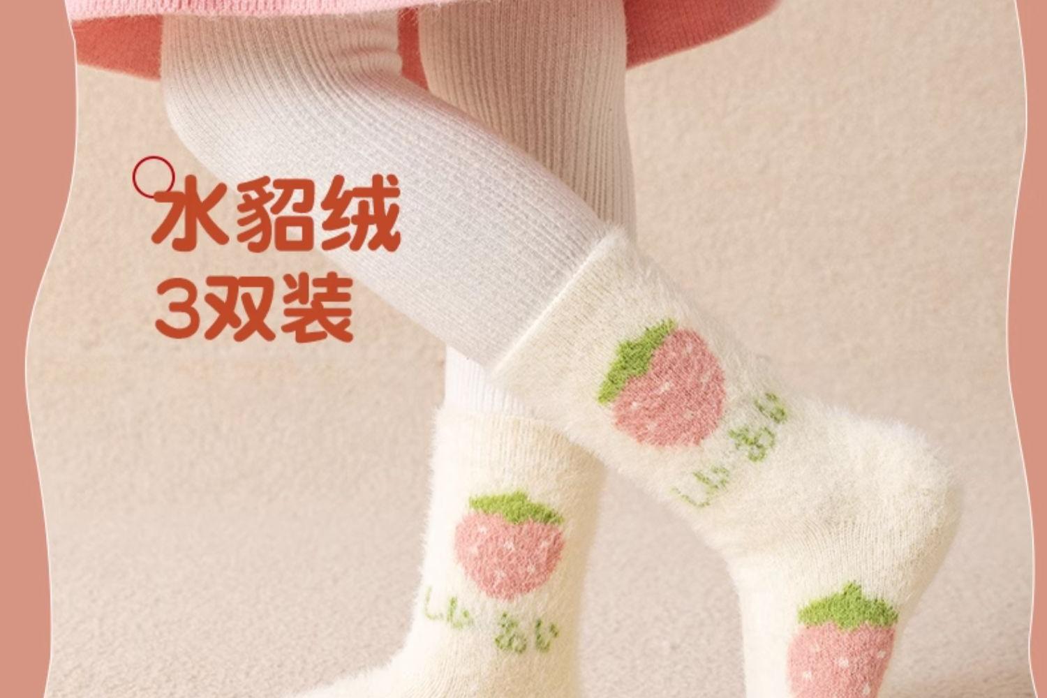 여아용 겨울 양말, 딸기 모양 밍크털 양말, 아동용 보온 양말, 귀엽고 따뜻한 수면 양말스토어 가기