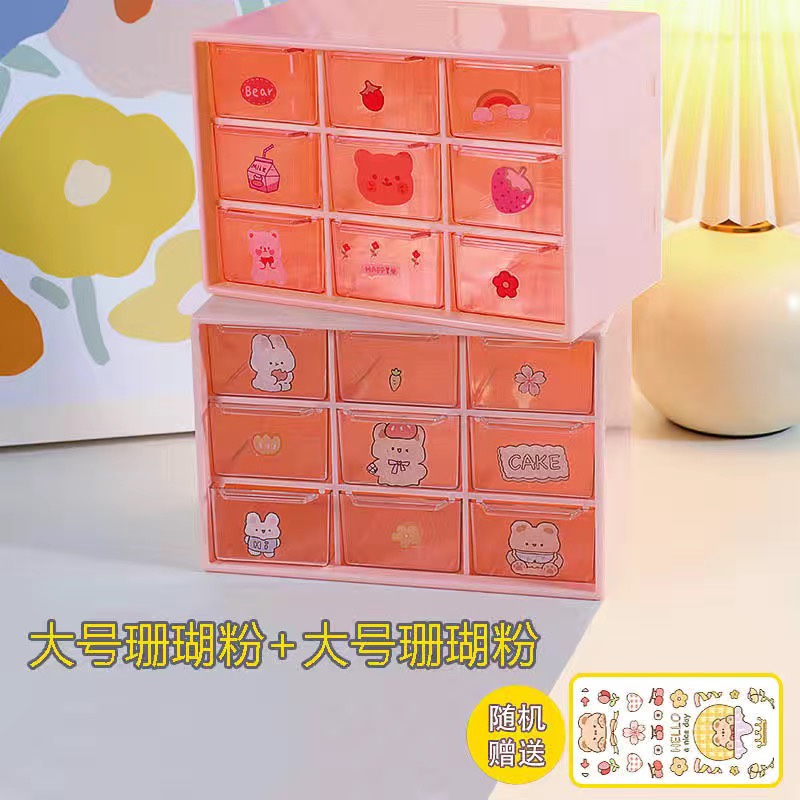 小红书同款九宫格收纳盒ins无印风抽屉式置物盒桌面化妆品收满和