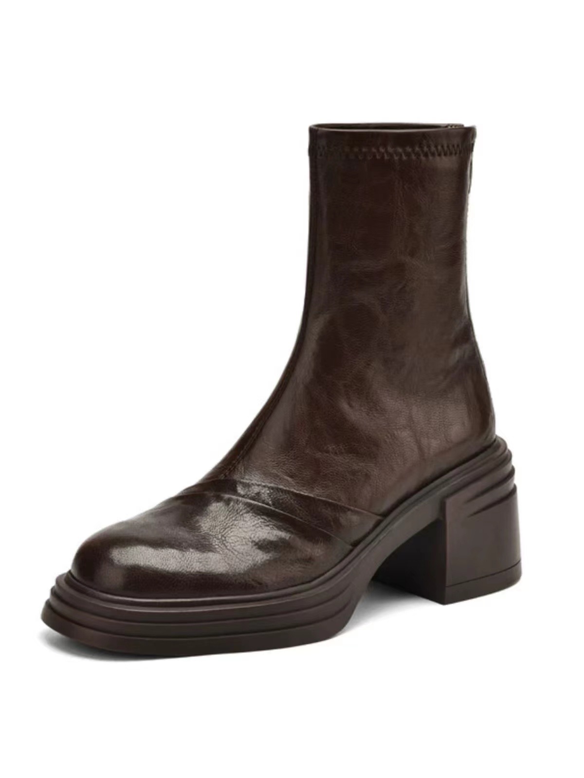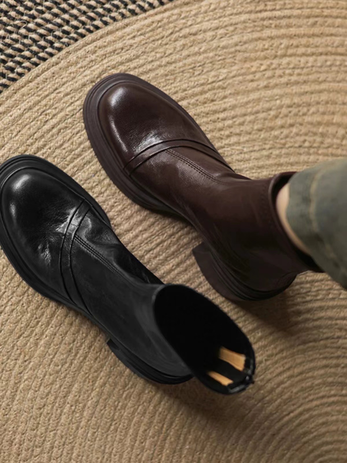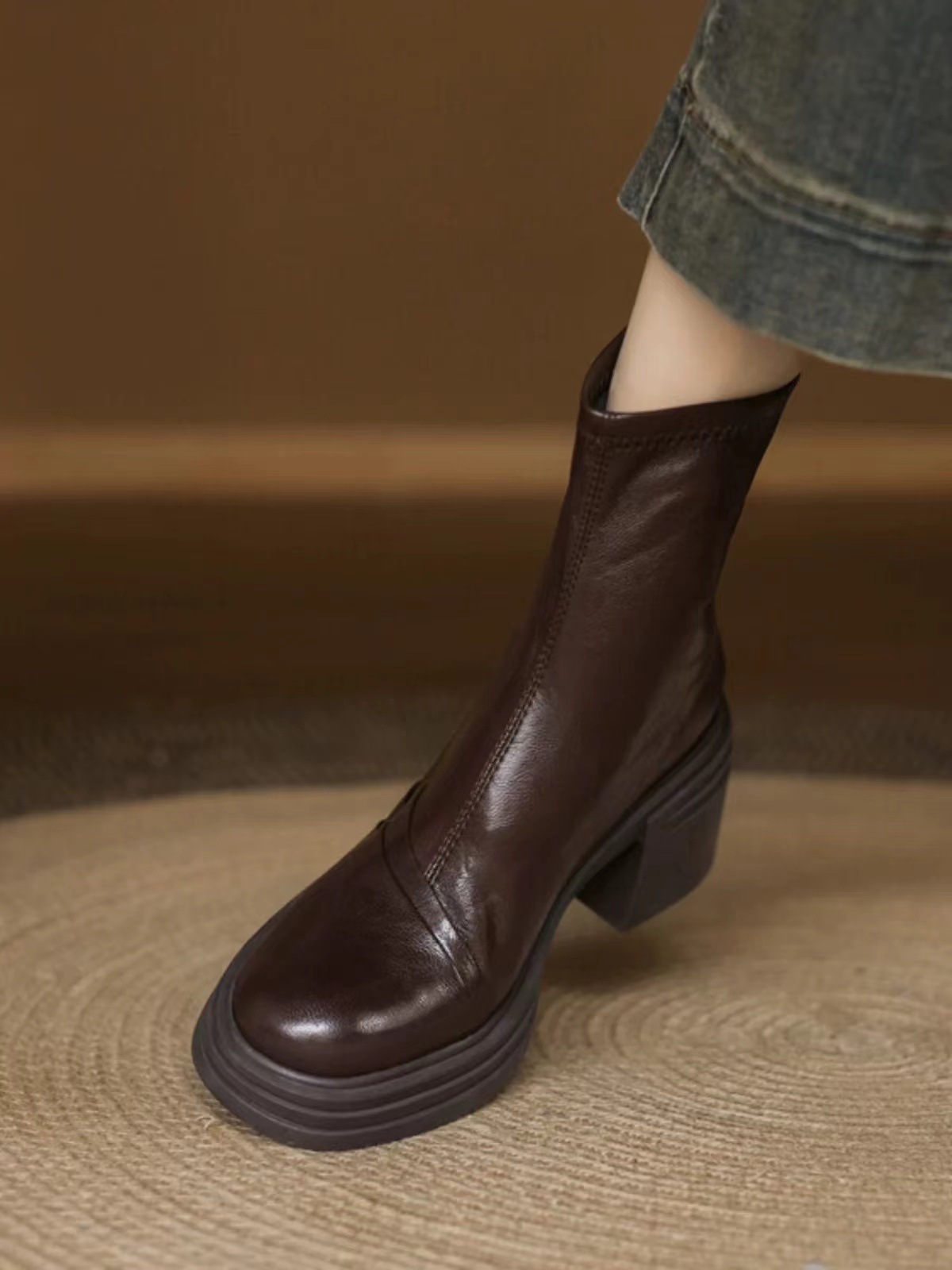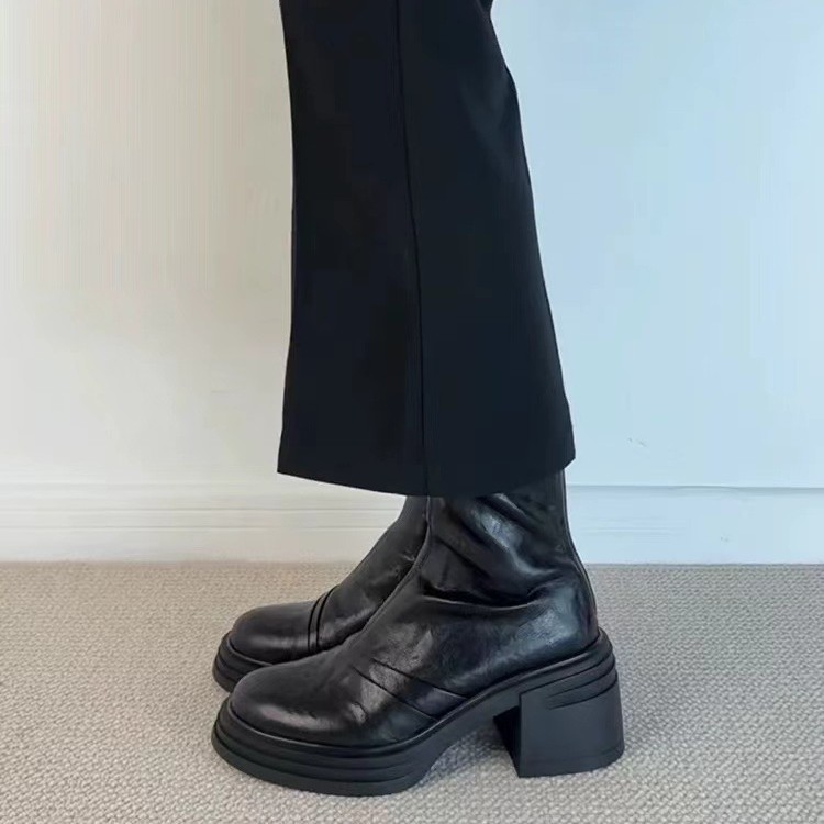 작은 두꺼운 밑창 높이 증가 얇은 부츠 여자 영국 스타일 마틴 부츠 레트로 라운드 토트 두꺼운 힐 슬림 룩 올 매치 쇼트 부츠