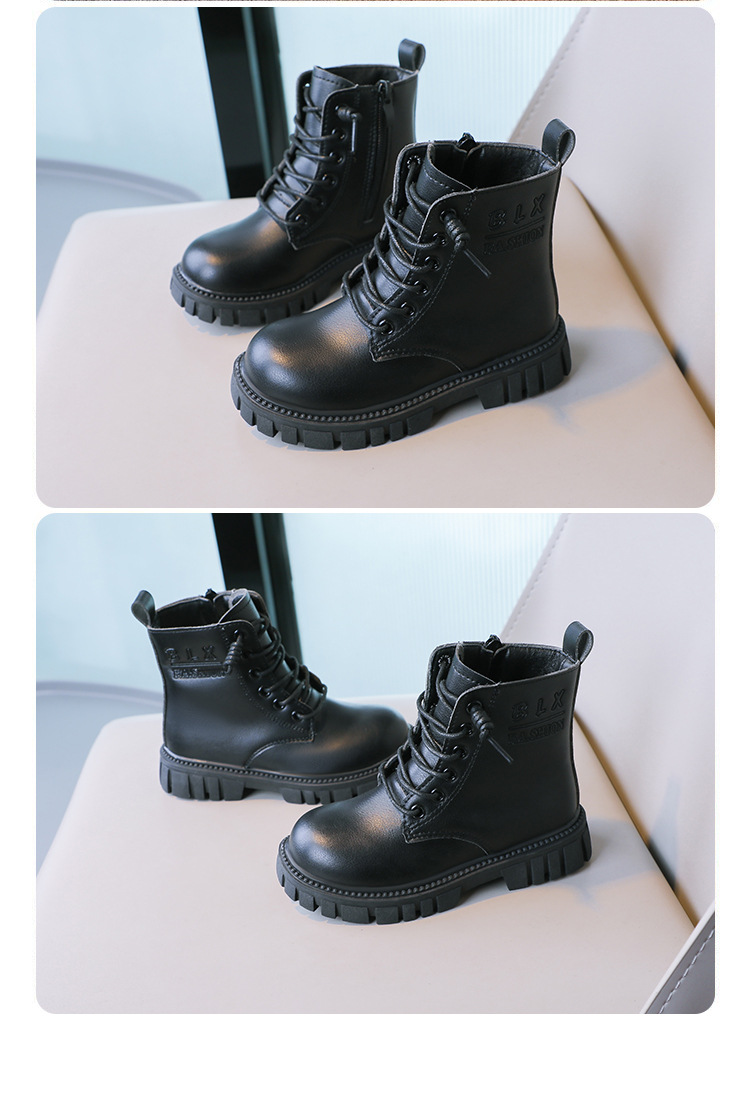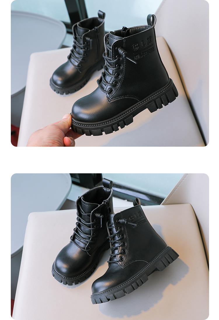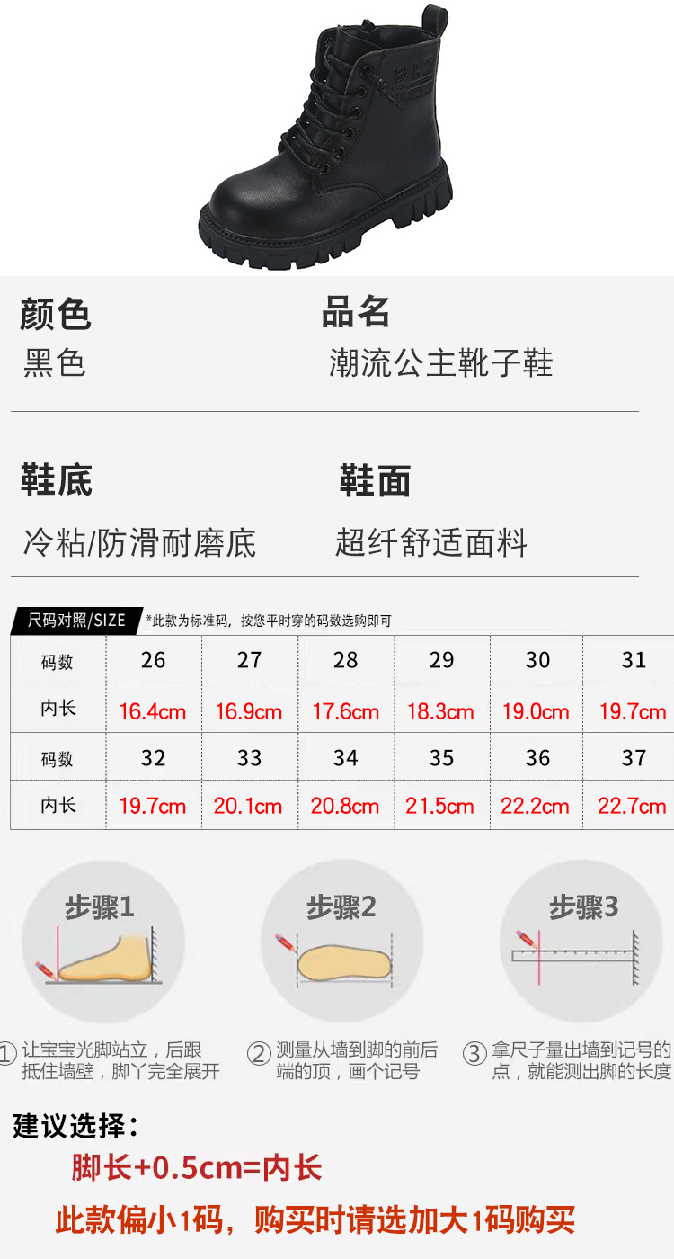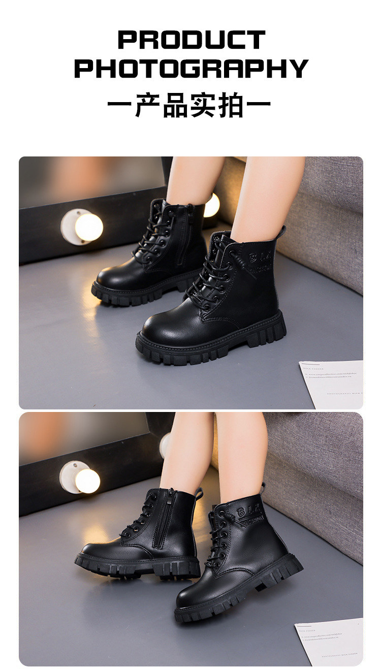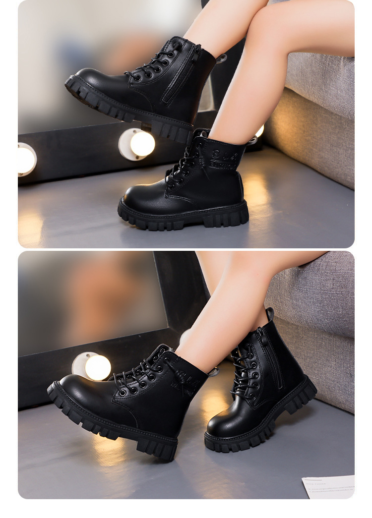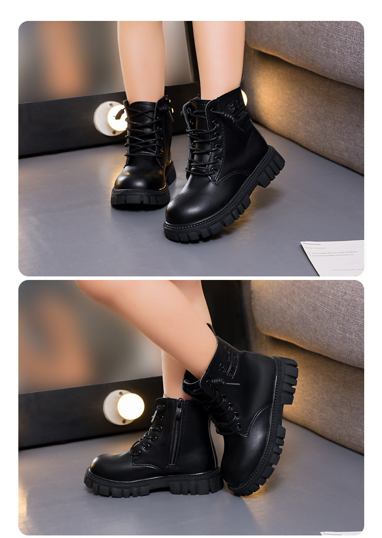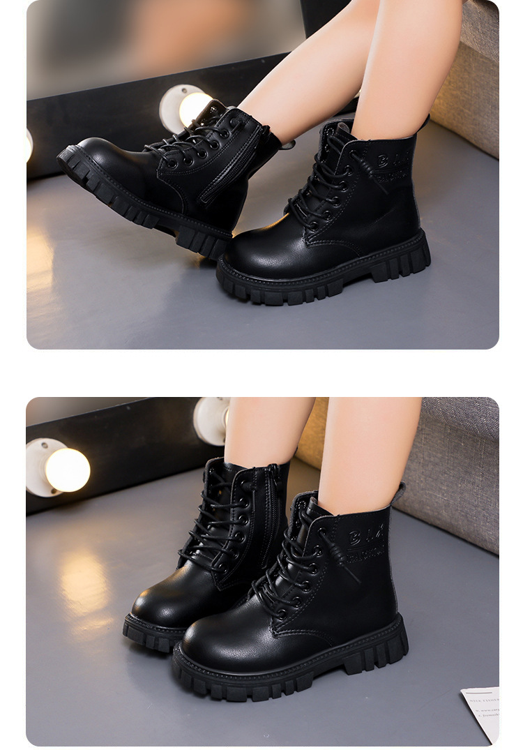 봄과 가을 소녀 마틴 부츠 중간 두꺼운 밑창 미끄럼 방지 가죽 어린 소녀 유행 인터넷 연예인 신발 남성용 검은 색 작은 가죽 신발스토어 가기