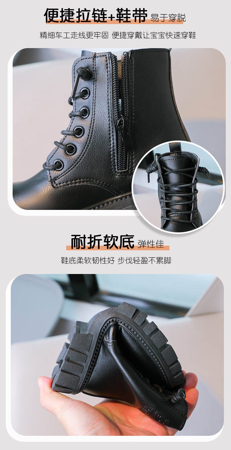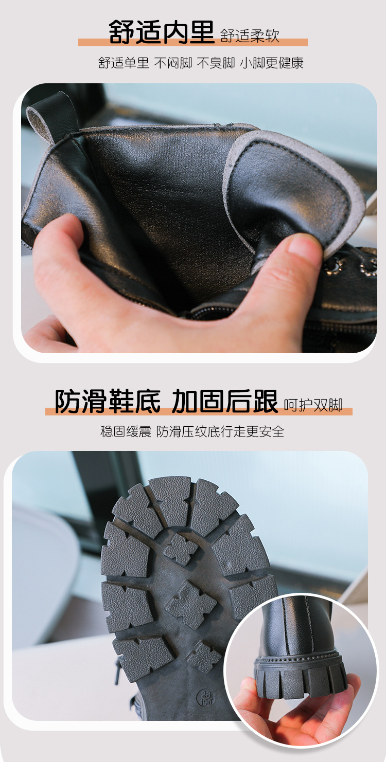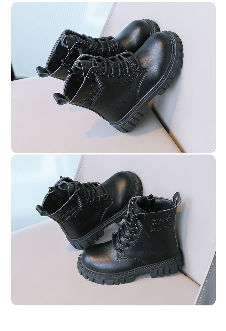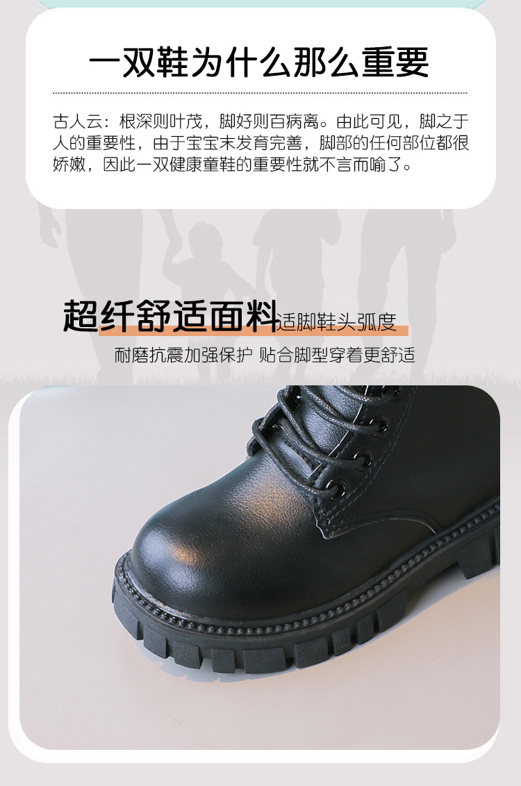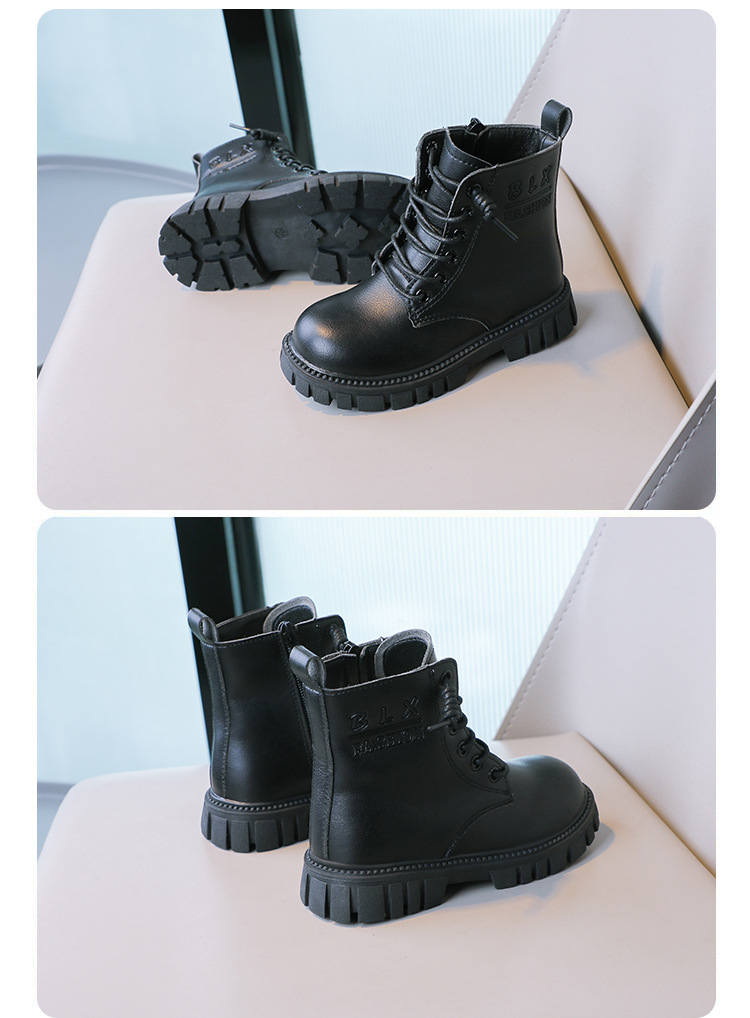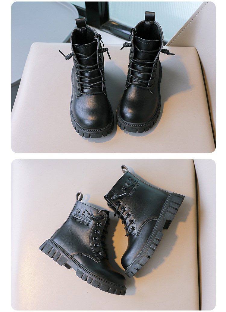 봄과 가을 소녀 마틴 부츠 중간 두꺼운 밑창 미끄럼 방지 가죽 어린 소녀 유행 인터넷 연예인 신발 남성용 검은 색 작은 가죽 신발스토어 가기