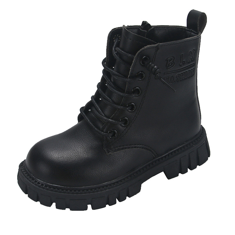 봄과 가을 소녀 마틴 부츠 중간 두꺼운 밑창 미끄럼 방지 가죽 어린 소녀 유행 인터넷 연예인 신발 남성용 검은 색 작은 가죽 신발