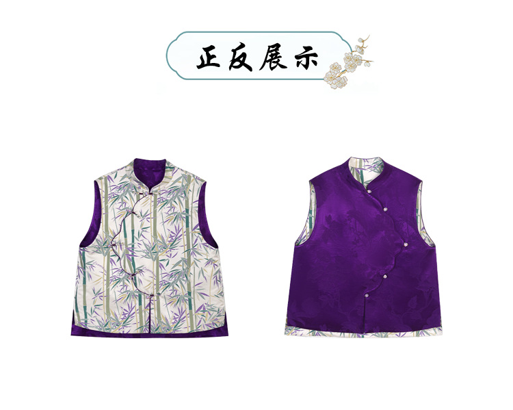【모주】양면 착용 가능한 뽕나무 실크 중국풍 조끼 여성용 봄 가을 신상품 새로운 중국풍 실크 브로케이드 단추 조끼스토어 가기