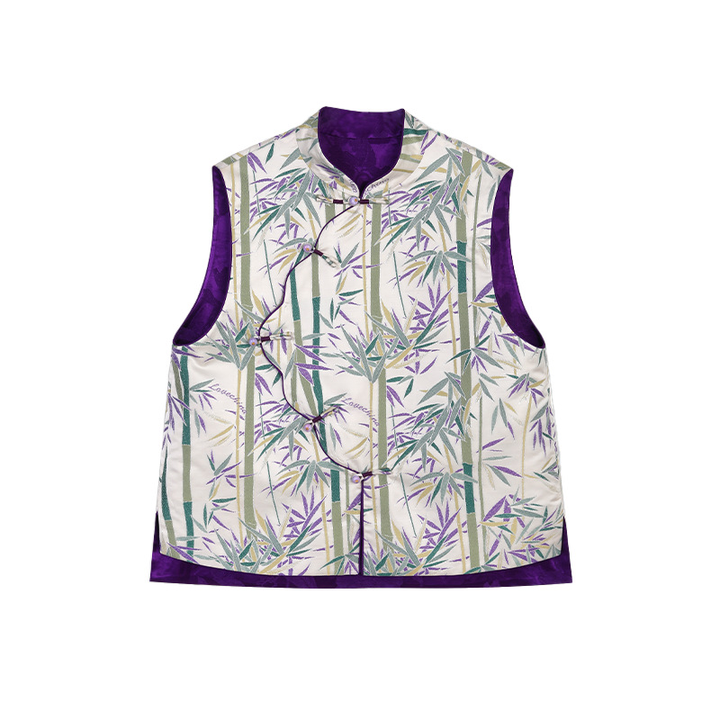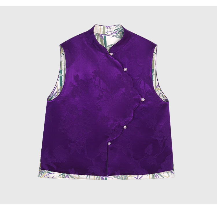 【모주】양면 착용 가능한 뽕나무 실크 중국풍 조끼 여성용 봄 가을 신상품 새로운 중국풍 실크 브로케이드 단추 조끼