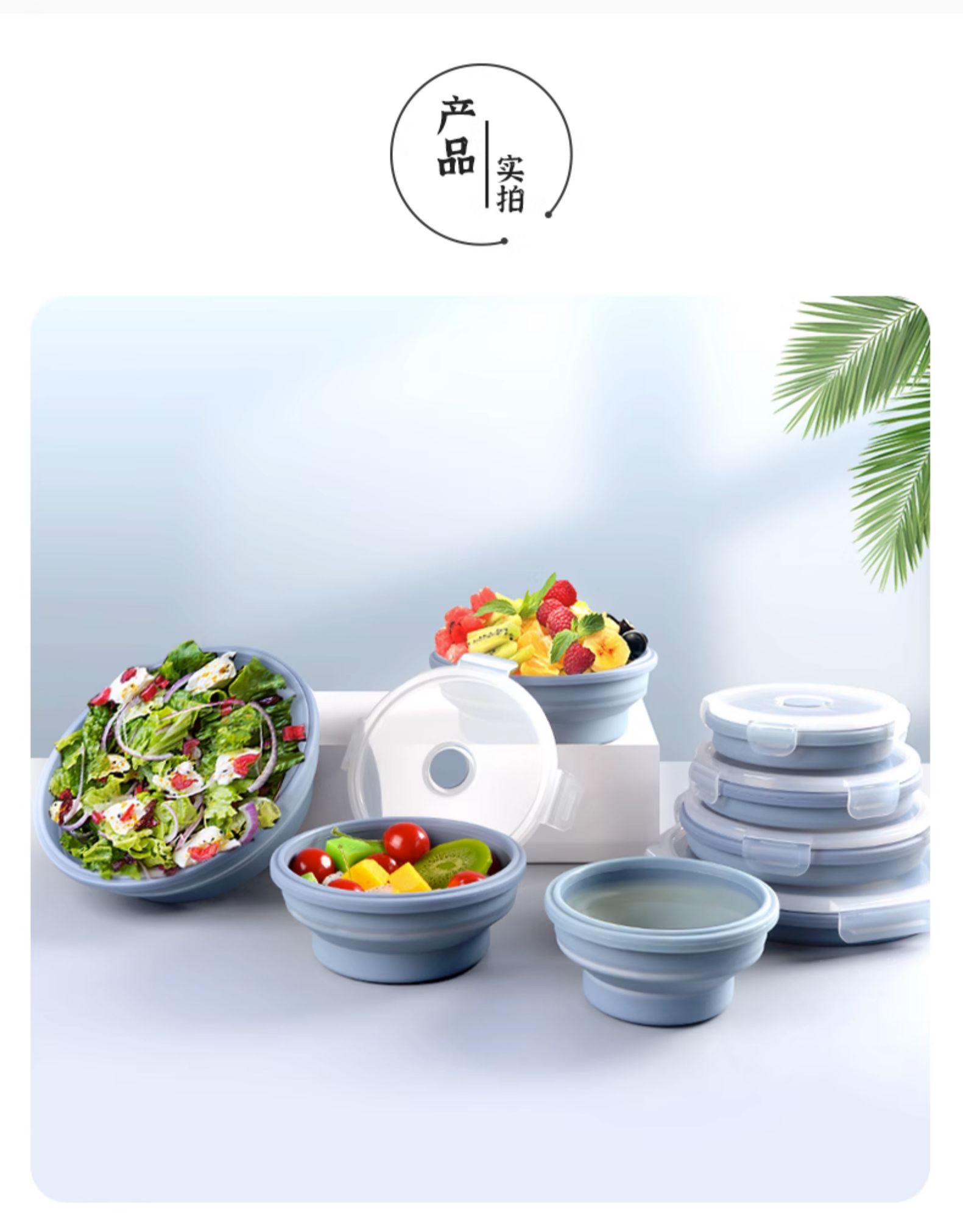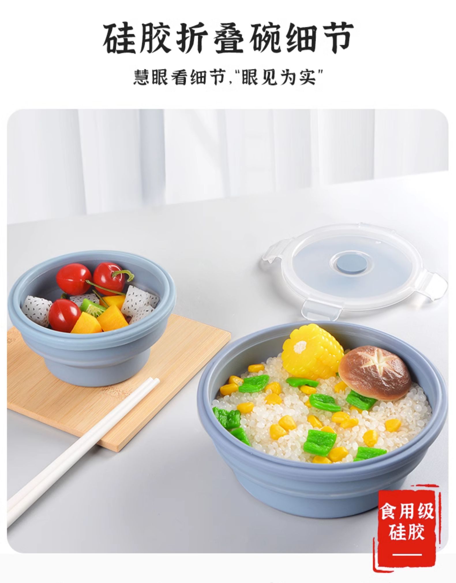 식품 등급 실리콘 접이식 그릇, 휴대용 여행용 식기 그릇, 어린이, 아기, 직장인, 야외 접이식 그릇