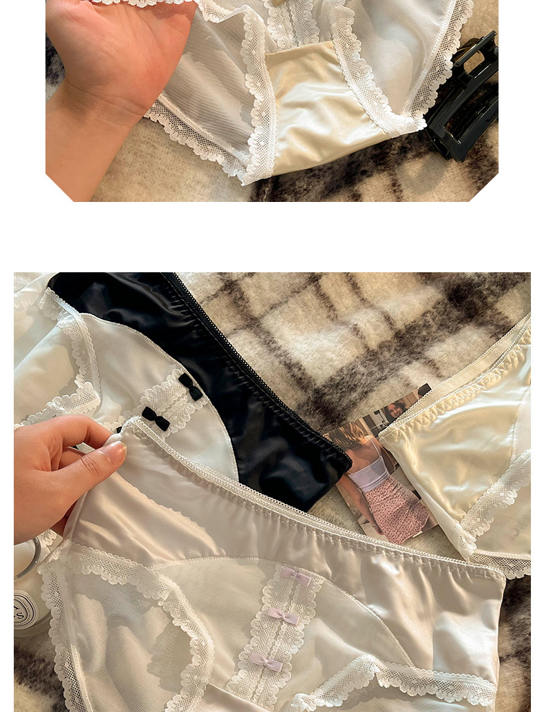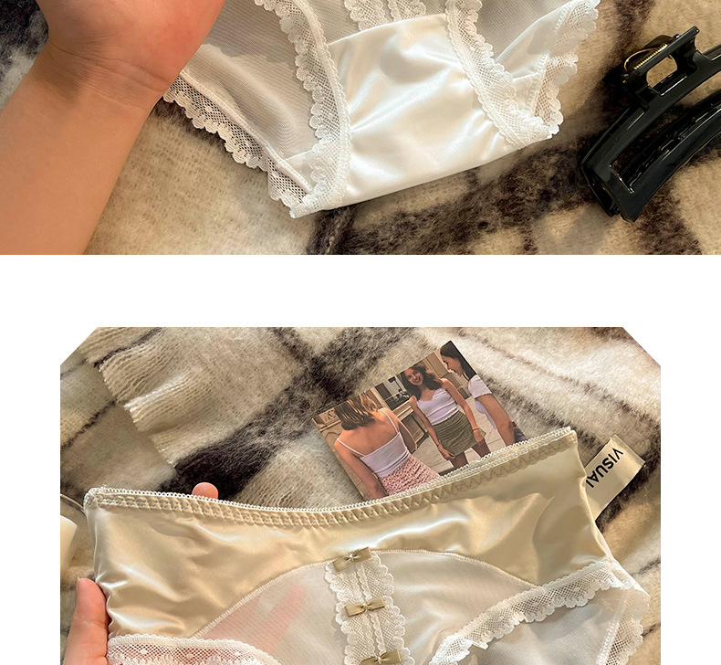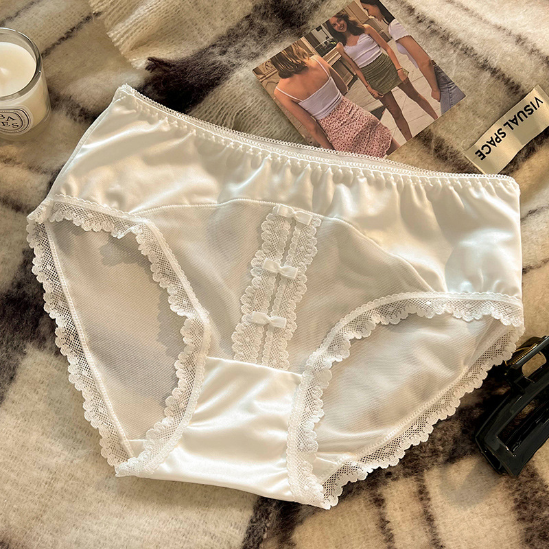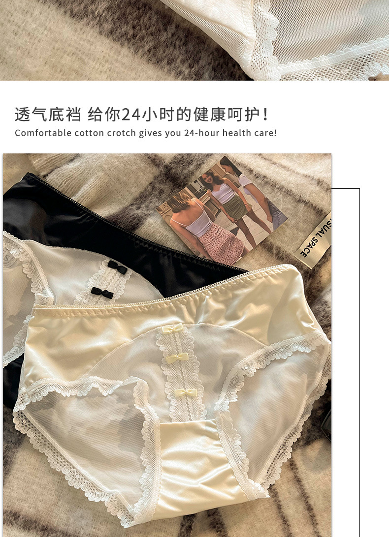 섹시한 Guofeng Girl's Lace 속옷 Mid-Waist Pure Desire Hollow Breathable Mesh Bow Women's Cotton Crotch Briefs