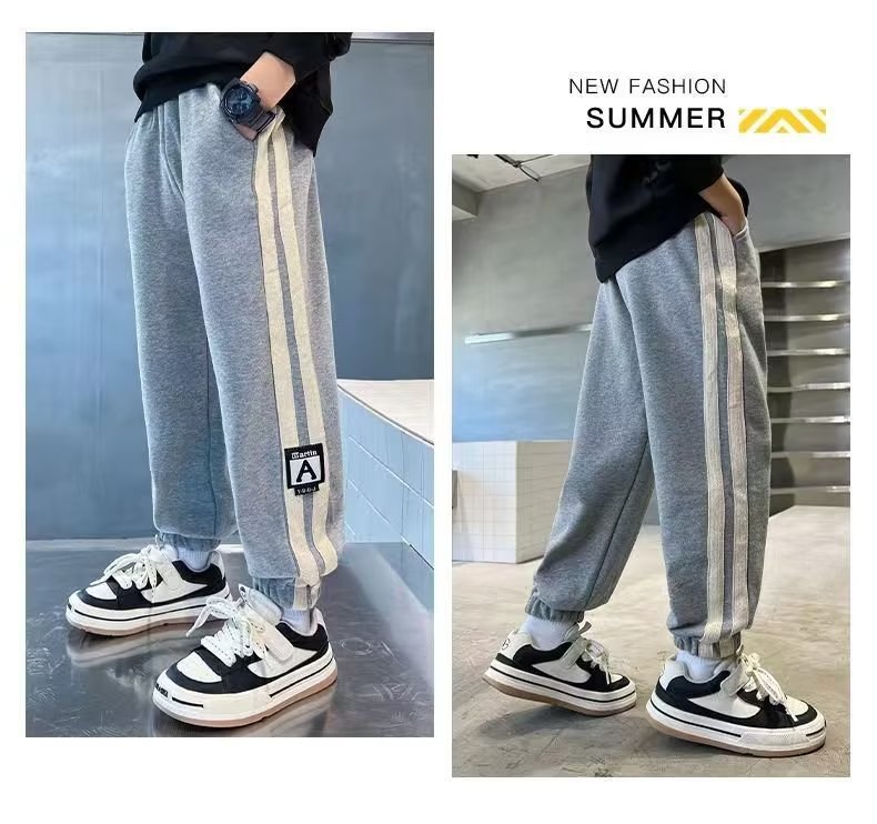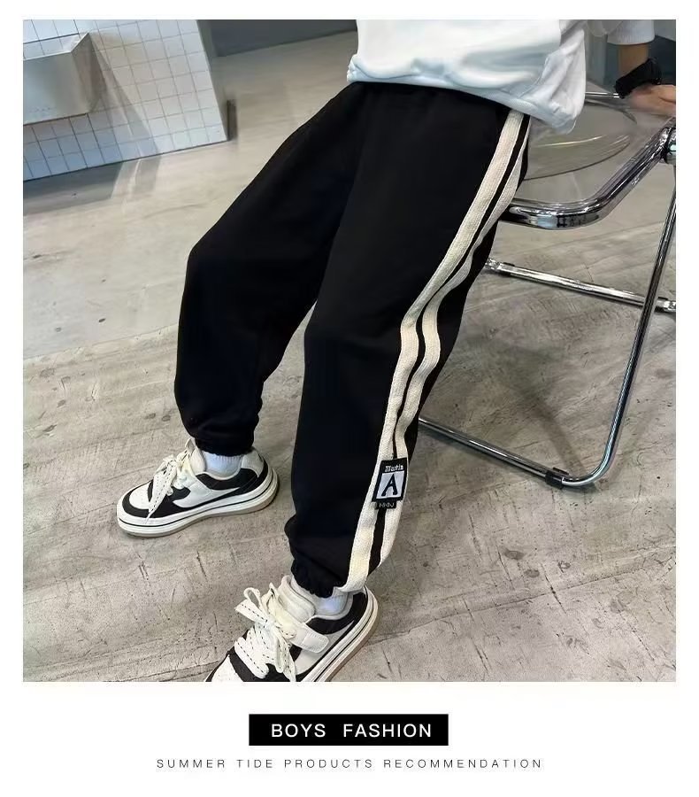 소년 기모 캐주얼 스포츠 바지 2023 새로운 가을 및 겨울 착용 올매치 스트라이프 대형 어린이 다리 바지스토어 가기