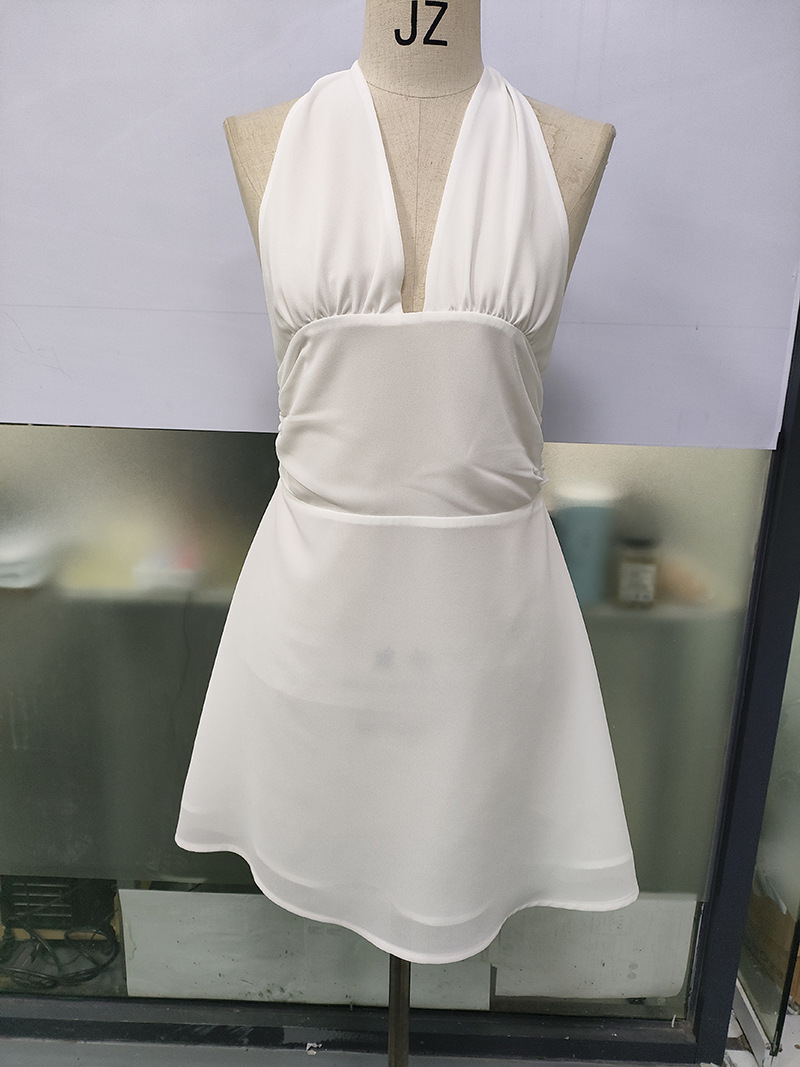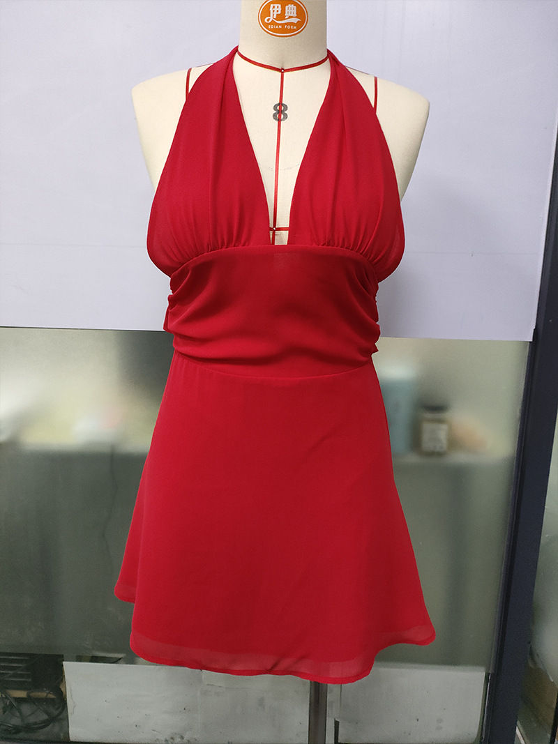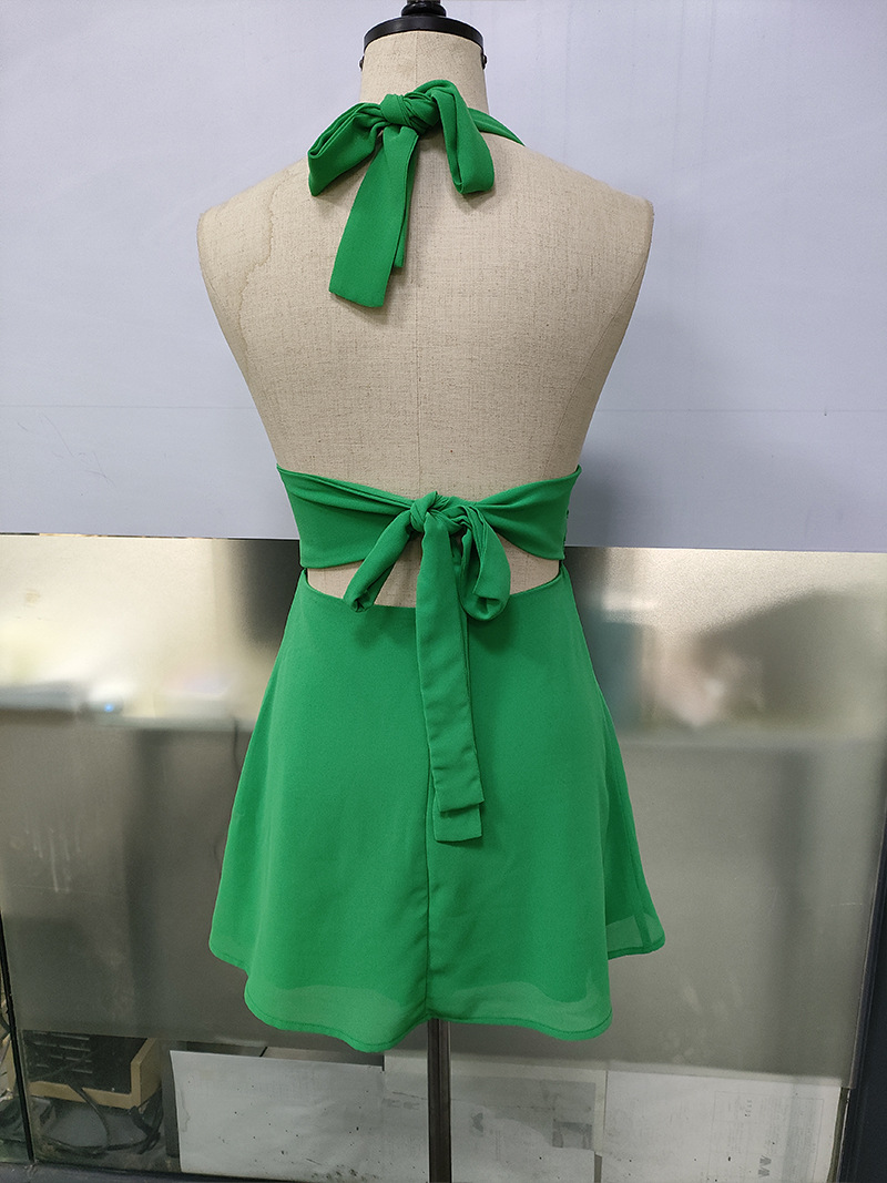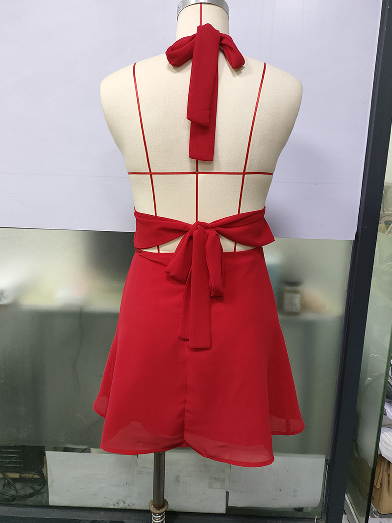 유럽 및 미국 직수입 여성용 끈 묶음 딥 V 타이트 미니스커트 섹시한 핫걸 백리스 끈 묶음 허리 조임 원피스
