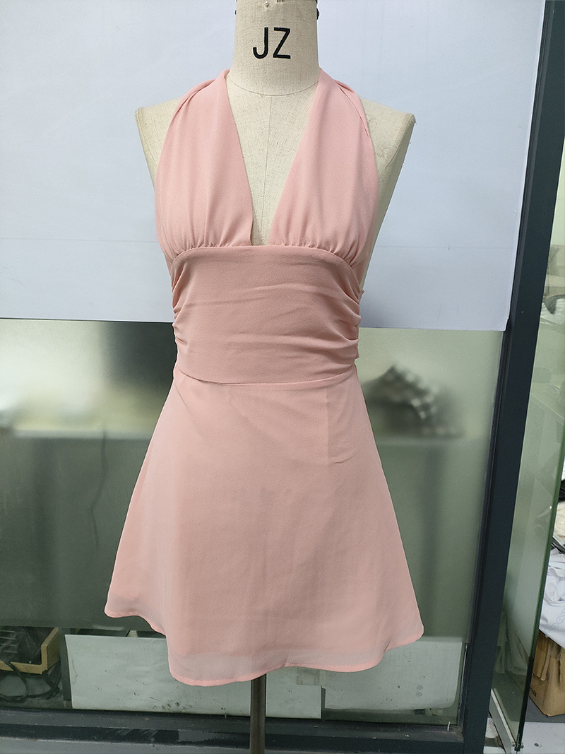 유럽 및 미국 직수입 여성용 끈 묶음 딥 V 타이트 미니스커트 섹시한 핫걸 백리스 끈 묶음 허리 조임 원피스스토어 가기
