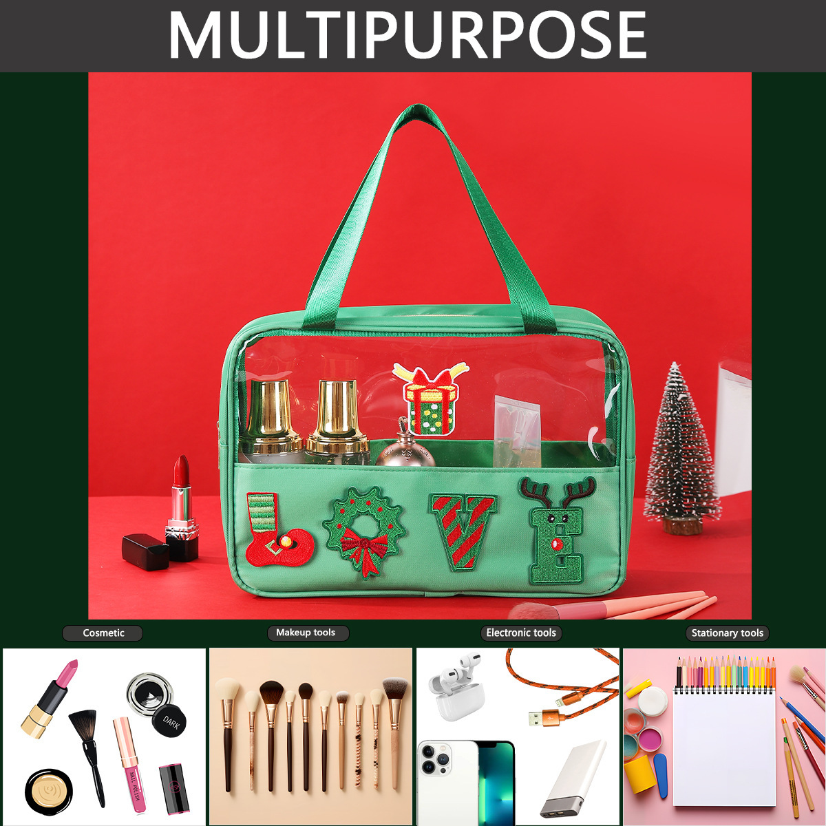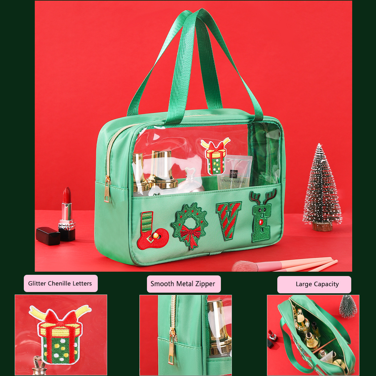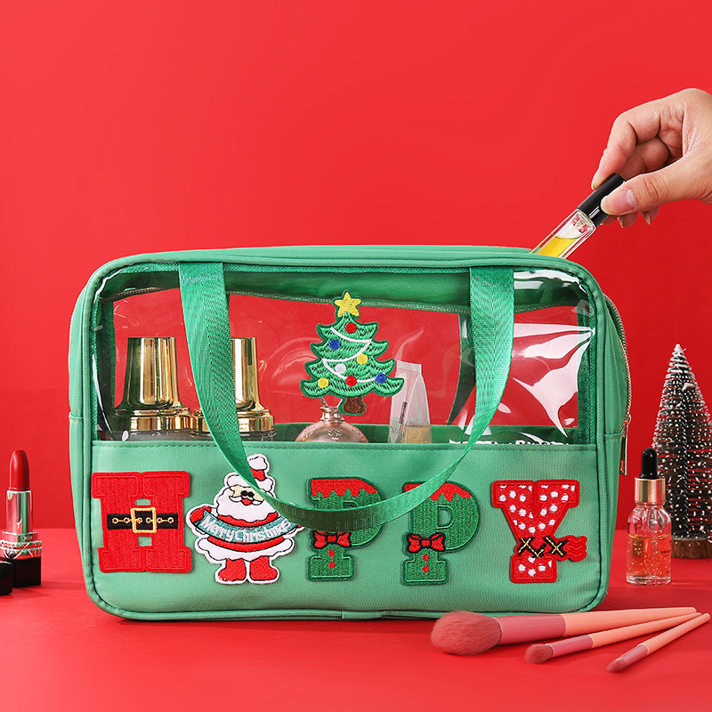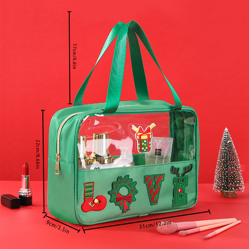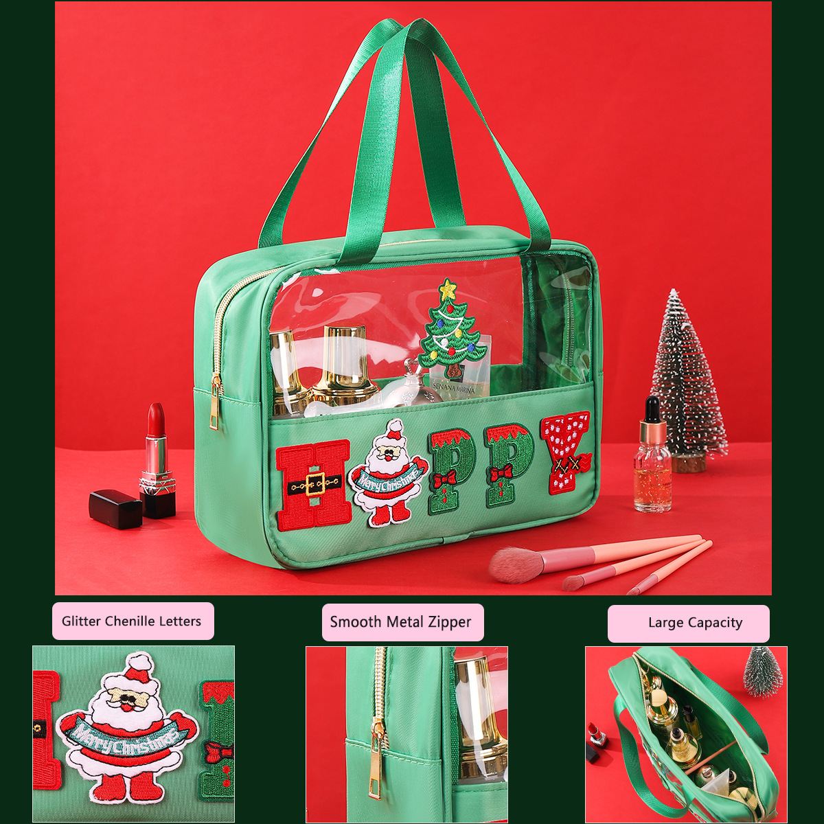 아마존 크리스마스 체닐 자수 편지 화장품 가방 대용량 화장실 가방 높은 뷰티 여행 보관 가방