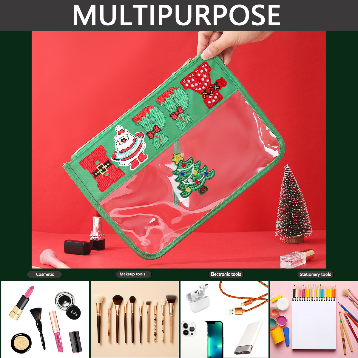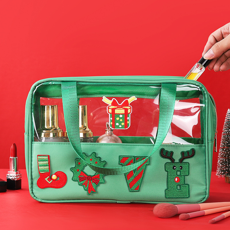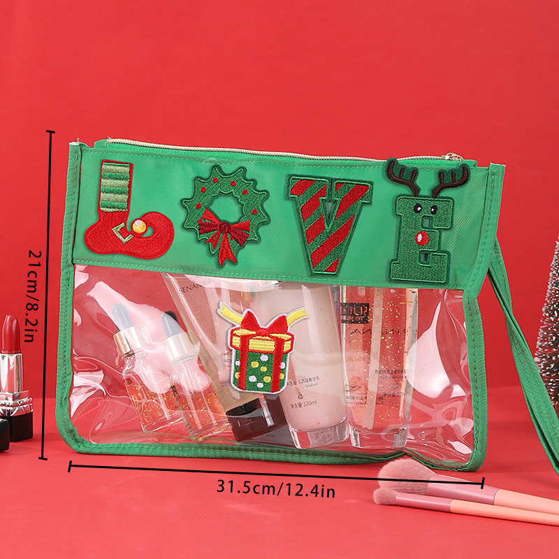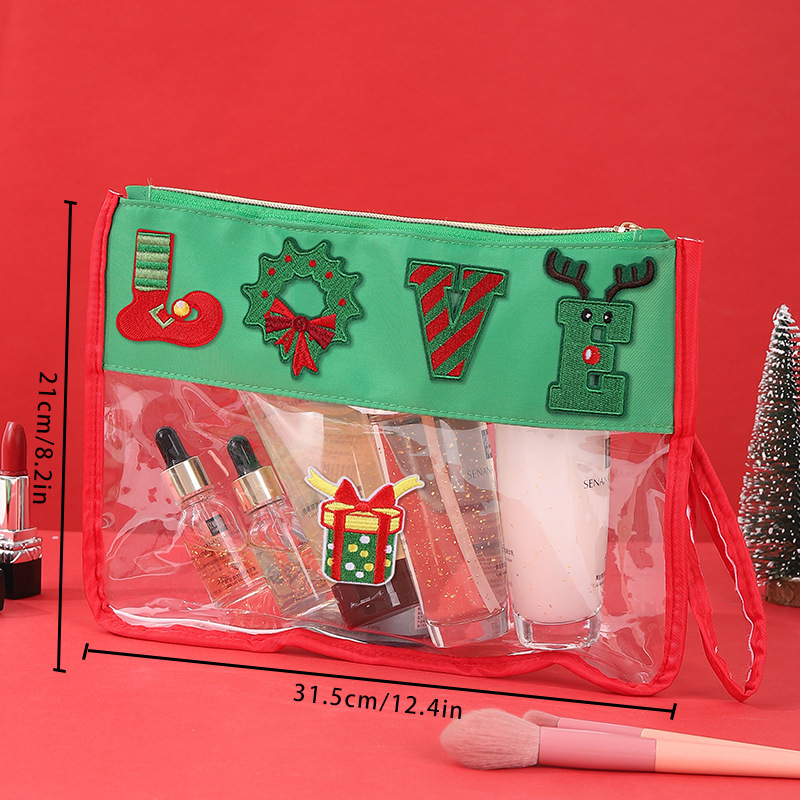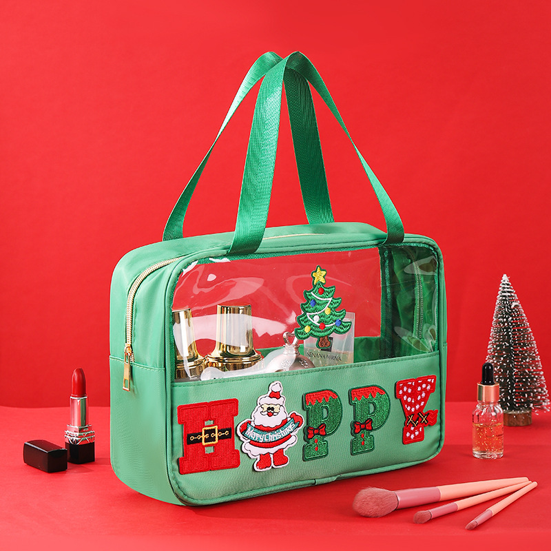 아마존 크리스마스 체닐 자수 편지 화장품 가방 대용량 화장실 가방 높은 뷰티 여행 보관 가방