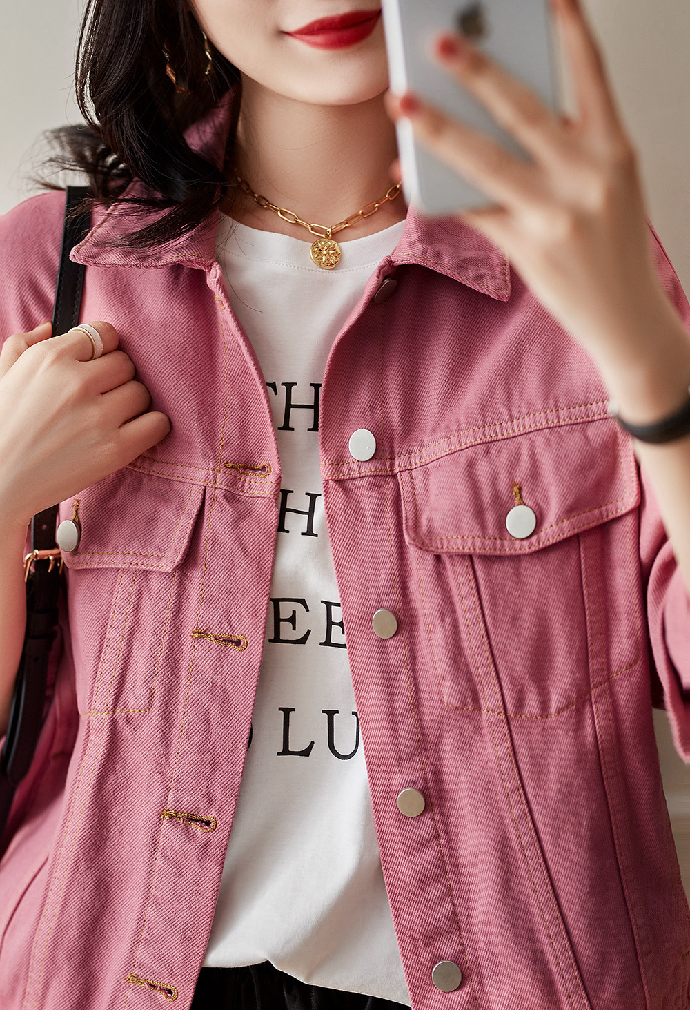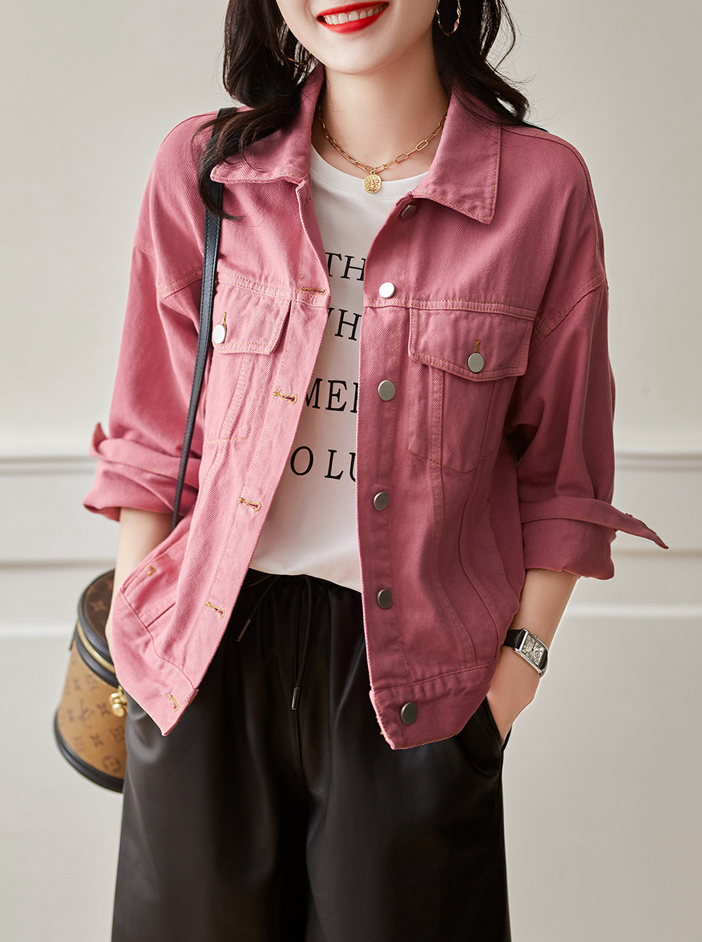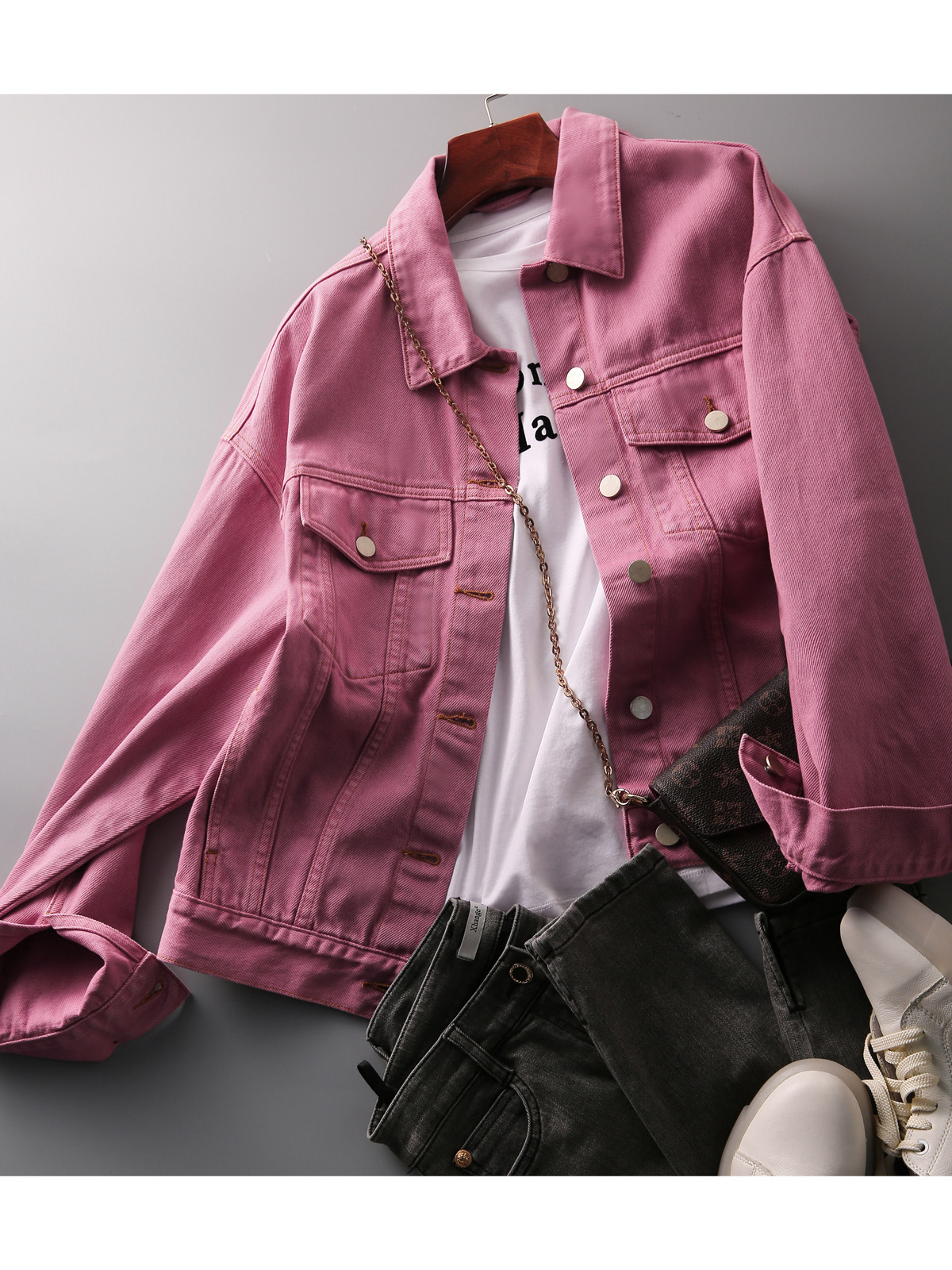 날카로운 무기를 줄이고 고기 데님 재킷 코트 여성 가을을 숨기기 쉬운 3 계절 나이를 입을 수 있습니다.
