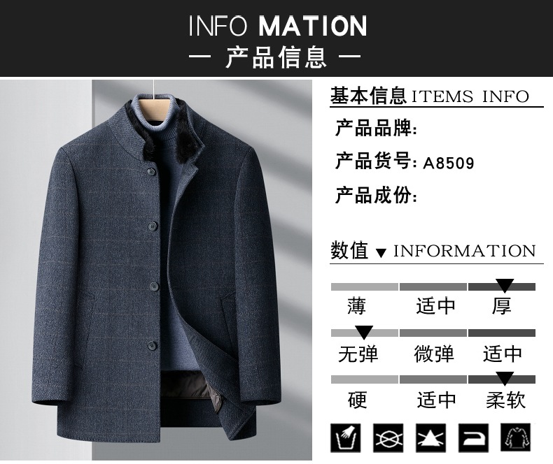 도매 브랜드 밍크 칼라 울 코트 양면 트위드 두꺼운 따뜻한 패션 캐주얼 중년 아빠 코트스토어 가기