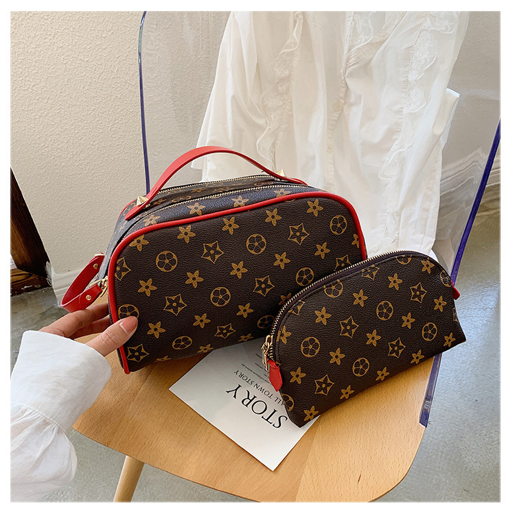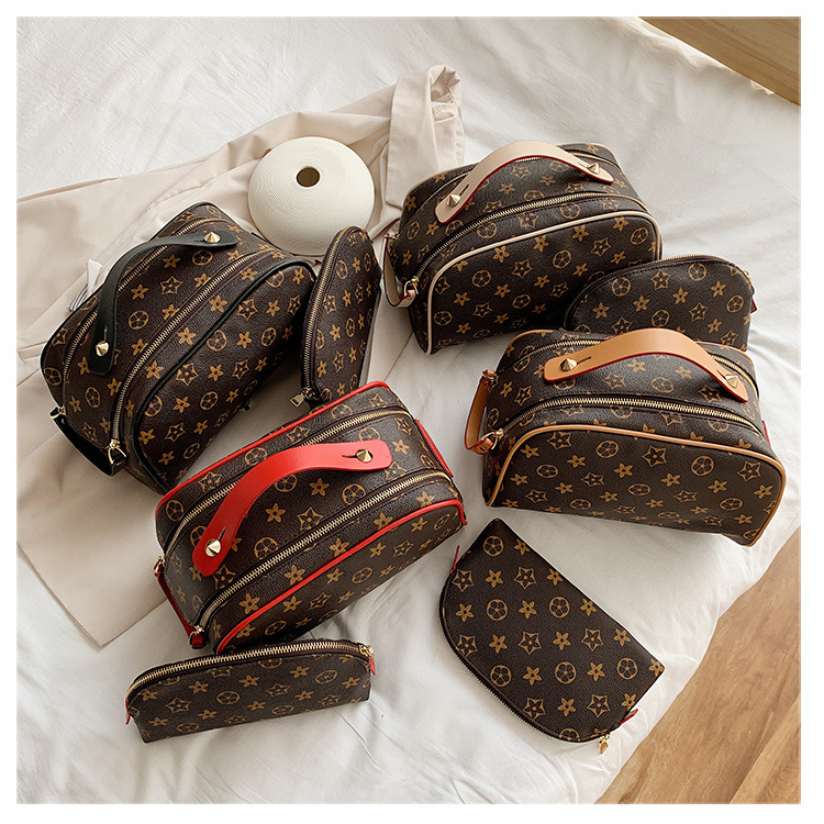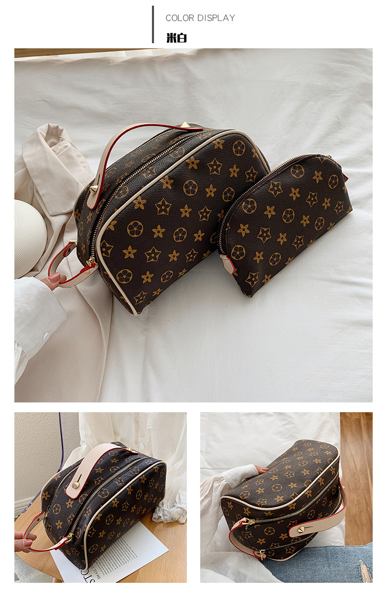 사용자 정의 화장품 가방 새로운 대용량 휴대용 여성 PU 더블 지퍼 핸드백 방수 여행 세면 용품 보관 가방
