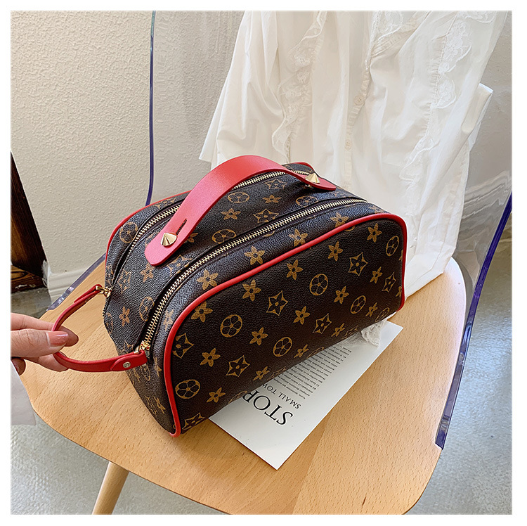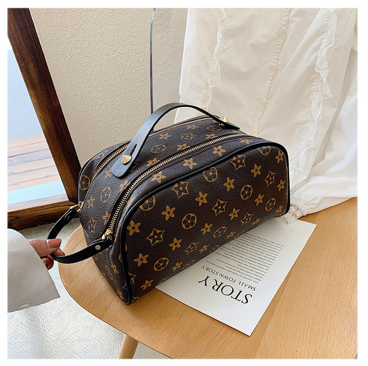 사용자 정의 화장품 가방 새로운 대용량 휴대용 여성 PU 더블 지퍼 핸드백 방수 여행 세면 용품 보관 가방스토어 가기
