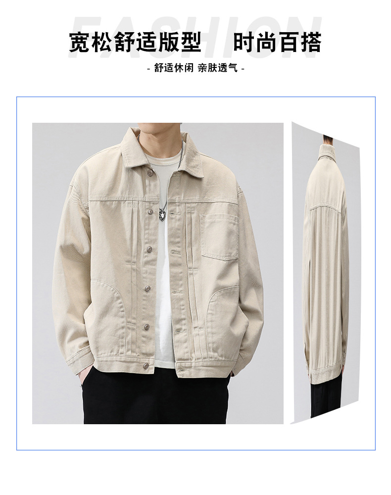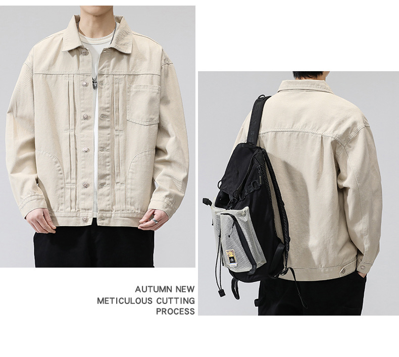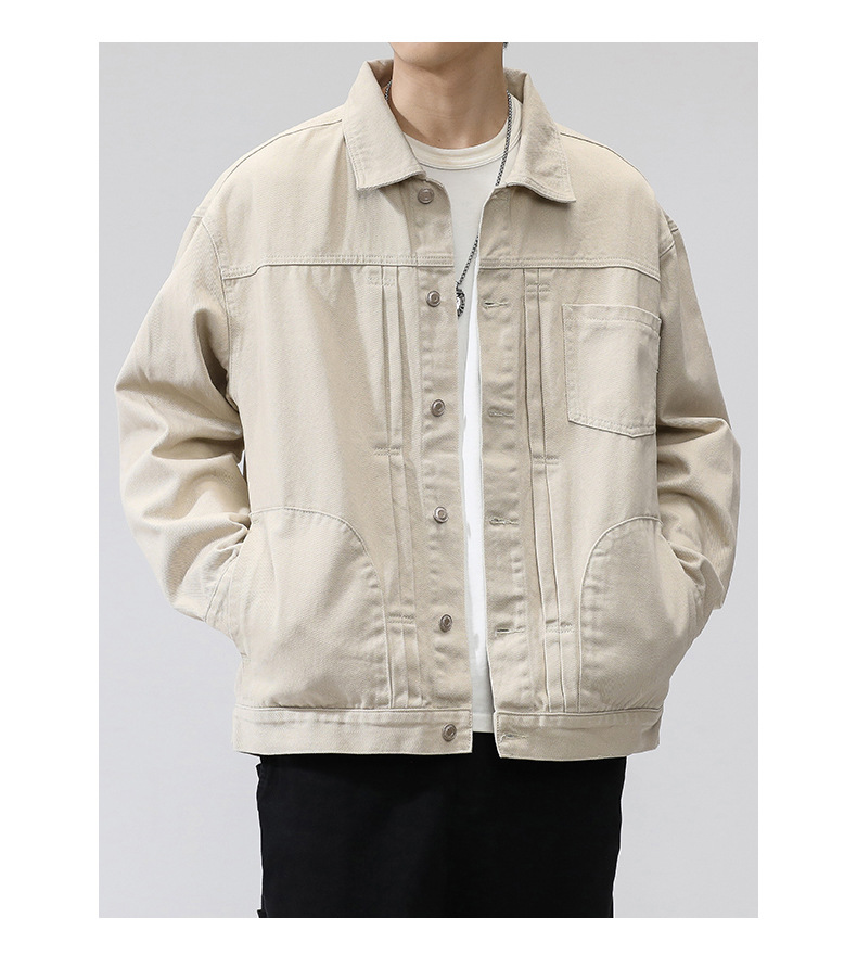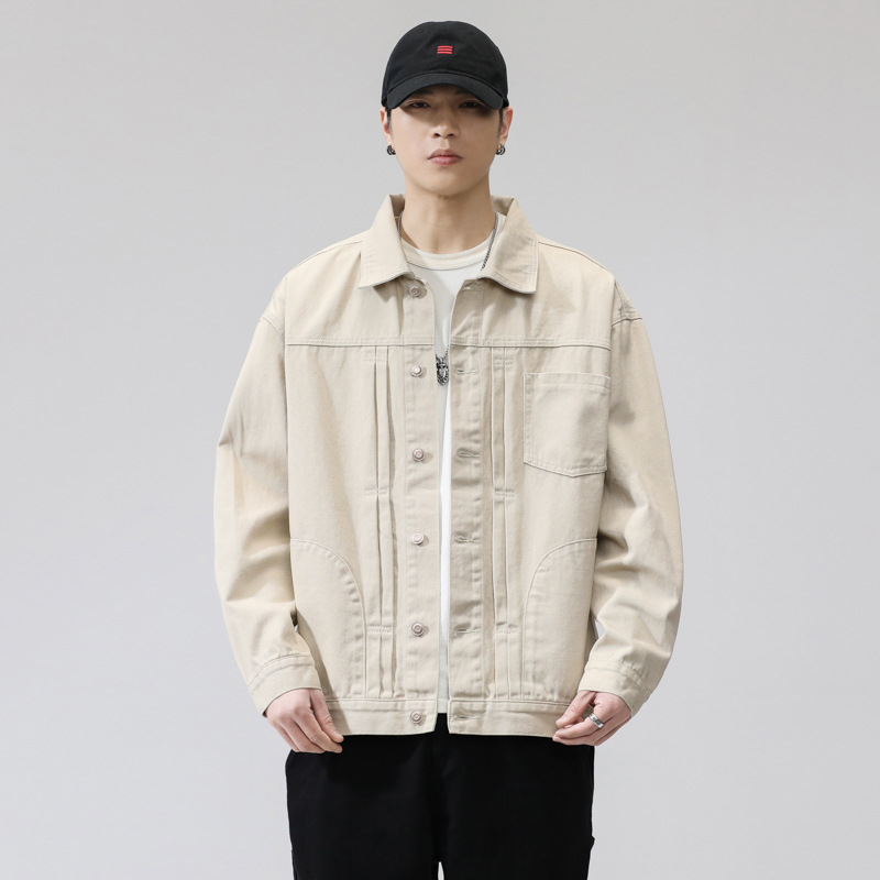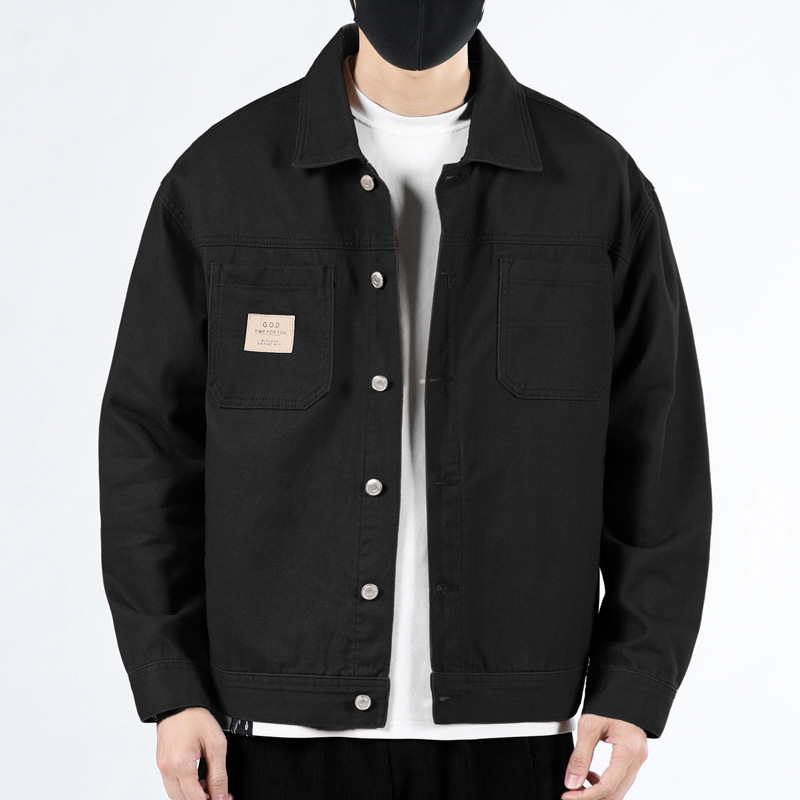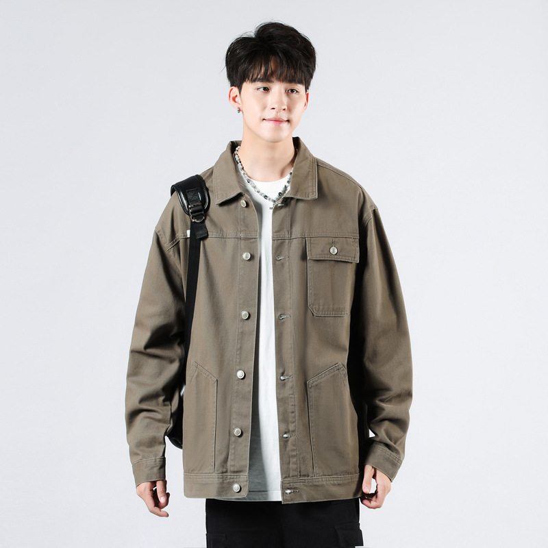 퓨어 코튼 데님 재킷 남자 홍콩 스타일 트렌디 브랜드 Ins Tooling Loose All-match Loose High-end Sense Jacket Top Men's