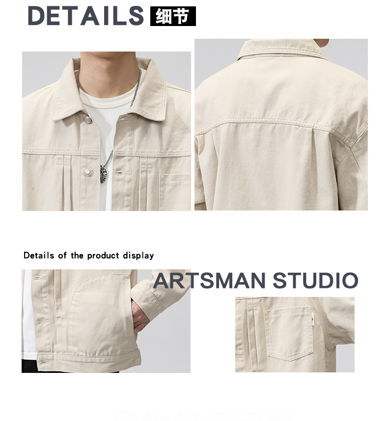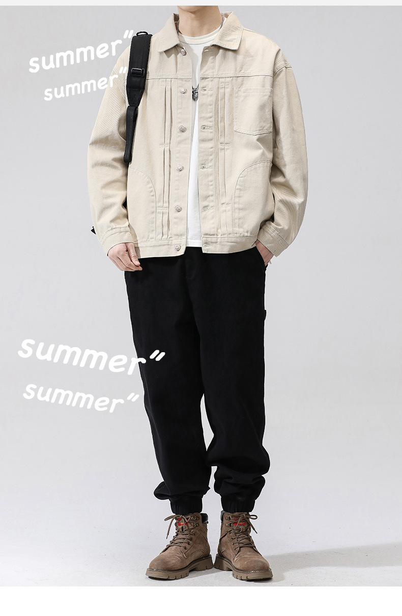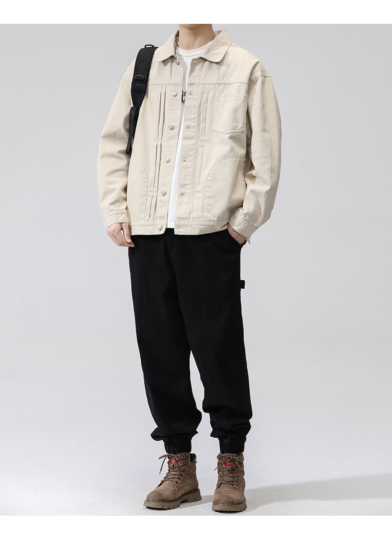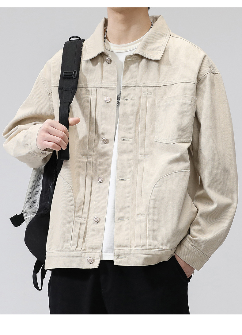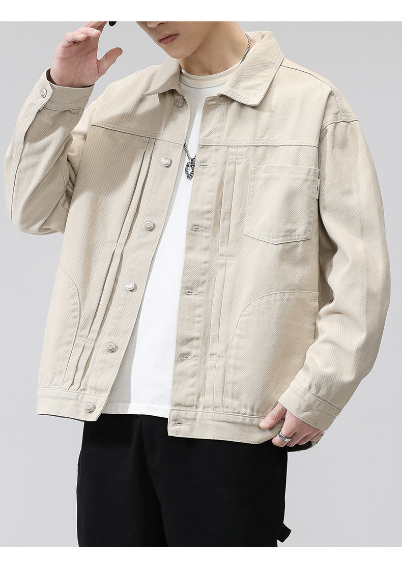 퓨어 코튼 데님 재킷 남자 홍콩 스타일 트렌디 브랜드 Ins Tooling Loose All-match Loose High-end Sense Jacket Top Men's