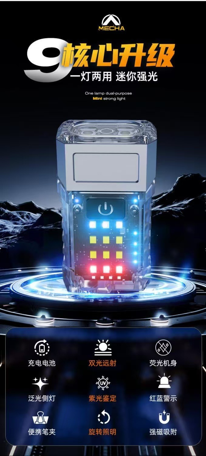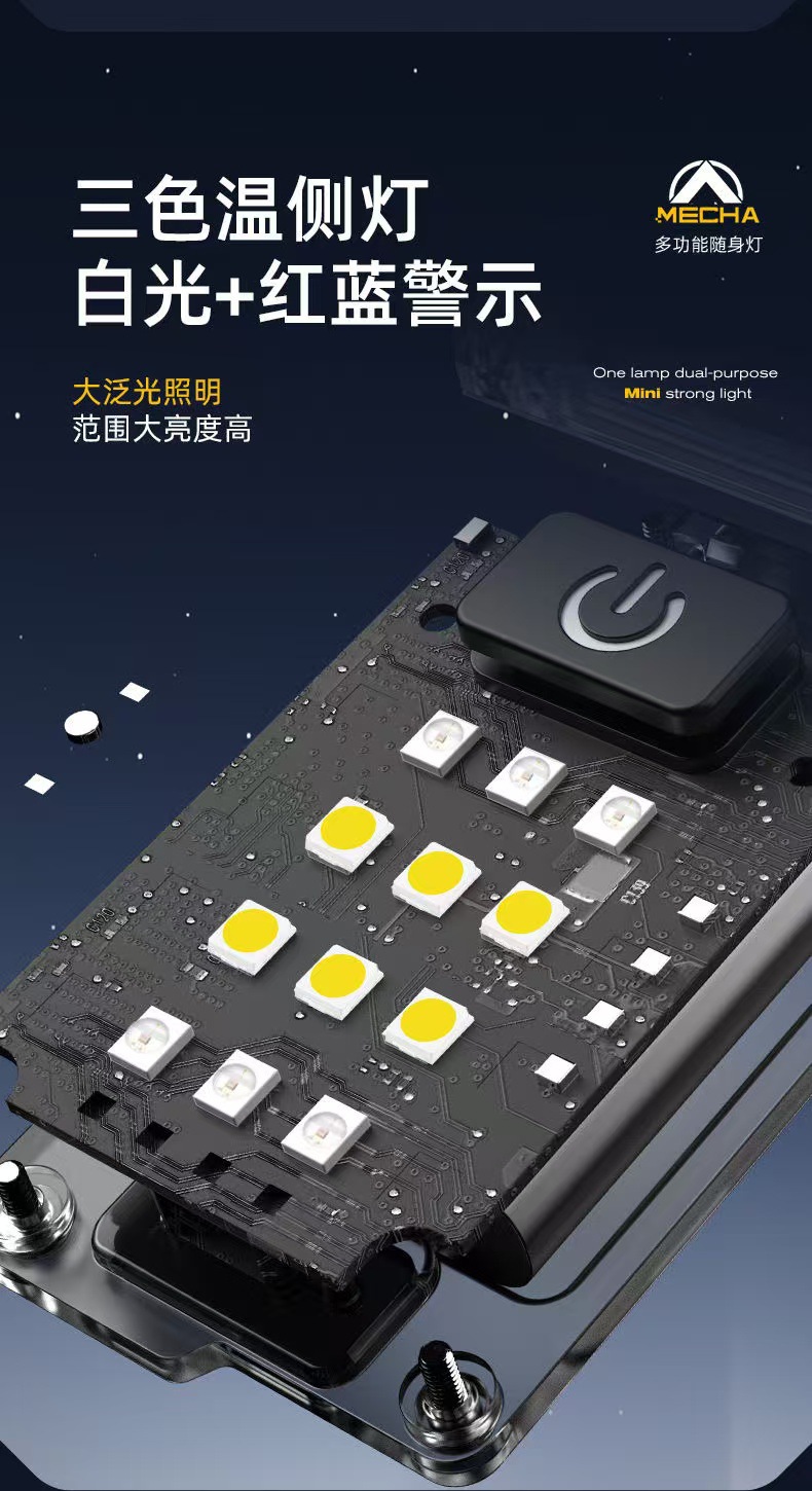 새로운 야외 다기능 자기 흡입 비상 작은 손전등 펜 클립 빨간색 파란색 흰색 회전 가능한 머리 경고 작업 조명