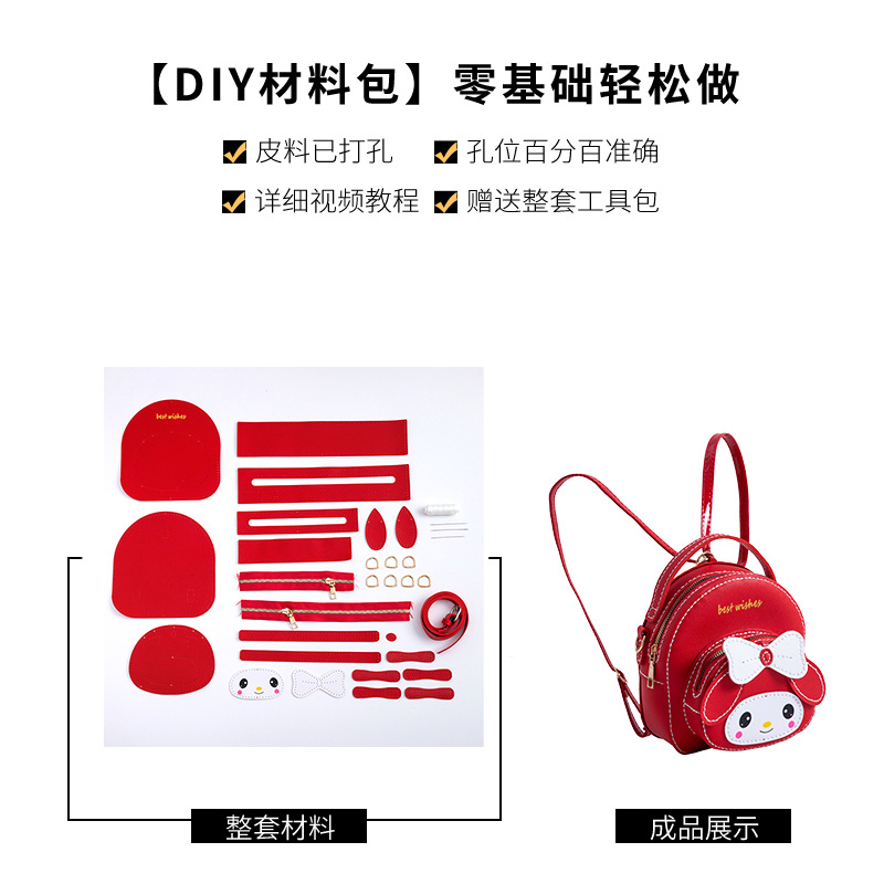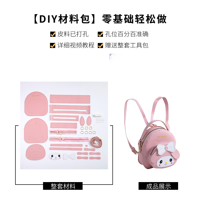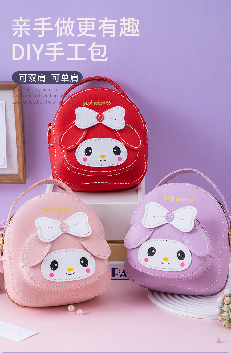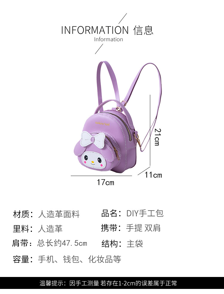 어머니 손으로 만든 DIY 작은 책가방 귀여운 멜로디 배낭 대용량 어깨 휴대용 만화 가방