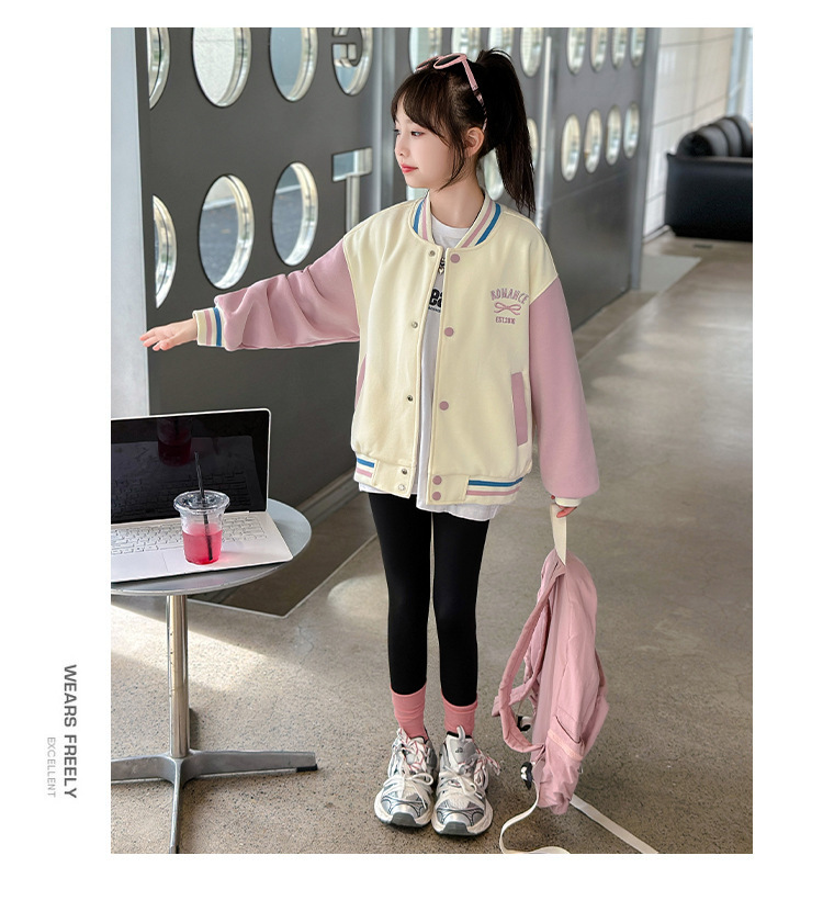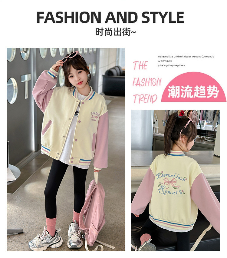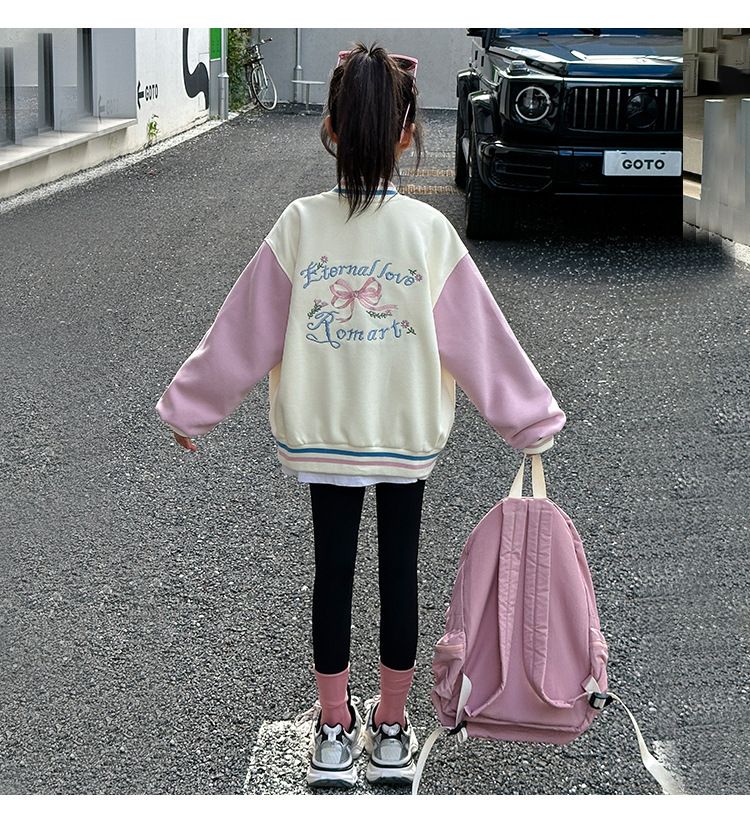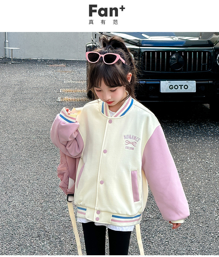 소녀 코트 가을 2024 새로운 어린이 기모 야구 세트 가을과 겨울 소녀 스포츠 가을 재킷 트렌디스토어 가기