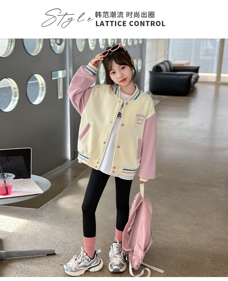 소녀 코트 가을 2024 새로운 어린이 기모 야구 세트 가을과 겨울 소녀 스포츠 가을 재킷 트렌디