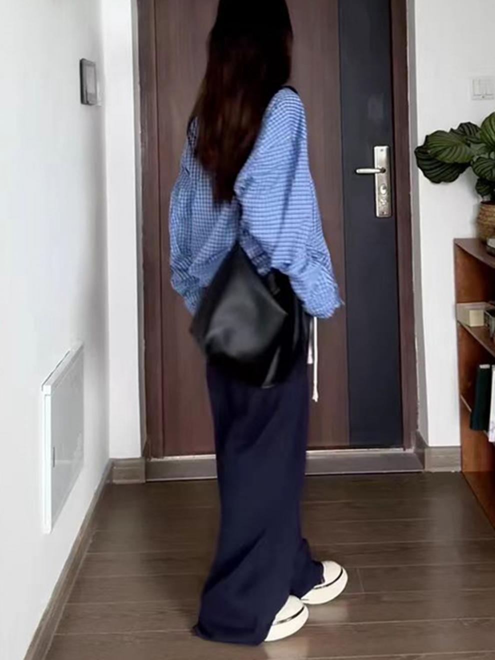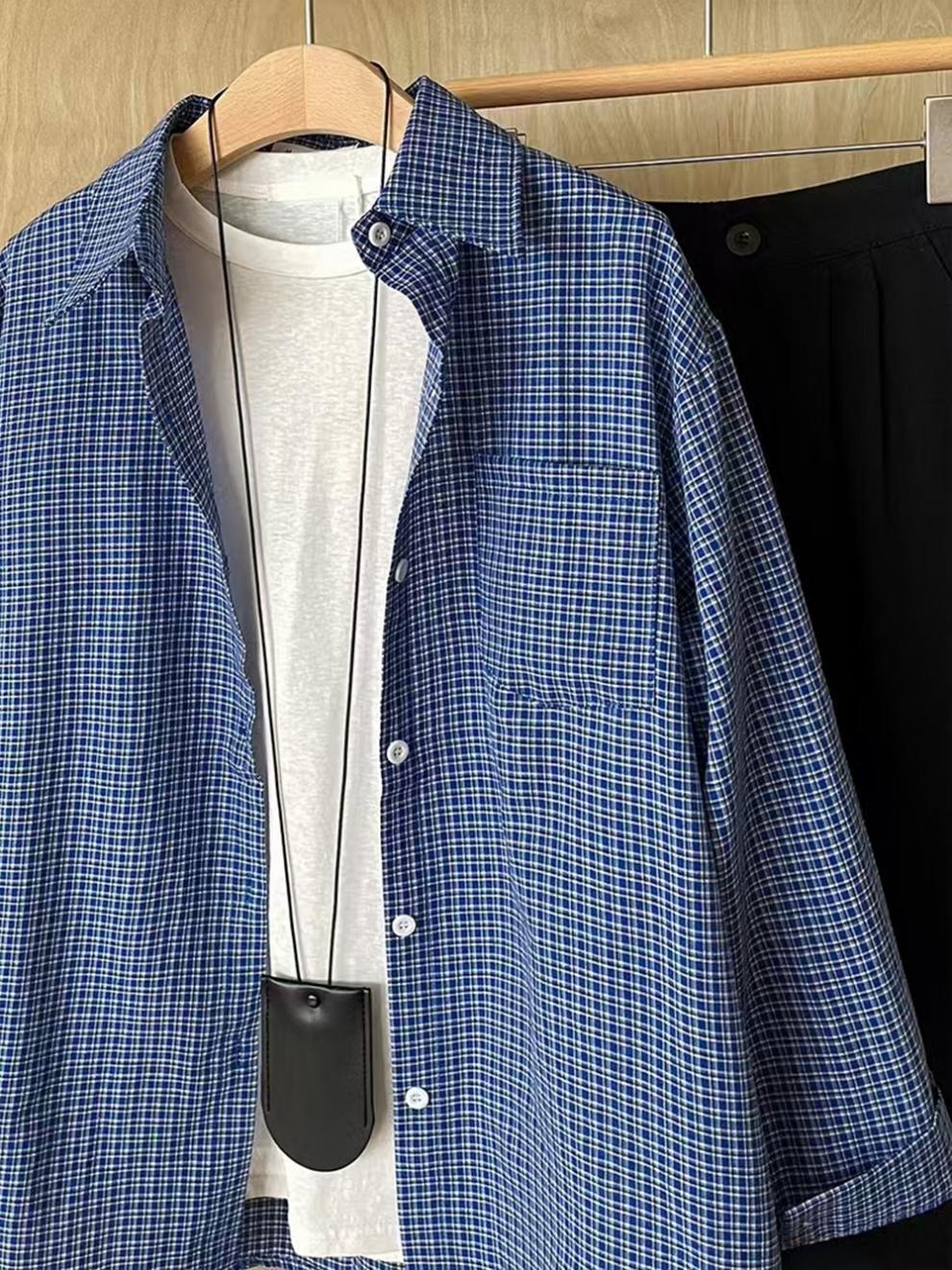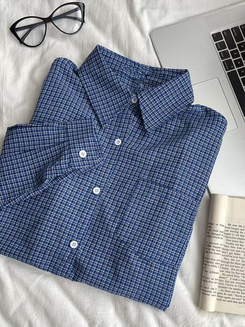 파란색 격자 무늬 셔츠 여성 가을 2024 새로운 프랑스 스타일 느슨한 태양 보호 셔츠 탑 재킷 얇은 섹션스토어 가기