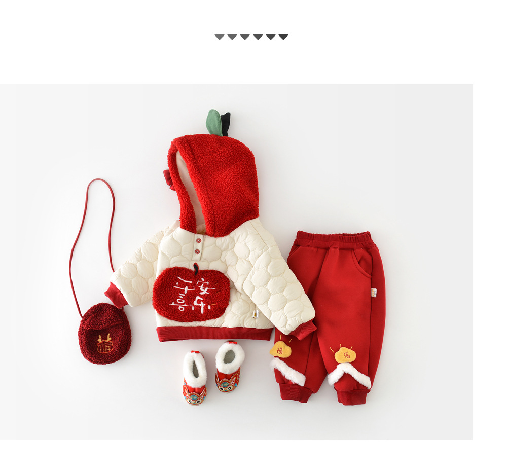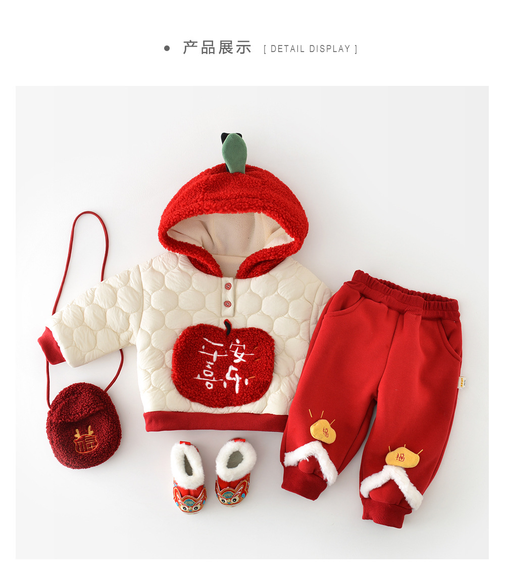 宝宝棉衣套装婴幼儿小熊连帽绗棉保暖冬装连帽加绒棉衣棉裤男女童