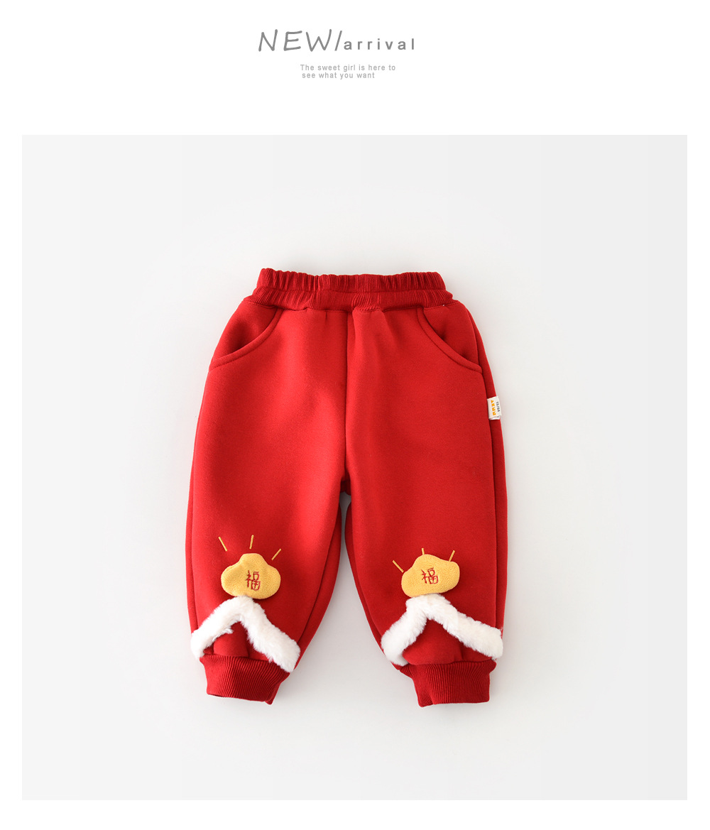 2024 겨울 연례 어린이 바지 아기 유아 아기 잉곳 따뜻한 주문 양모 겨울 어린이 바지 95686