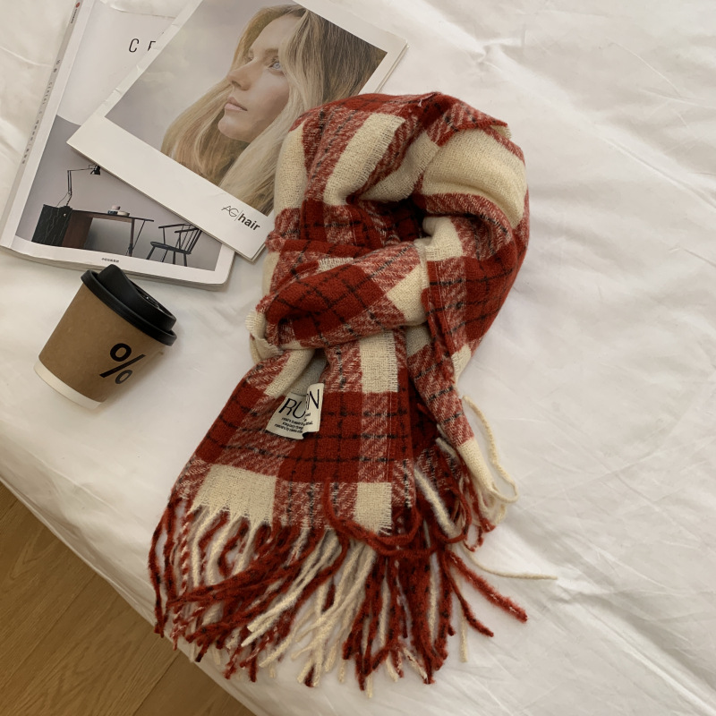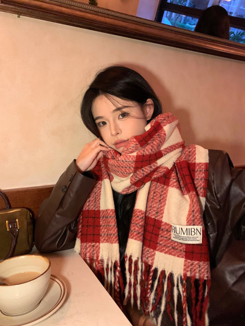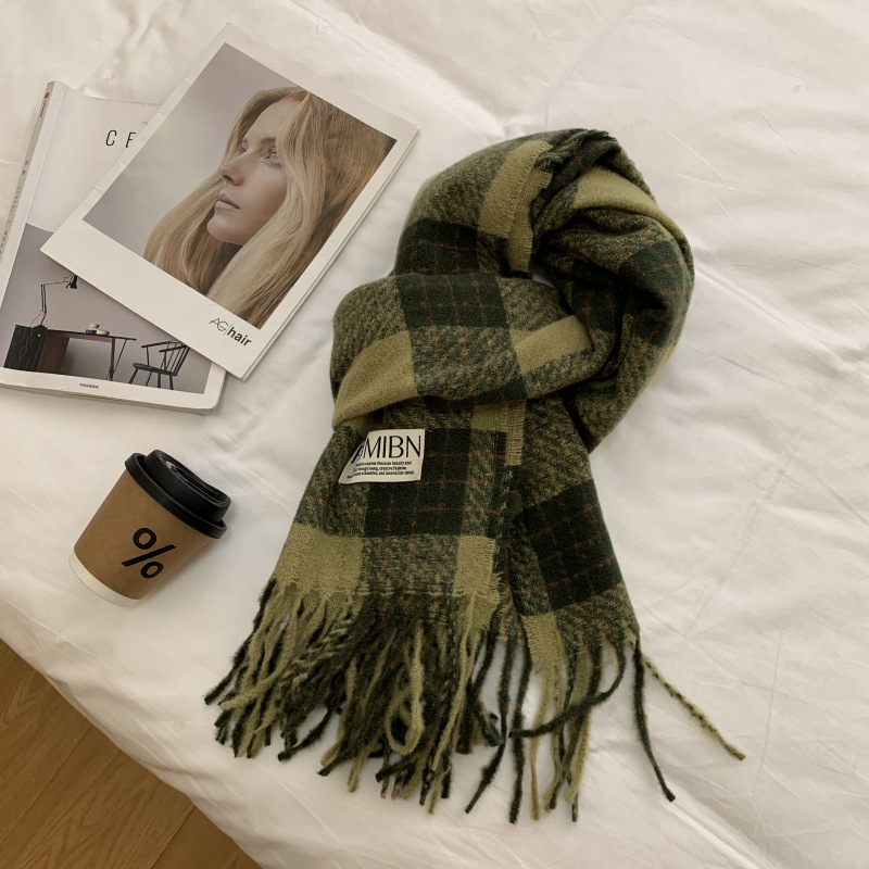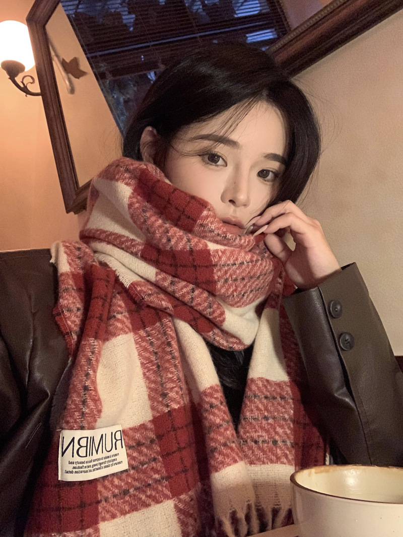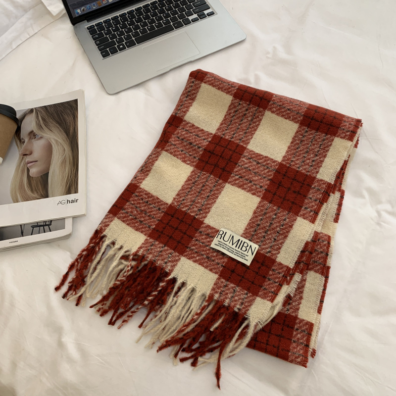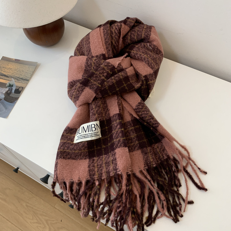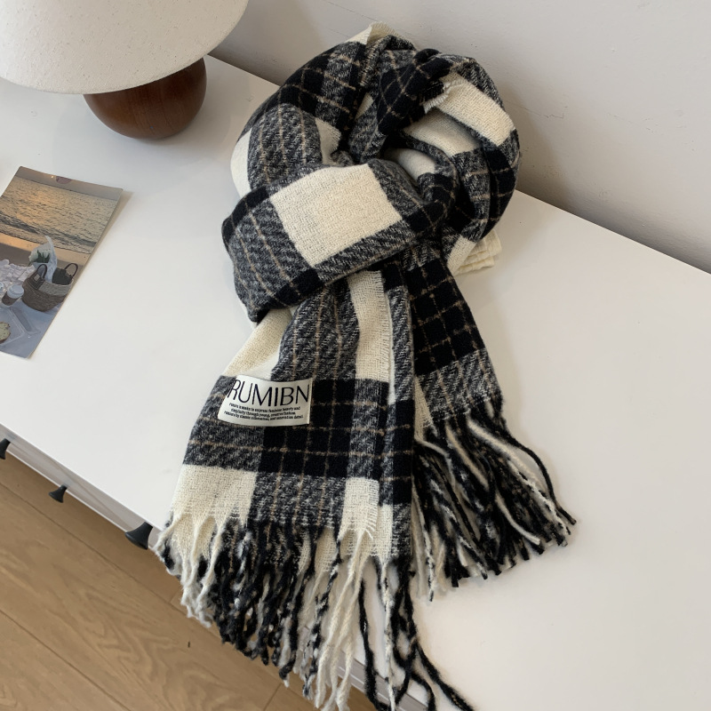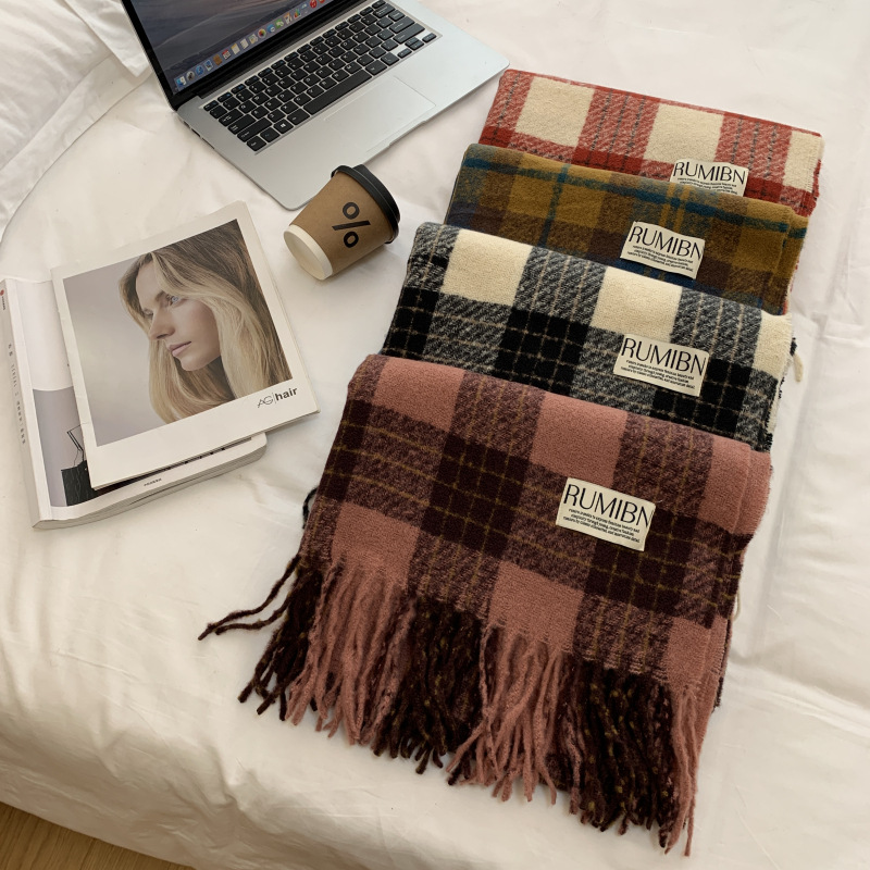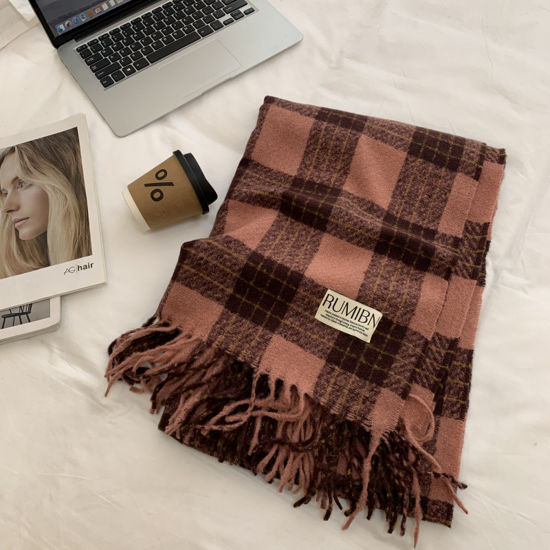 일본식 빈티지 분위기 모조 캐시미어 스카프 여성의 가을과 겨울 따뜻한 올매치 긴 목도리 우아한 격자 무늬 스카프