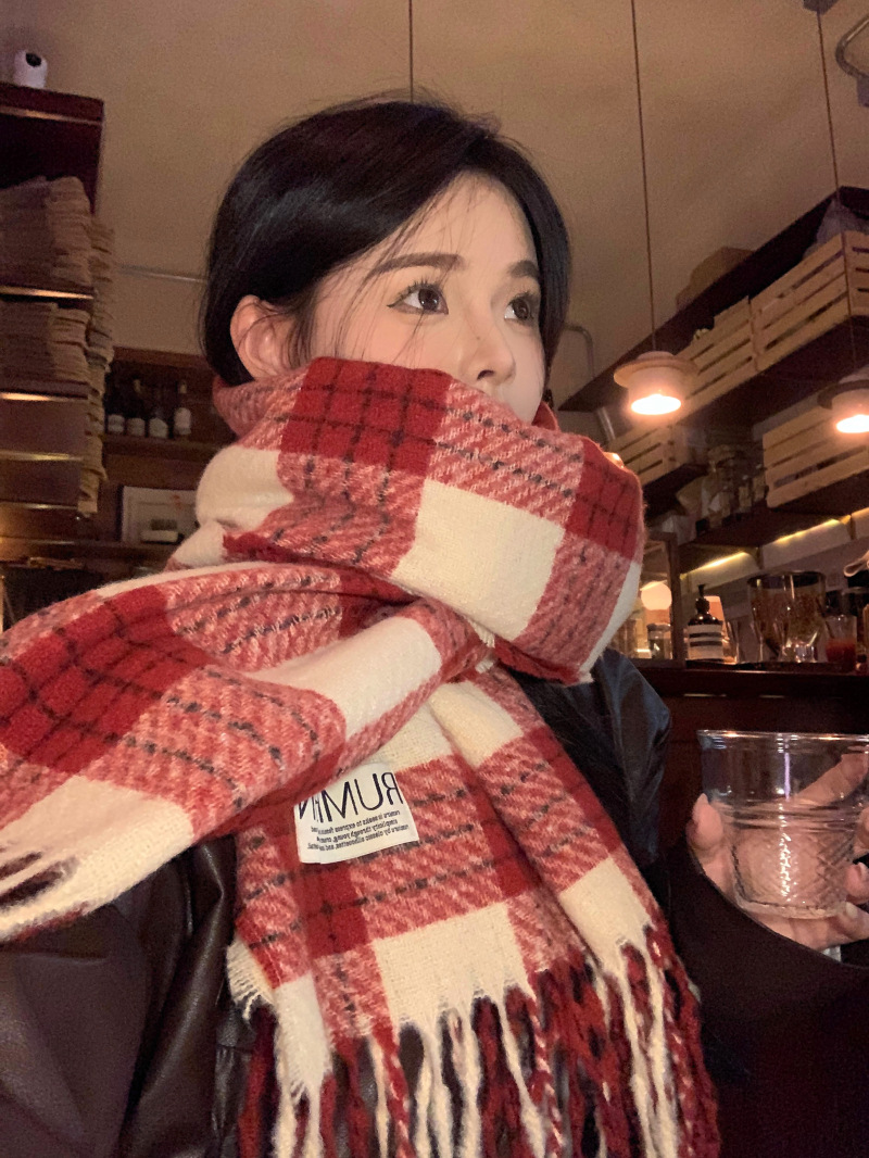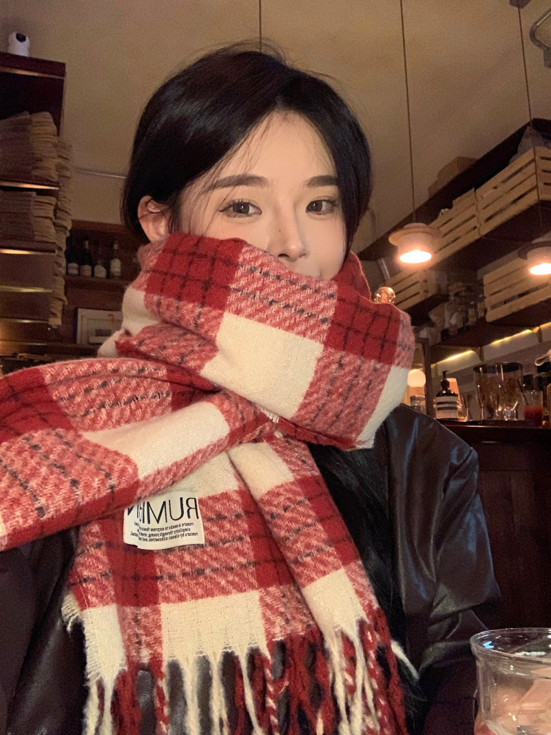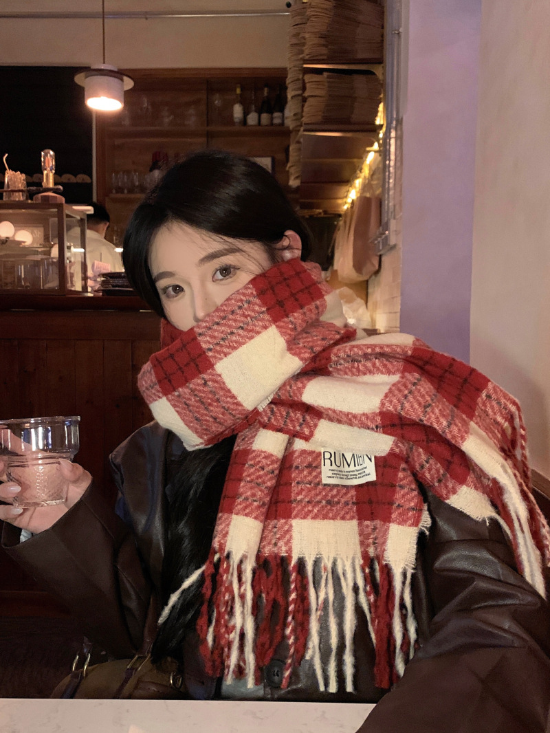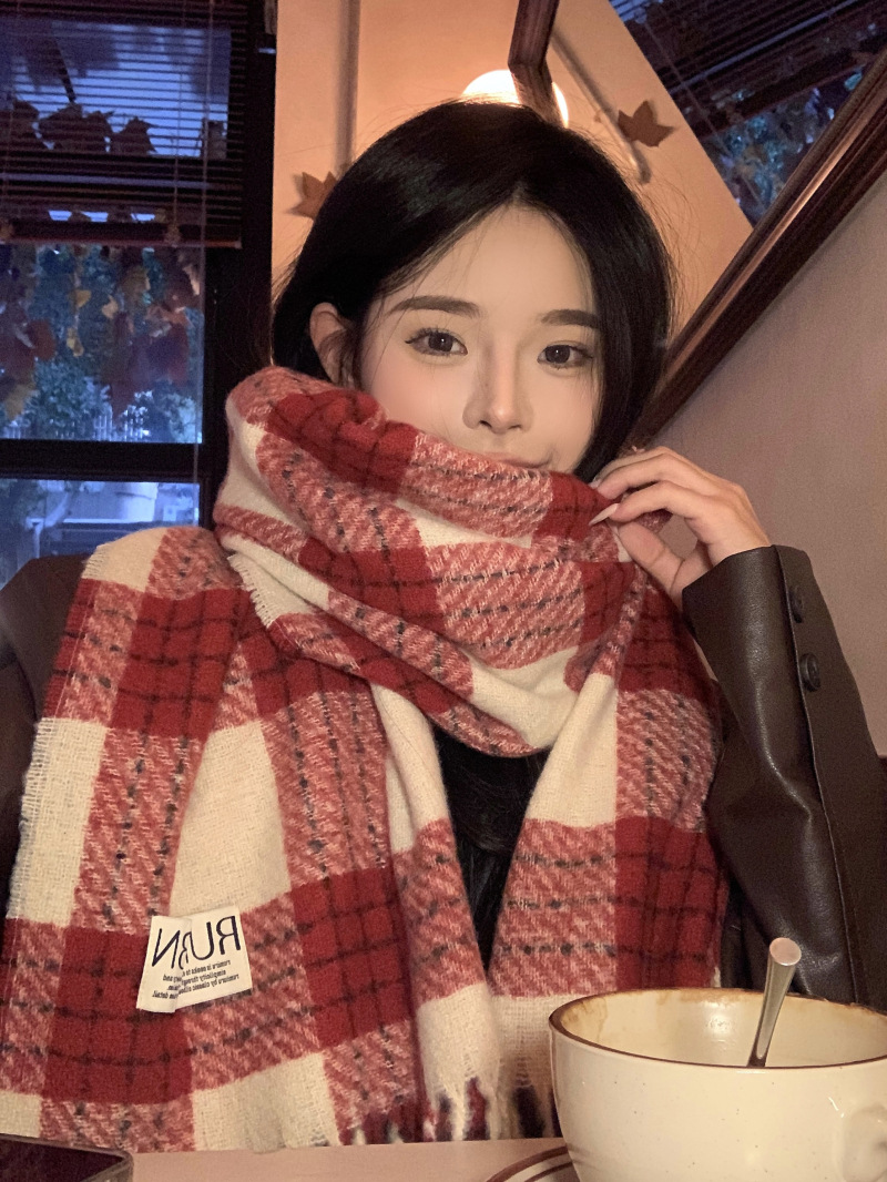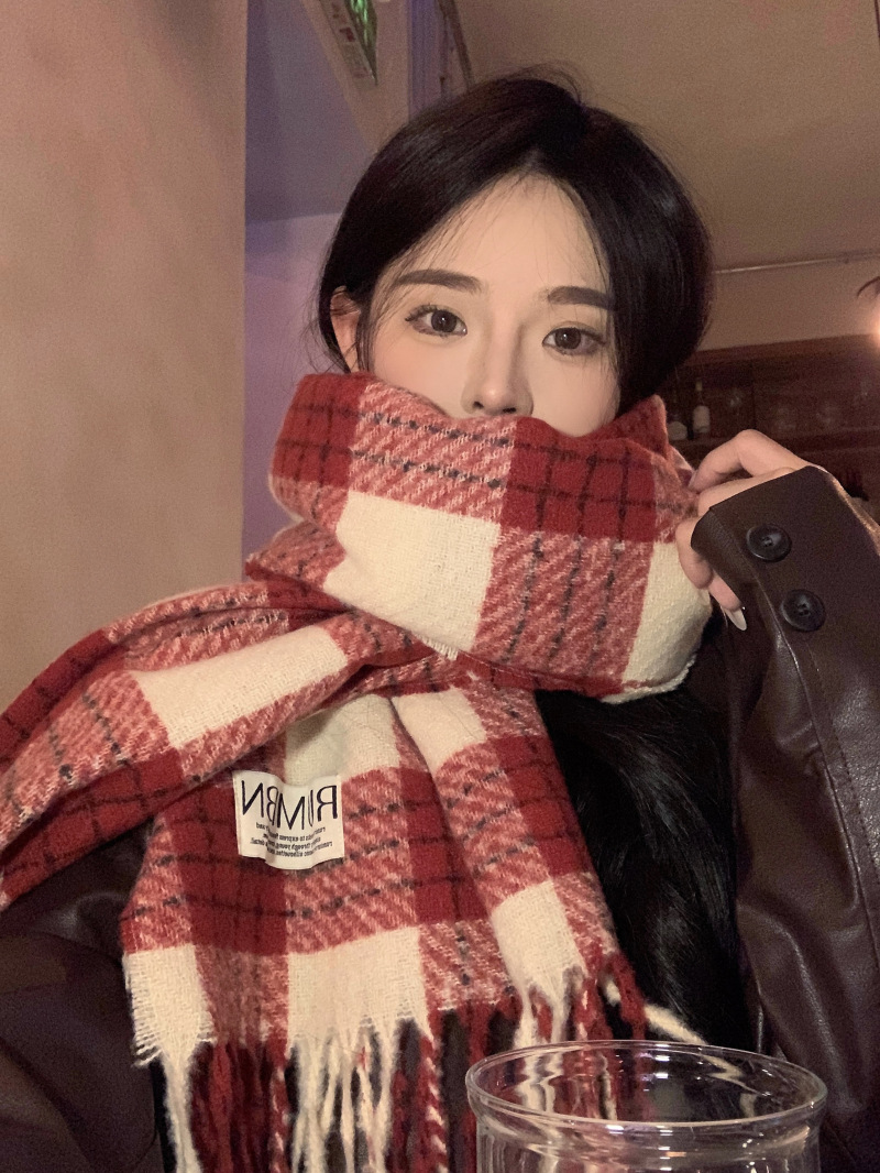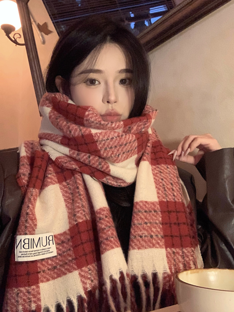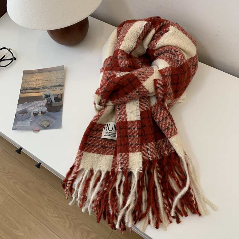 일본식 빈티지 분위기 모조 캐시미어 스카프 여성의 가을과 겨울 따뜻한 올매치 긴 목도리 우아한 격자 무늬 스카프