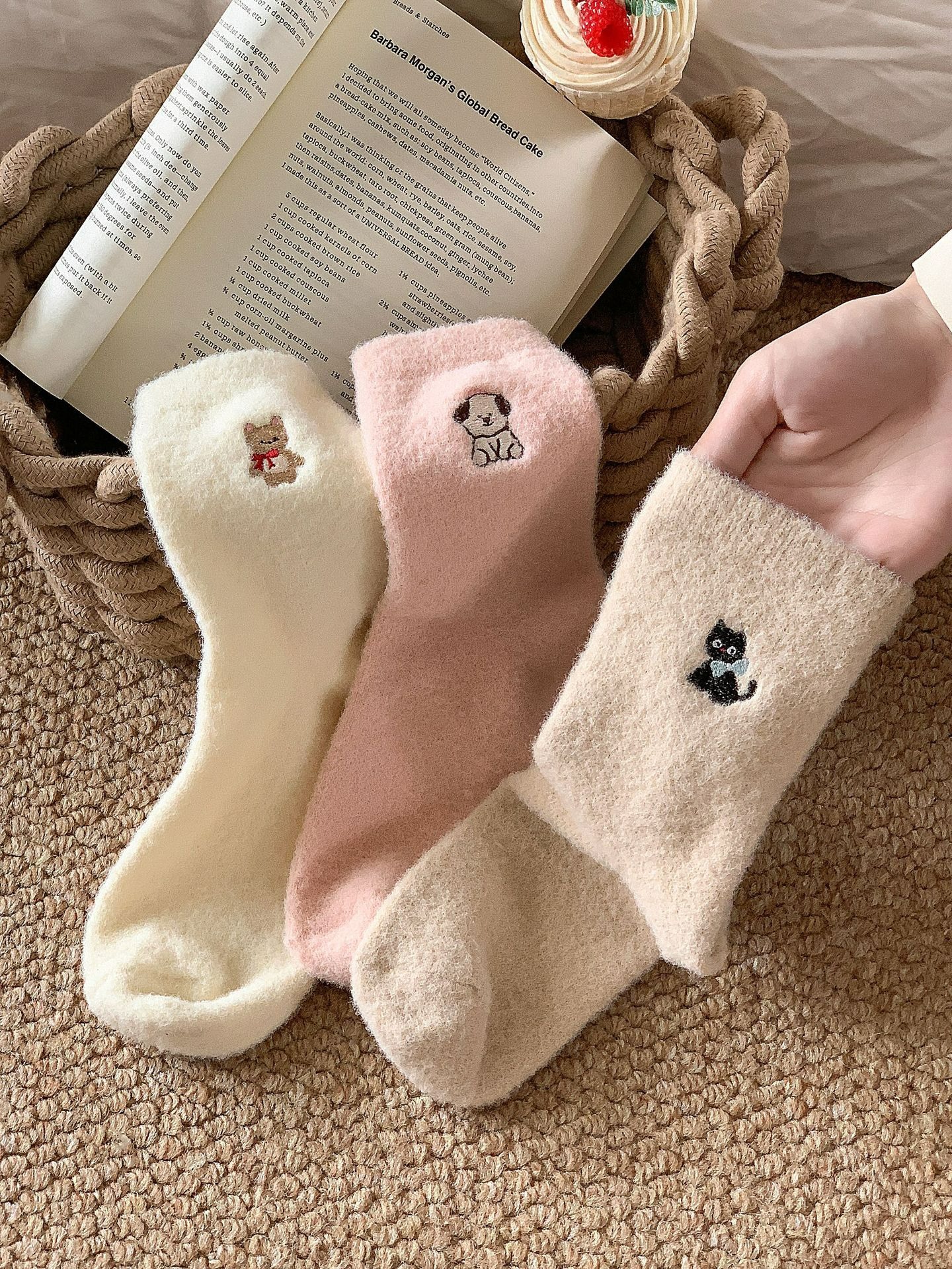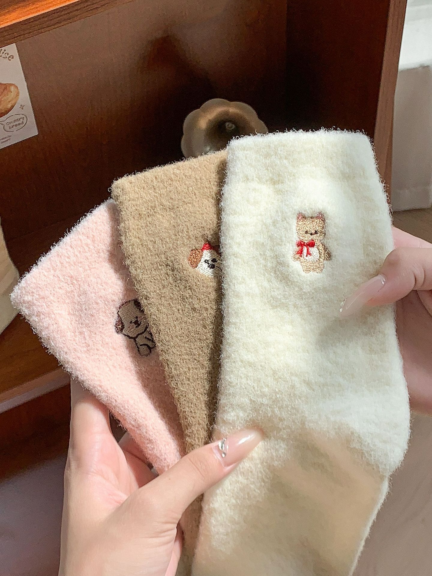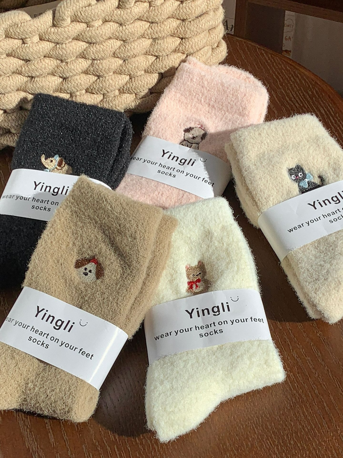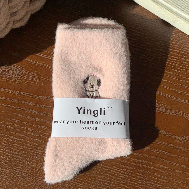 가을과 겨울 호주 벨벳 코일 양말 따뜻한 양말 여성용 미드 튜브 양말 패션 여성 양말 자수 동물 패턴 부드러운 바닥 양말