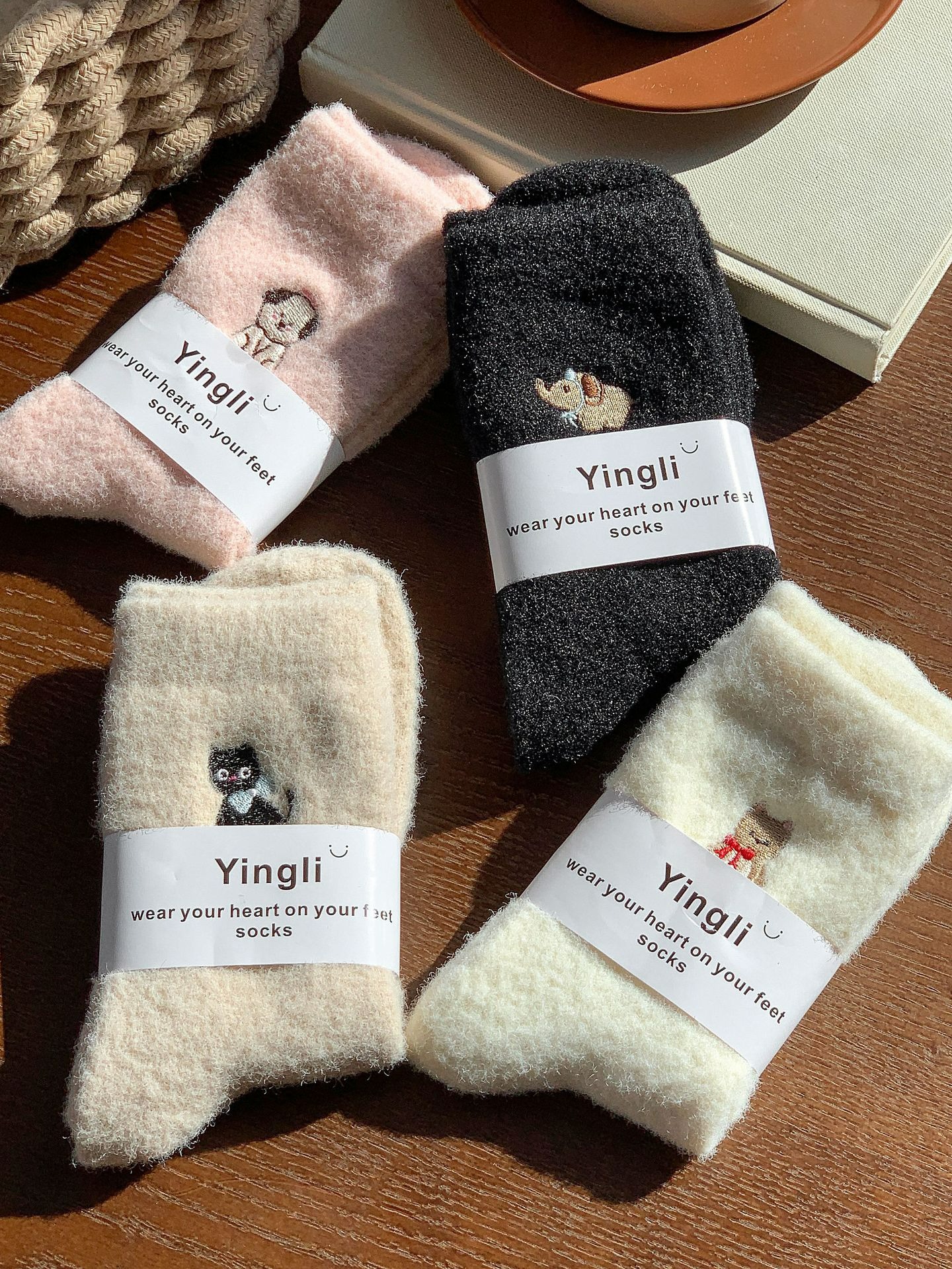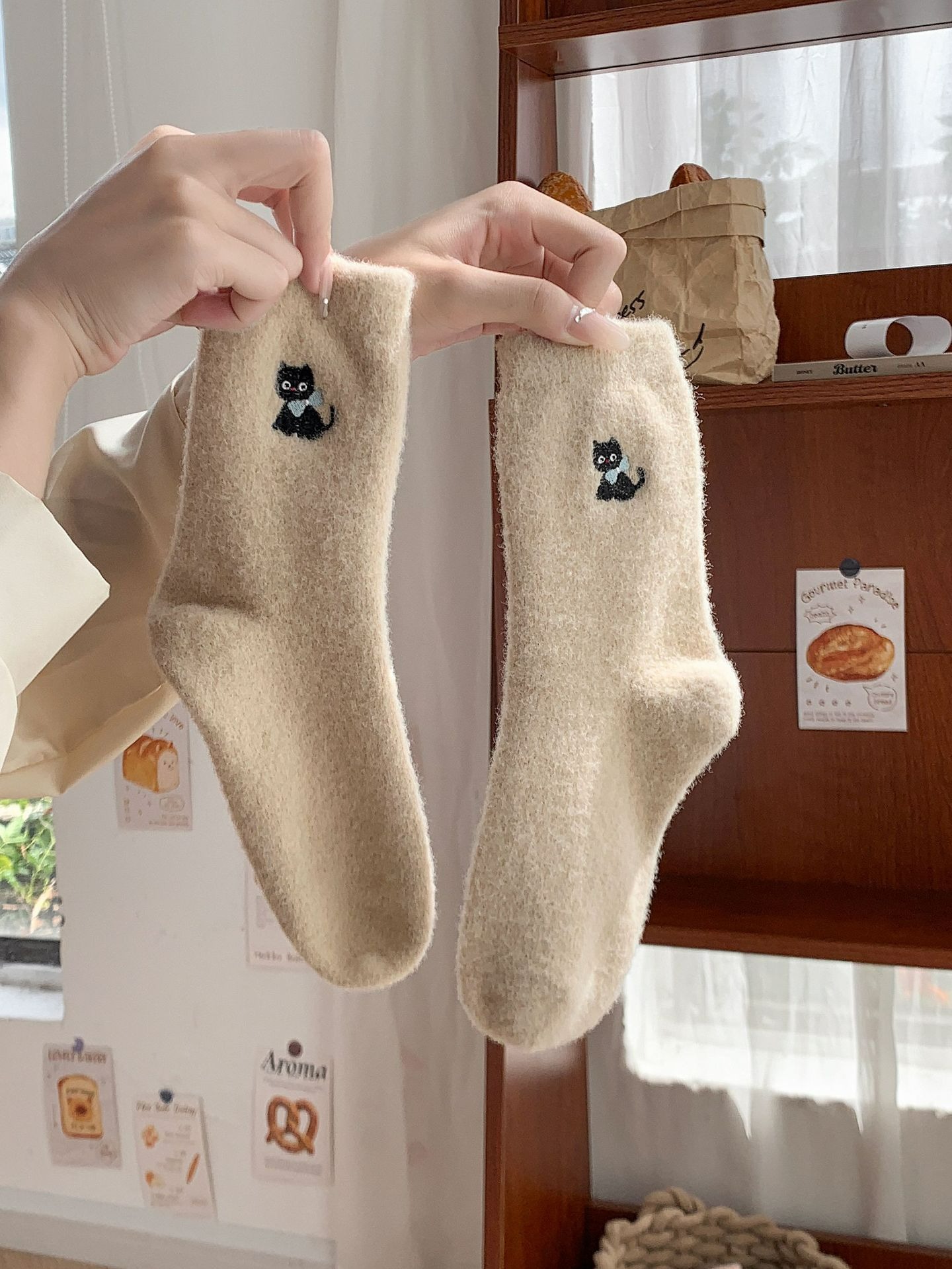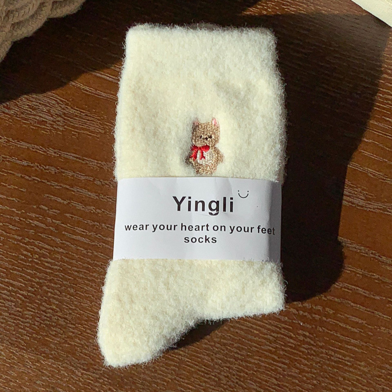가을과 겨울 호주 벨벳 코일 양말 따뜻한 양말 여성용 미드 튜브 양말 패션 여성 양말 자수 동물 패턴 부드러운 바닥 양말스토어 가기