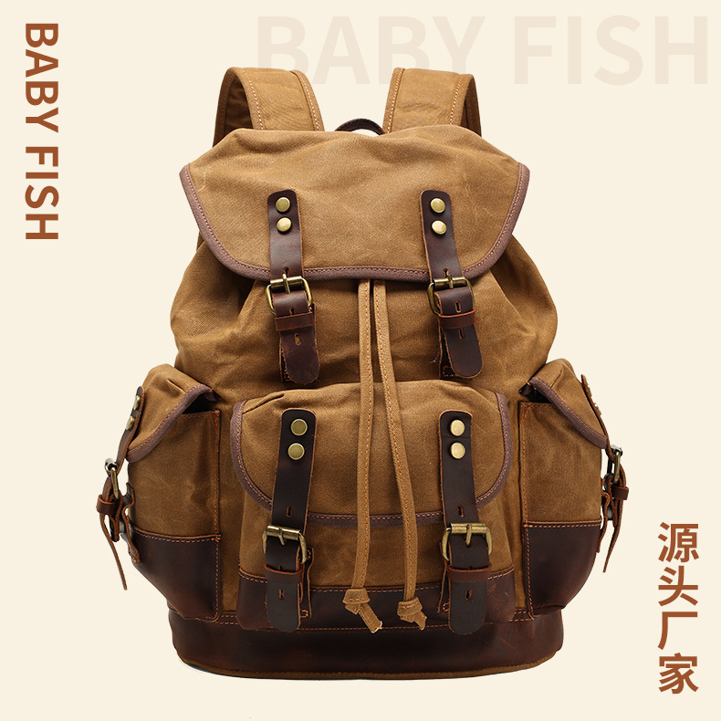 레트로 방수 스포츠 야외 배낭 크레이지 호스 가죽 등산 가방 남여 배낭과 오일 왁스 캔버스 가방스토어 가기