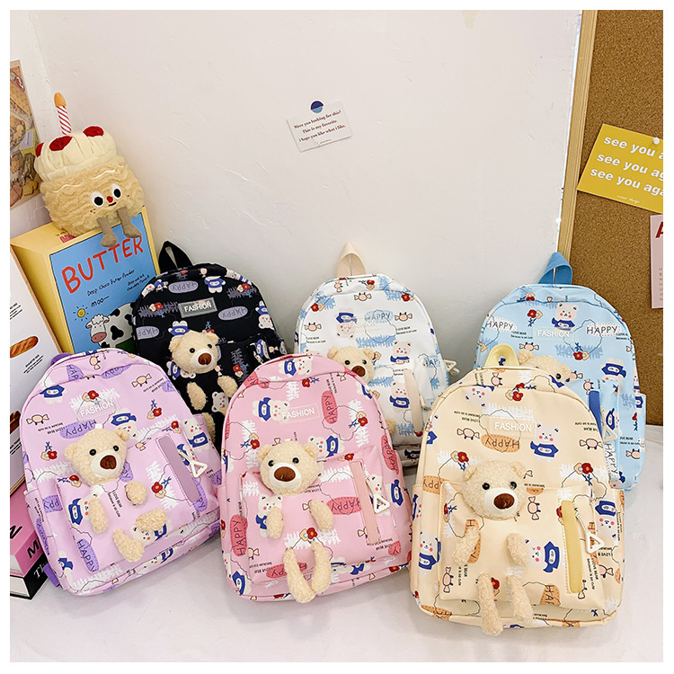 2025년 신형 아동용 책가방 한국판 만화 곰 프린트 백팩 펜던트 여행용 백팩스토어 가기