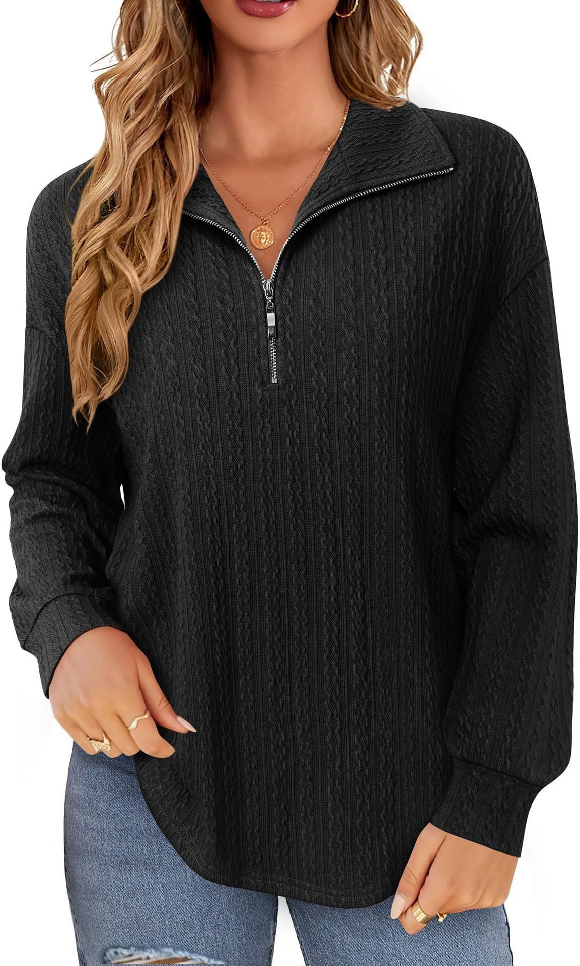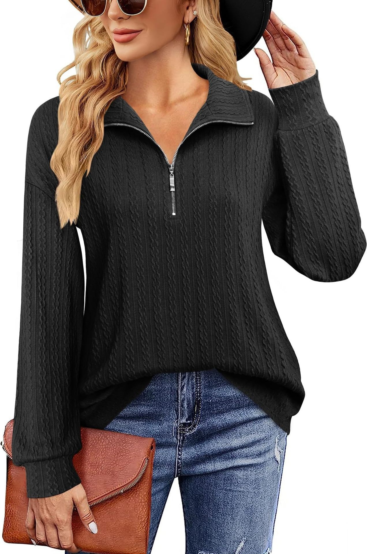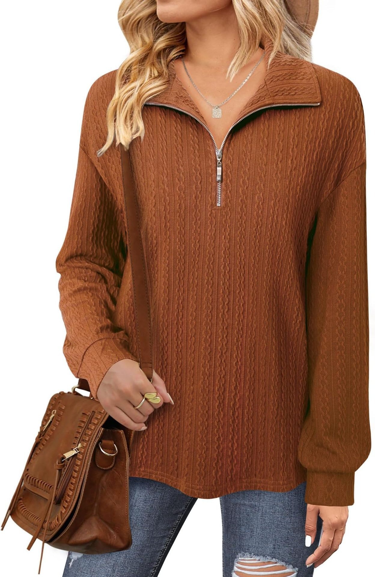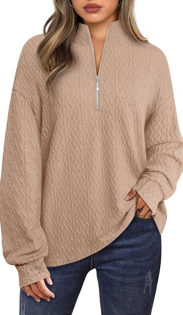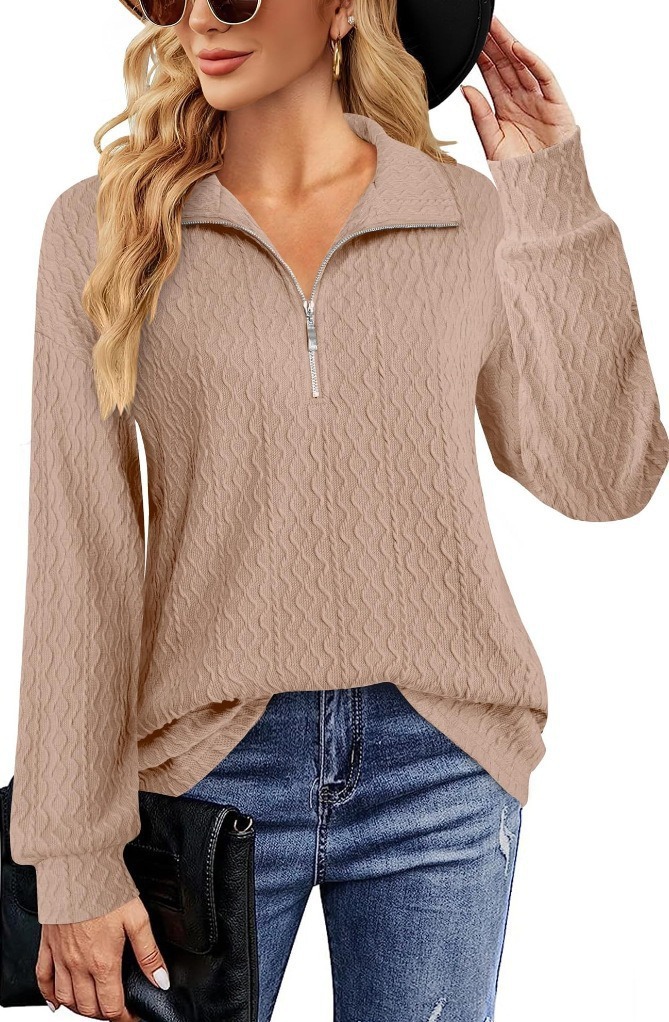 2024 가을과 겨울 유럽과 미국의 새로운 아마존 대외 무역 여성 지퍼 패션 단색 긴 소매 최고 스웨터 여성 희망