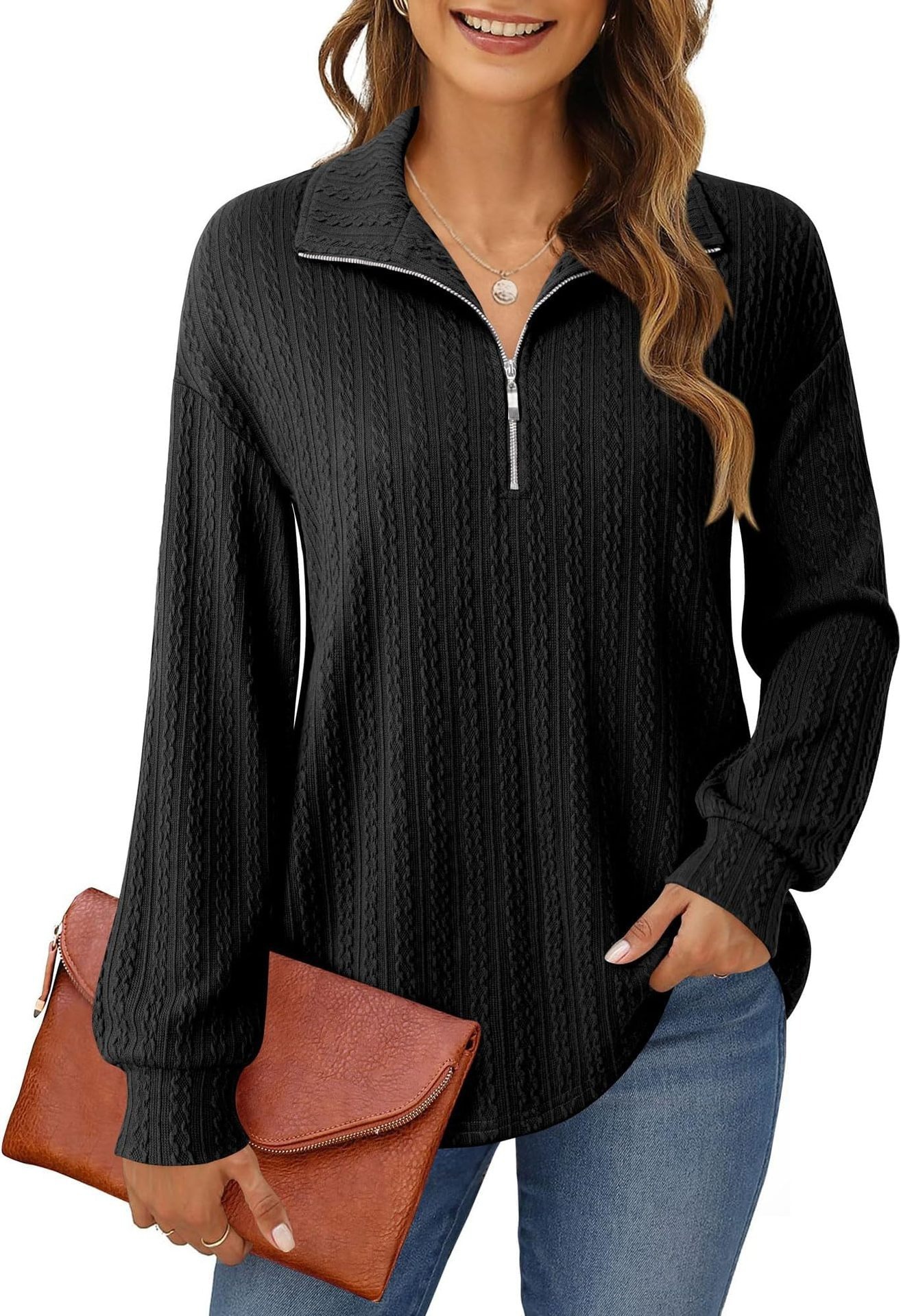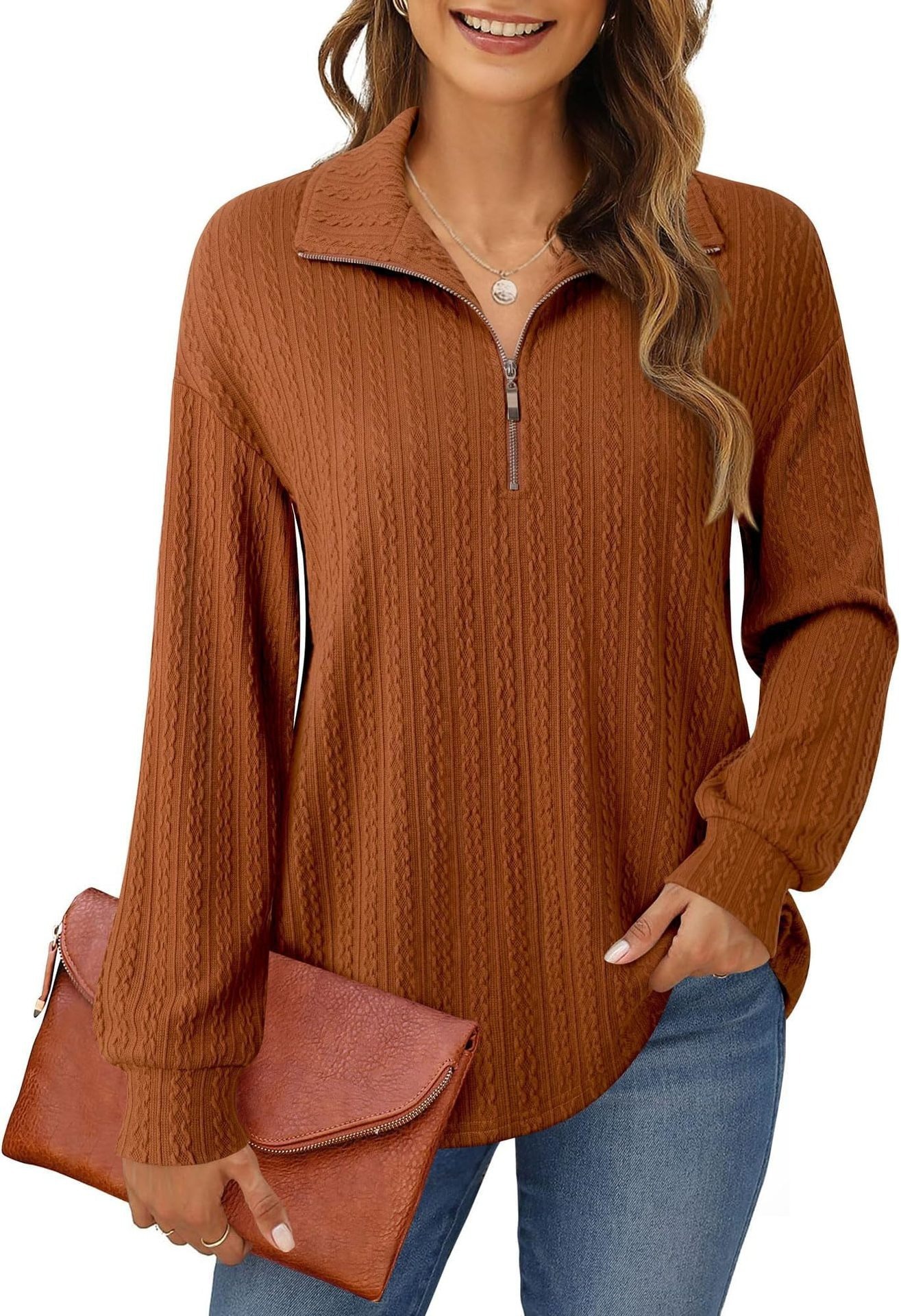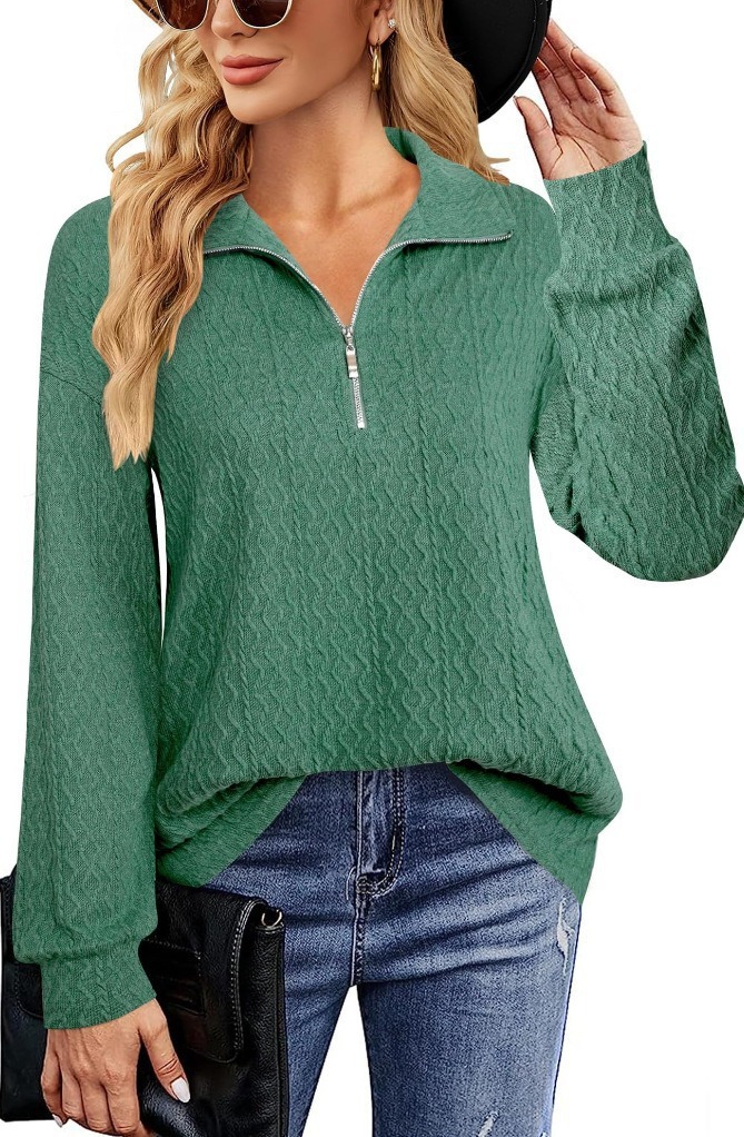 2024 가을과 겨울 유럽과 미국의 새로운 아마존 대외 무역 여성 지퍼 패션 단색 긴 소매 최고 스웨터 여성 희망스토어 가기