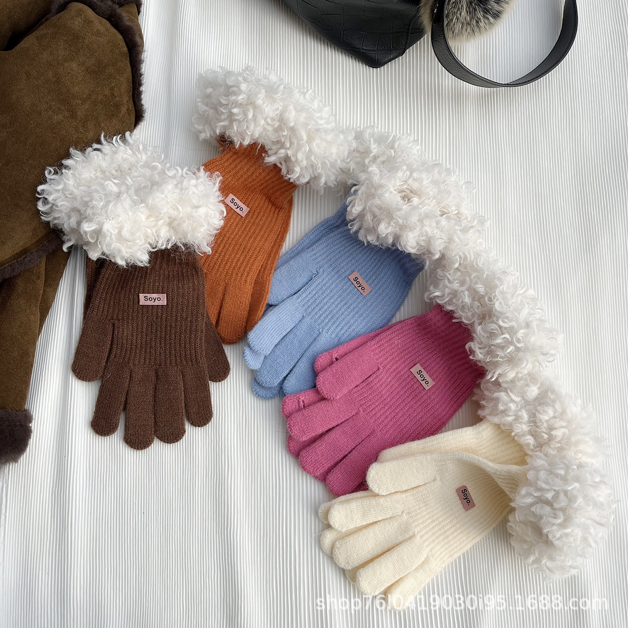 24 개의 새로운 울 롤 스티칭 장갑 가을과 겨울 패션 여성 오픈 손가락 터치 스크린 따뜻한 올 매치 니트 장갑스토어 가기