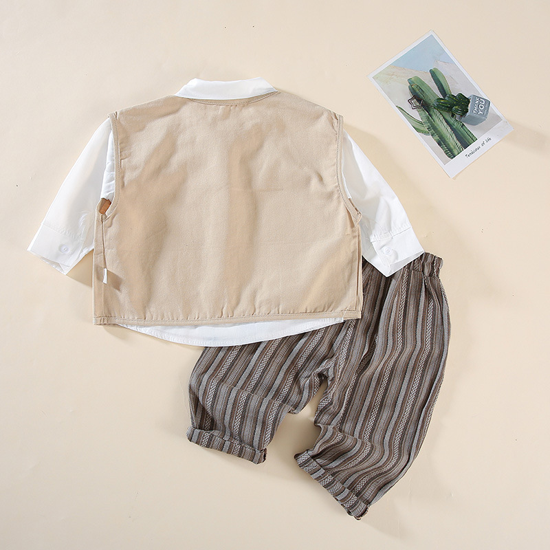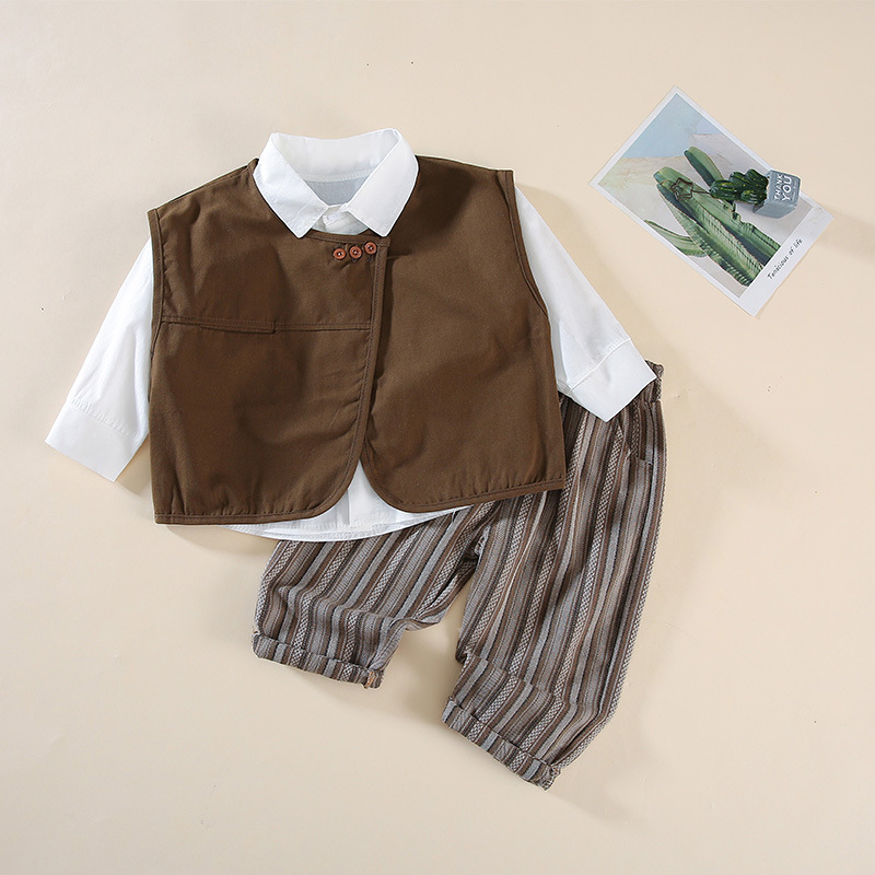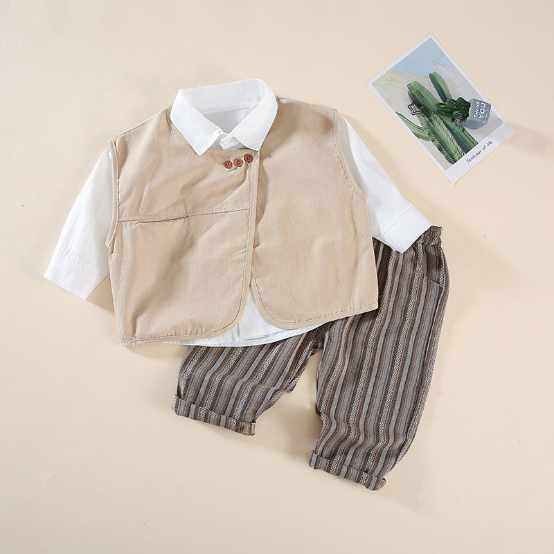 아동복 소년 봄 · 가을 세트 한국식 가을 신작 소년 어린이를위한 한국식 3 버튼 조끼 올매치 3 피스 세트